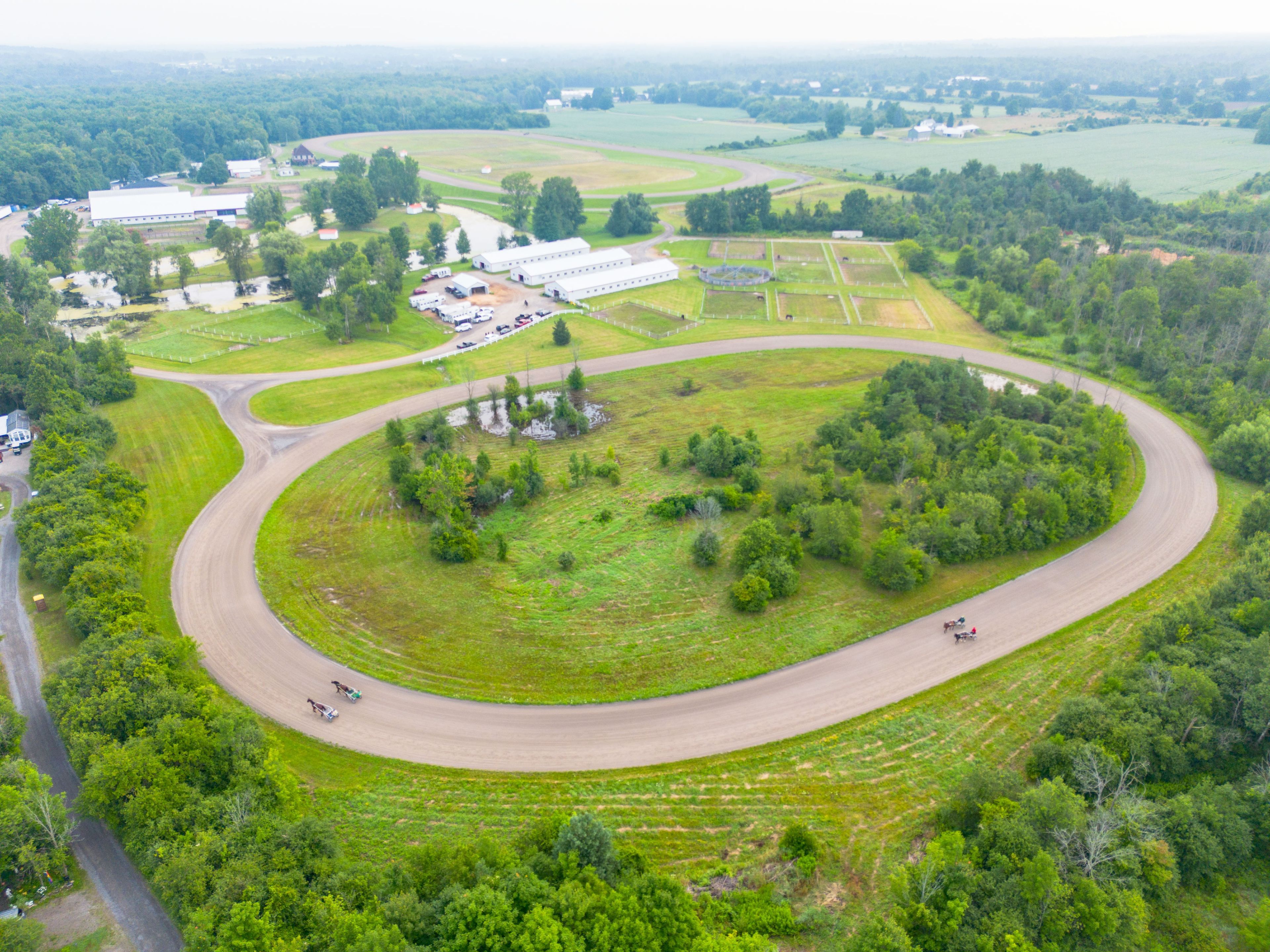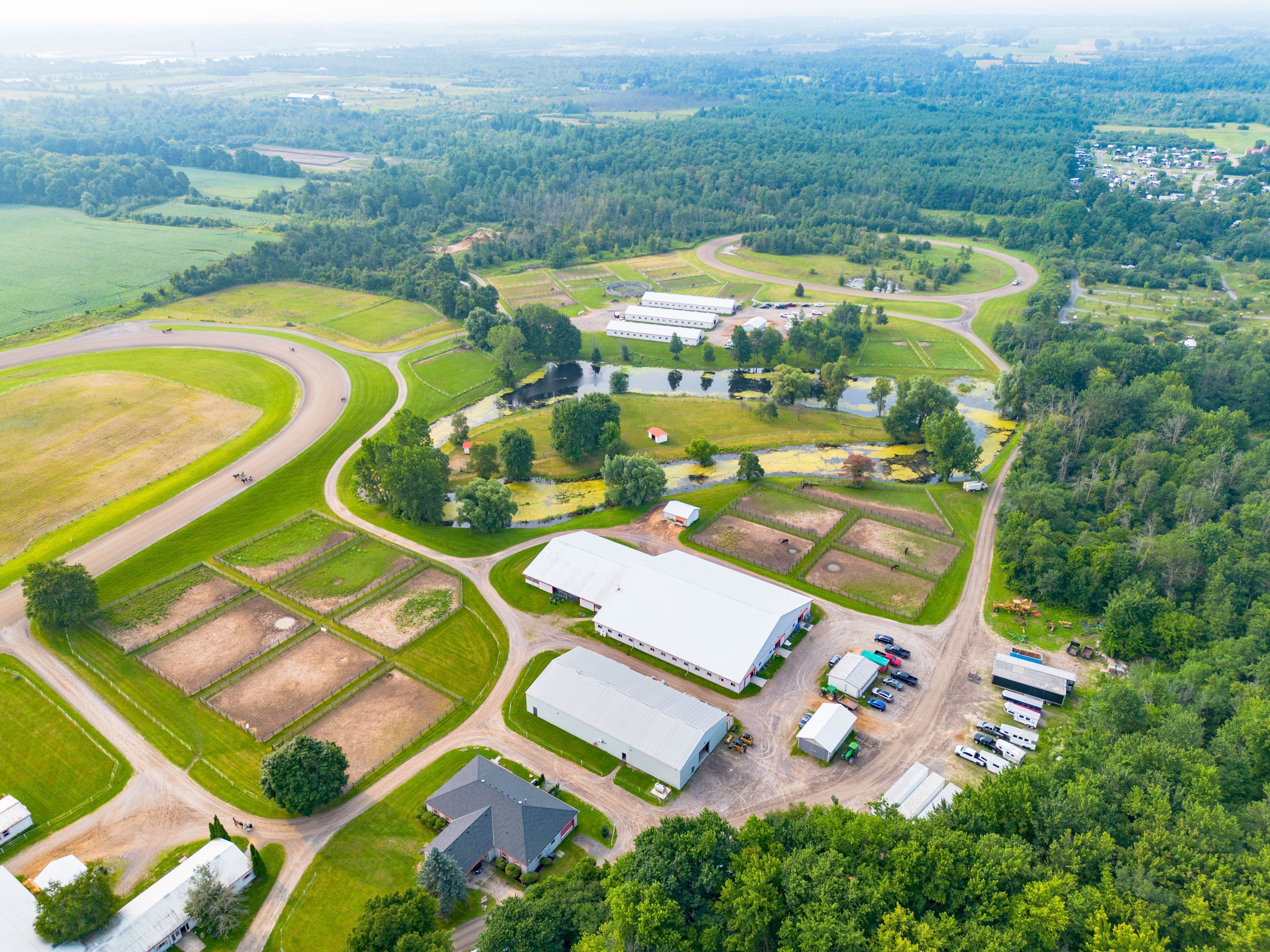 • Extensive indoor infrastructure with barns, stalls, and training tracks for various uses.