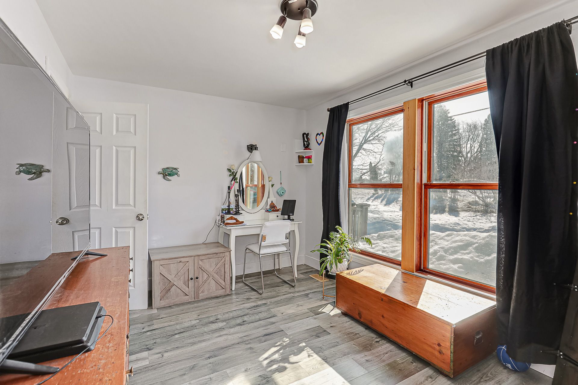 This inviting 2-bedroom, 1-bath home is set on a generous lot with no rear neighbours - just peaceful views stretching over neighbouring farmland. Inside, the home blends character and function. The kitchen offers ample workspace and flows easily into the living area, creating a comfortable and practical layout. A custom live-edge wood counter nook adds warmth and personality, making the space feel both welcoming and unique. The lower level provides additional storage and a laundry area. The real standout here is the impressive 40' x 24' detached workshop. With soaring 12' walls, a 17' peak height, loft storage, propane heat furnace and a wood burning fireplace. With a 100-amp service (60-amp panel), it's perfectly suited for tradespeople, hobbyists, entrepreneurs, or anyone needing serious workspace. Whether you're storing vehicles and recreational toys or operating a home-based business, this building delivers versatility that's hard to find. If you've been searching for a property that offers privacy, usable land, and room to grow - all within a welcoming rural community - this one deserves your attention.