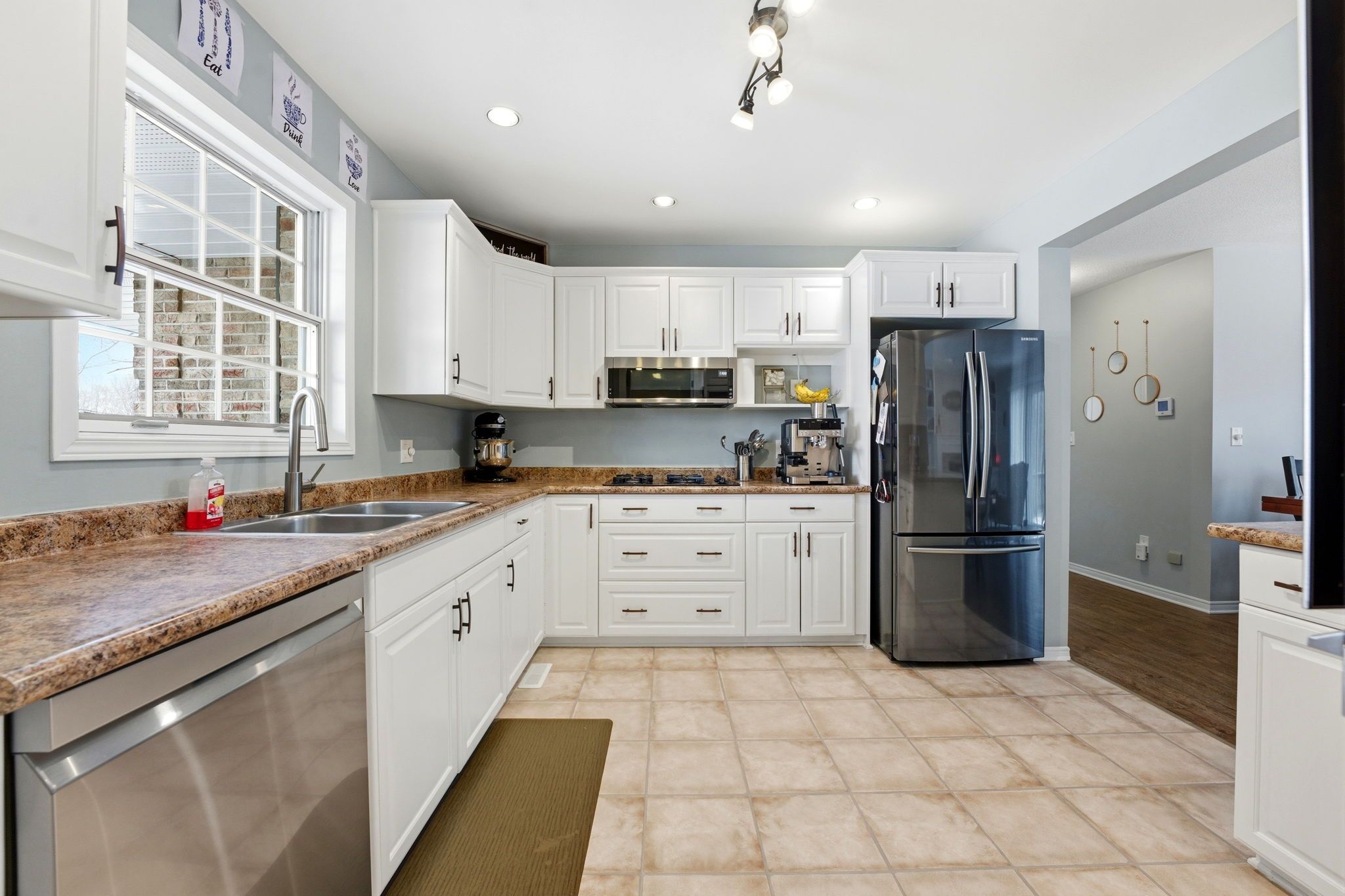 • Well-appointed kitchen with modern appliances opens to a cozy family room.