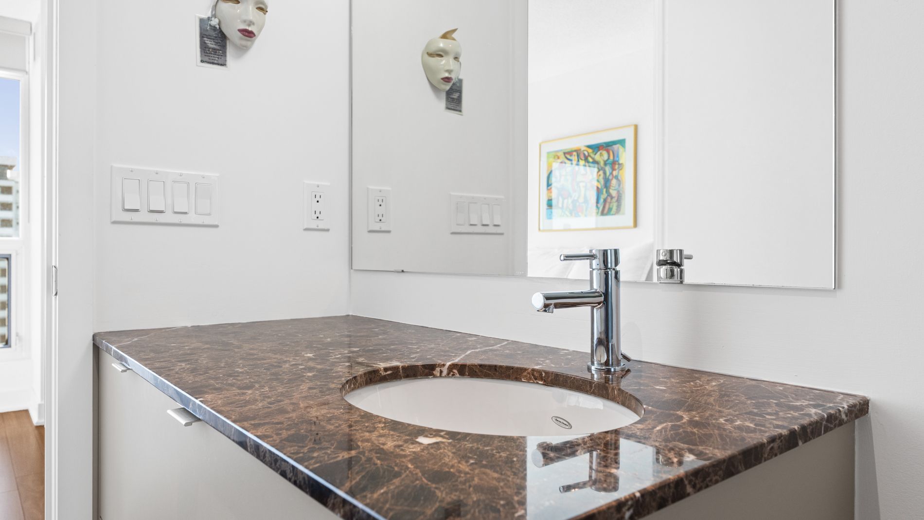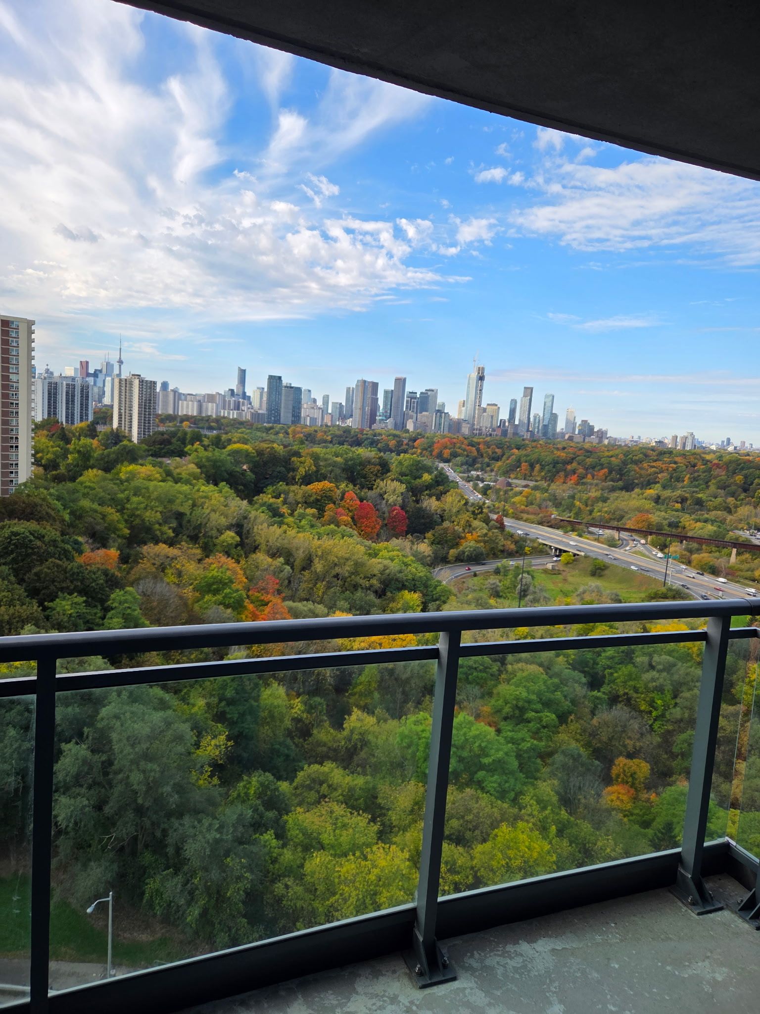 Check out the must-see video tour * panoramic views of toronto * in a sea of condos this gem has stunning views, showcasing the toronto skyline, from the lake all the way to uptown * just the right building location (high enough to have the best views & unaffected by the traffic/noise & bbq smoke from the terrace) * huge windows facing south-west, allowing for all-day sunshine * interior br with sliding doors for a great view; has huge closet, and is ideal for office/games/video/tv room * primary br has walk-in closet and ensuite * the extra den is an actual, separate nook * no carpet; teak & walnut engineered hardwood throughout * immaculately maintained by (original) owner * a lot of money spent on updates throughout the unit (see list in "inclusions" below) * open concept kitchen leads to spacious living area, including the den, which walks out to the balcony * the building - minto skyy - is one of the builder's best projects * building is incredibly clean, leed gold certified, and is one of the best managed buildings in toronto * amenities include a (beloved) 24-hr concierge team, large party room with full kitchen, library with reading area, sauna, a large (multi-room) fitness facility, gorgeous outdoor terrace for bbqs and gatherings, and tons of visitor parking * unit comes with premium parking spot (p2 level) and locker * location is unique, to say the least: parks, schools, walking/biking trails, and the very cool evergreen brick works are all right nearby * minutes from dvp, 20 minutes from downtown toronto * quick walk to broadview station and the famous danforth ave, with greektown, restaurants, shops, cultural landmarks, etc.