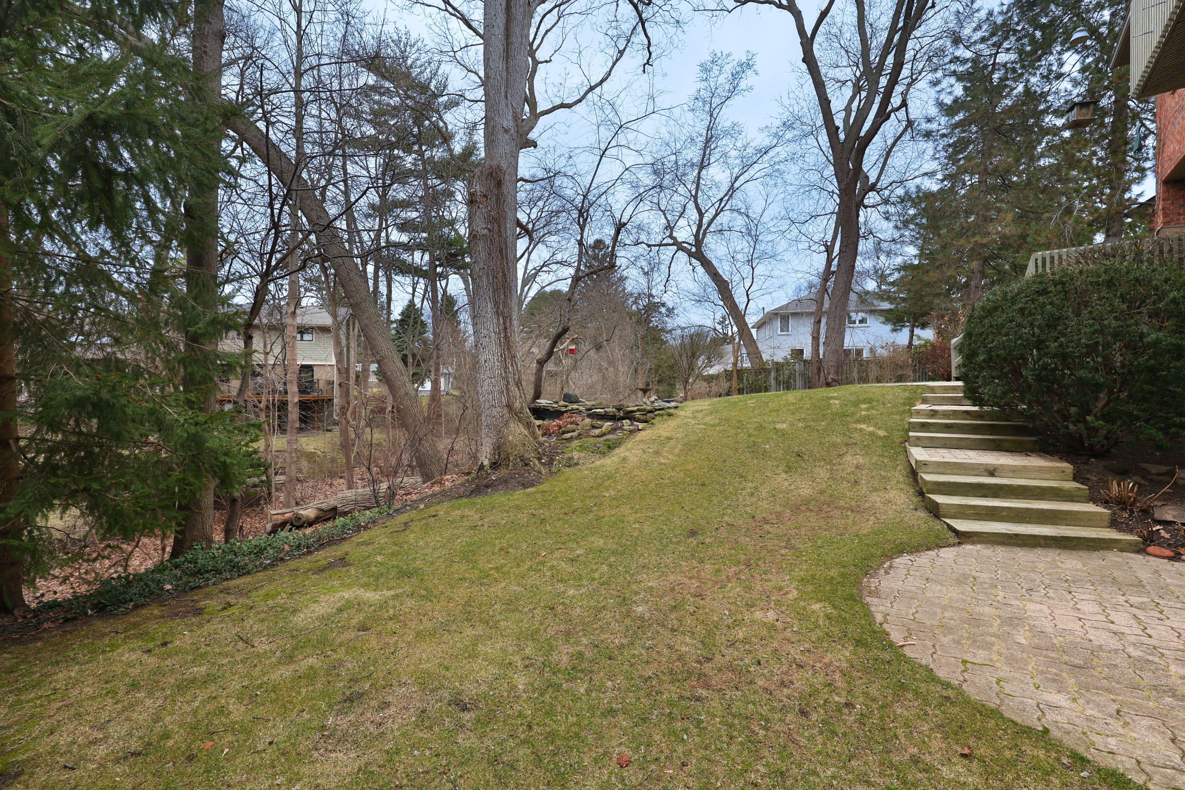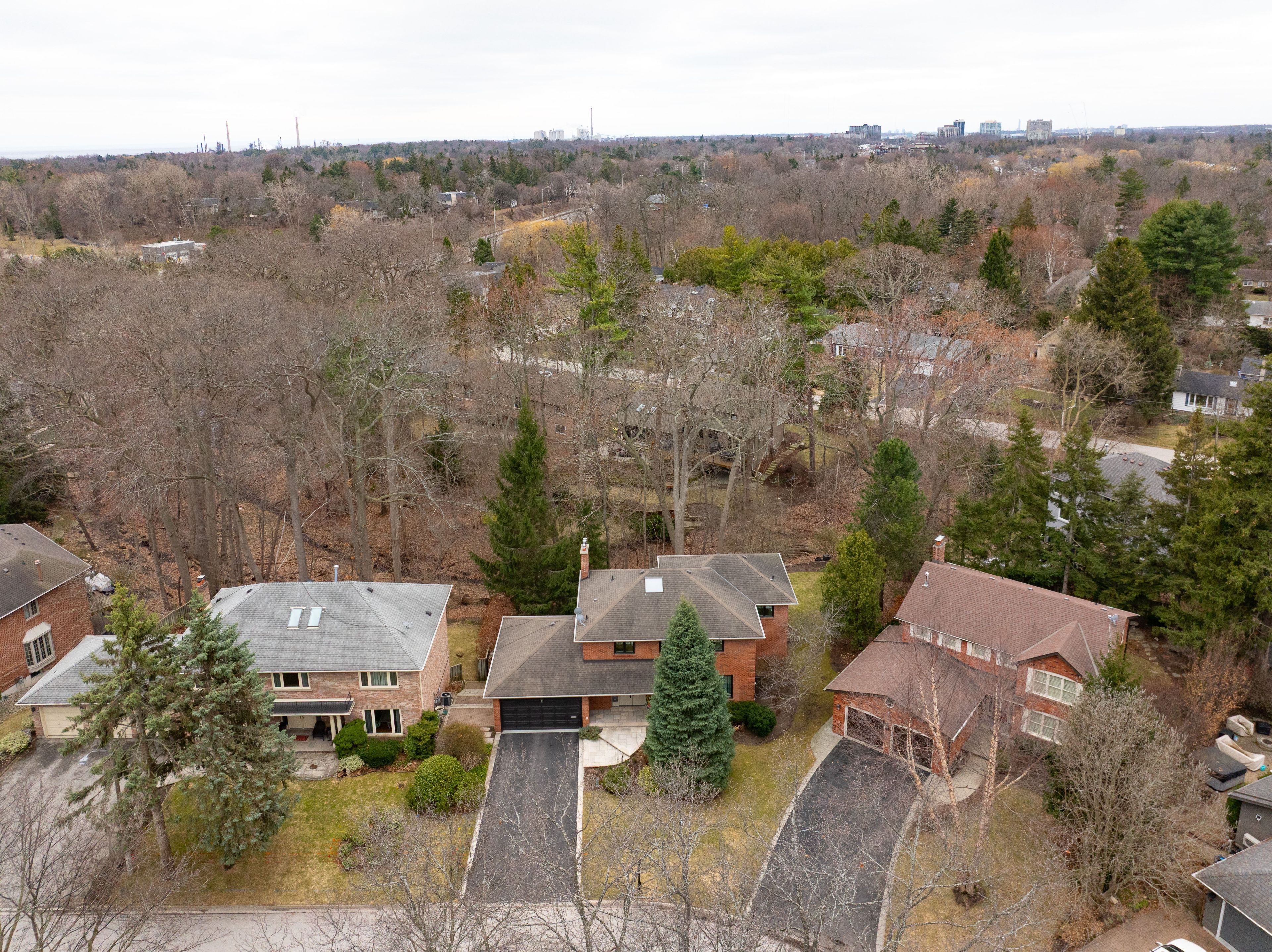 Tucked away on a quiet, rarely offered court and backing onto a breathtaking ravine, this two-storey family home offers a unique opportunity to create your dream space in an exceptional natural setting. Surrounded by mature trees, lush greenery, and wildlife, the property provides a rare sense of privacy and tranquility while still being close to everyday amenities. A grand foyer with a winding staircase welcomes you inside, leading to a spacious family room with large windows that frame serene ravine views. The kitchen offers a generous layout with a large island, eat-in area, and walkout to the expansive backyard patio-perfect for entertaining or enjoying peaceful mornings immersed in nature. The backyard is truly special, offering a private retreat with a beautiful natural backdrop-ideal for relaxing, hosting, or simply taking in the surroundings. A separate living and dining room provide additional space for gatherings, while a main floor office allows for comfortable work-from-home living. Upstairs, the primary suite is a private escape featuring space for a sitting area, a balcony overlooking the ravine, and a five-piece ensuite. Two additional bedrooms, a full bathroom, and convenient upper-level laundry complete the space for family living. The finished lower level adds versatility with an additional bedroom, a three-piece bath, and a large recreation room with a wet bar, fireplace, and walkout to the yard-perfect for entertaining or extended family. Ample storage throughout adds everyday practicality. Located in a sought-after school district and just minutes to the go station, shopping, and the waterfront at jack darling memorial park, this home combines convenience with nature. A rare offering on a coveted court, this property is ready for your personal touch-an incredible opportunity to make it your own in a setting that seldom becomes available.