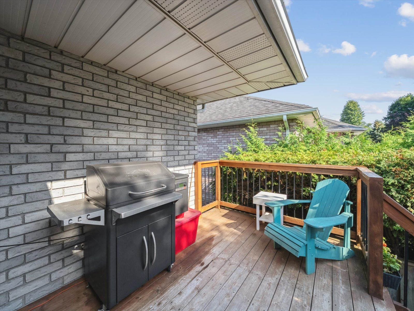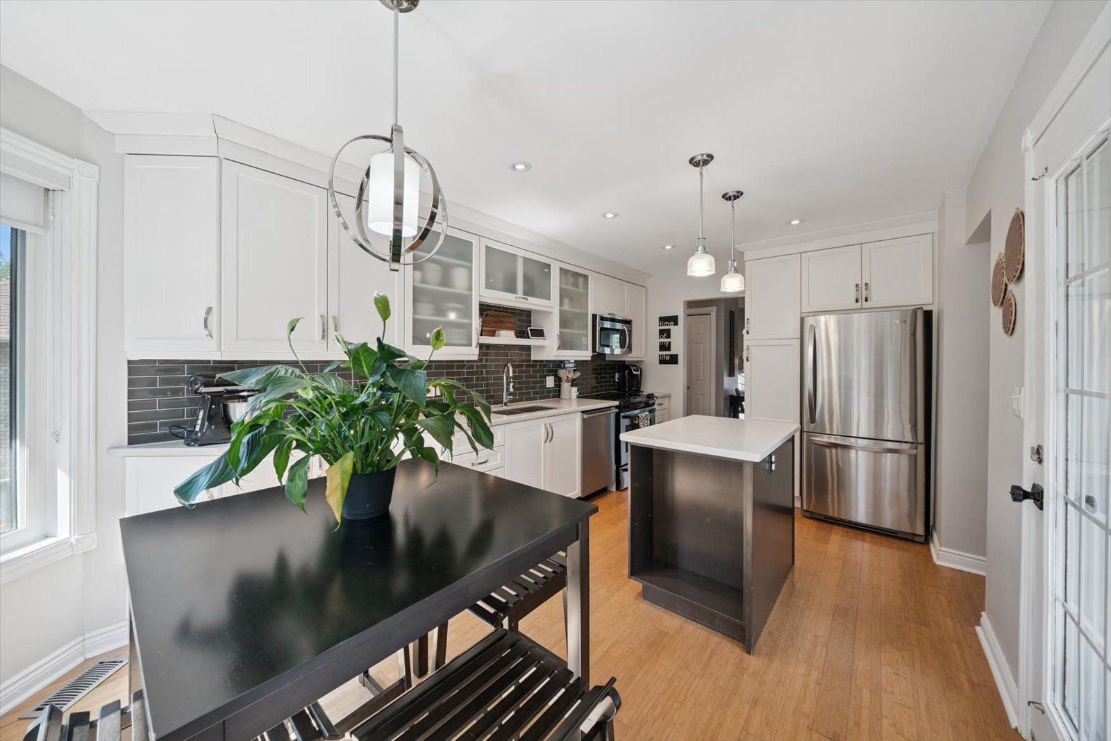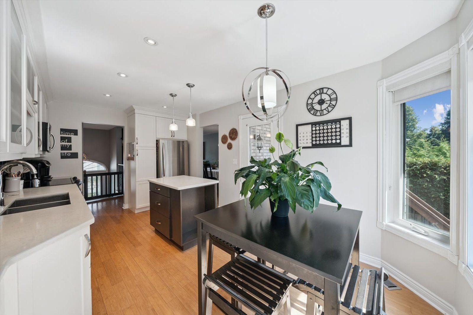 • Modern eat-in kitchen with walk-out to deck and BBQ area.