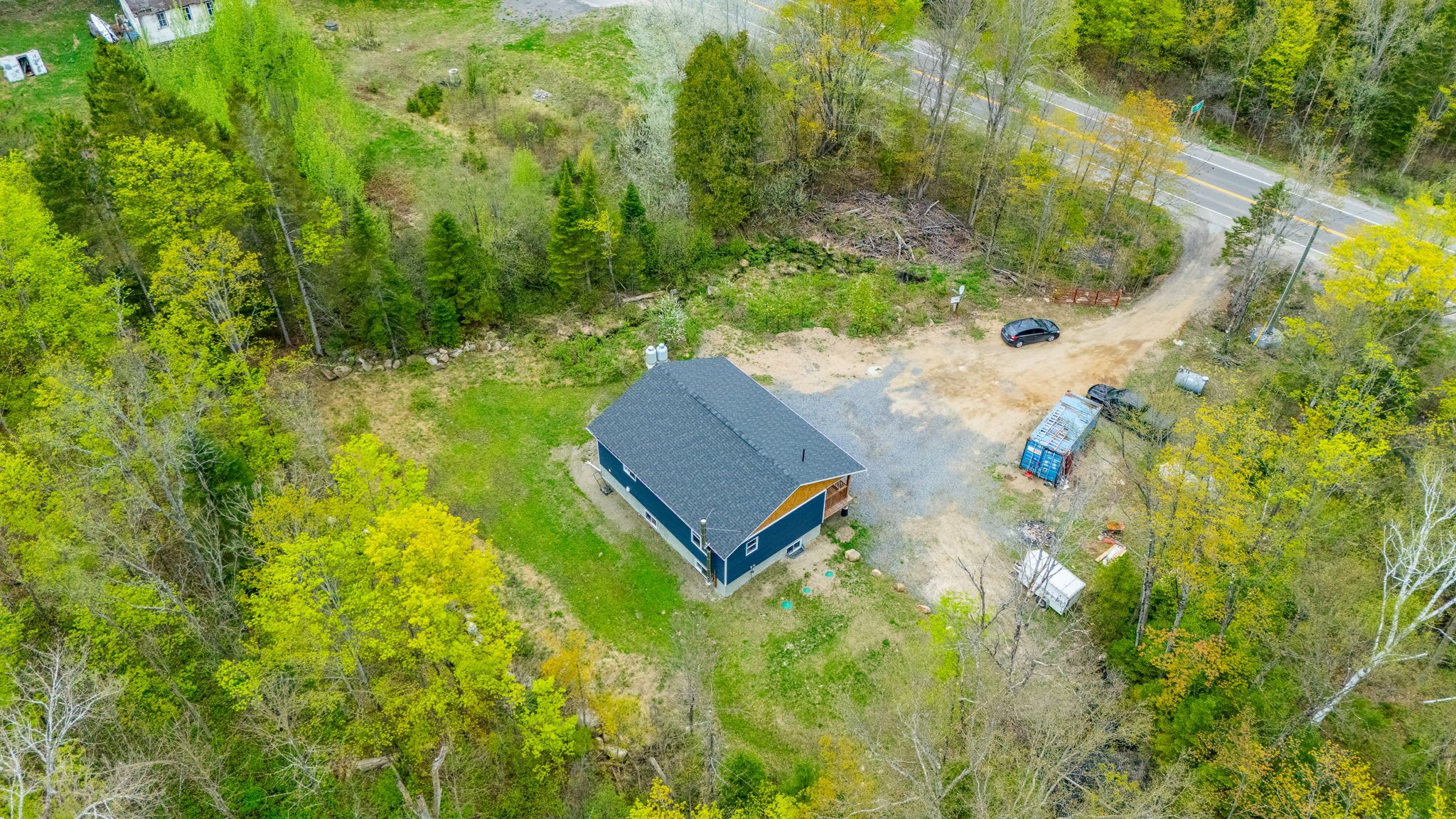 Built in 2022, this move-in ready home takes the stress out of repairs and maintenance. The 960 sqft main floor features a cozy pine interior with an open-concept layout that brings together the kitchen, living, and dining areas perfect for everyday living or hosting family and friends. You'll also find the primary bedroom and a 4-piece bathroom on this level. After a long day, relax on the covered porch with its beautiful pine ceiling and enjoy those peaceful cottage country nights. The 960sqft lower level offers even more space with two additional bedrooms, a home office area, and a second living room ideal for guests, kids, or a quiet retreat. You're just minutes away from access to the beautiful maple lake 3-lake chain, giving you endless opportunities for boating, fishing, and waterfront fun. Bonus features include a drilled well with a uv system and a generlink hydro meter connection, giving you peace of mind year-round. Plans for a 24x24ft garage available.