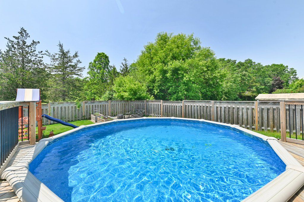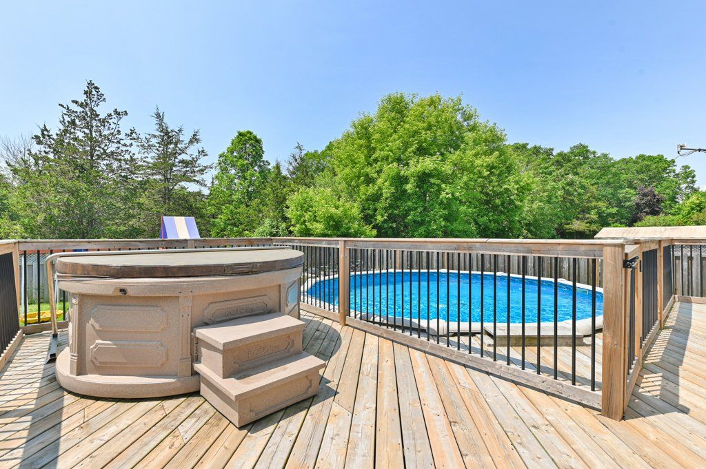 • Fully fenced yard featuring an above-ground pool and hot tub.