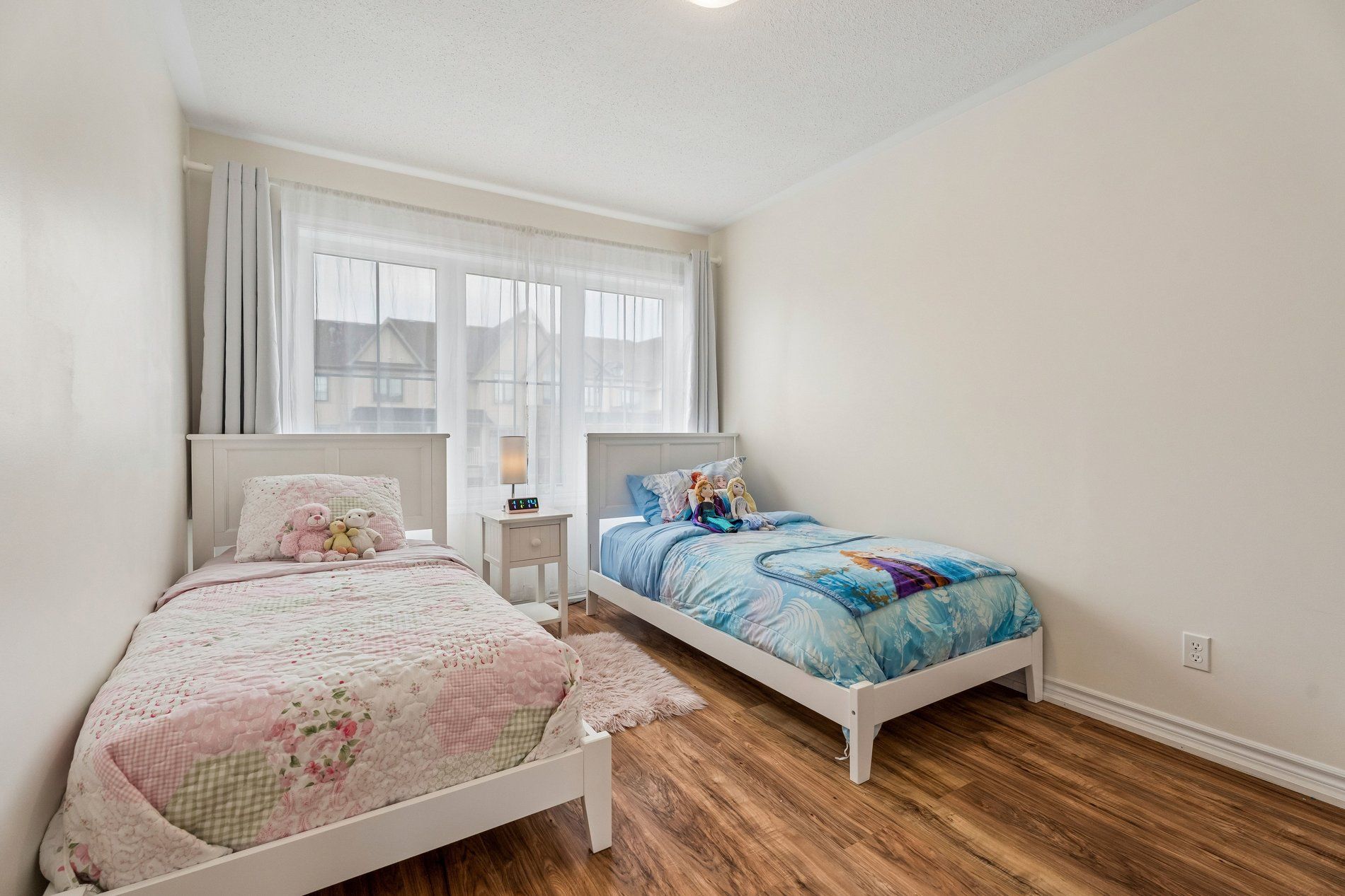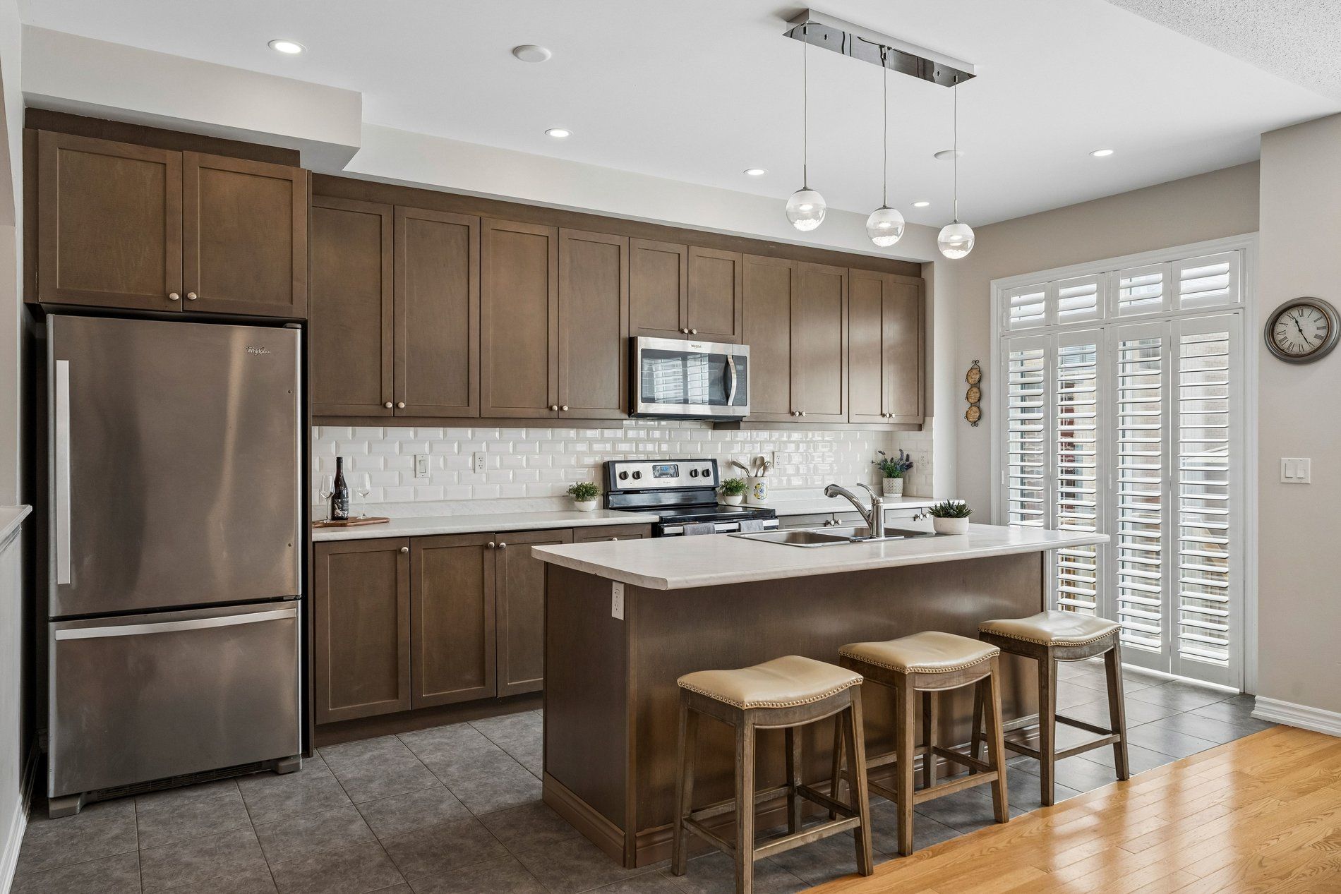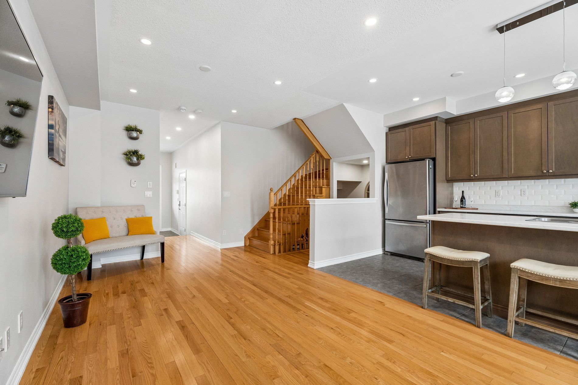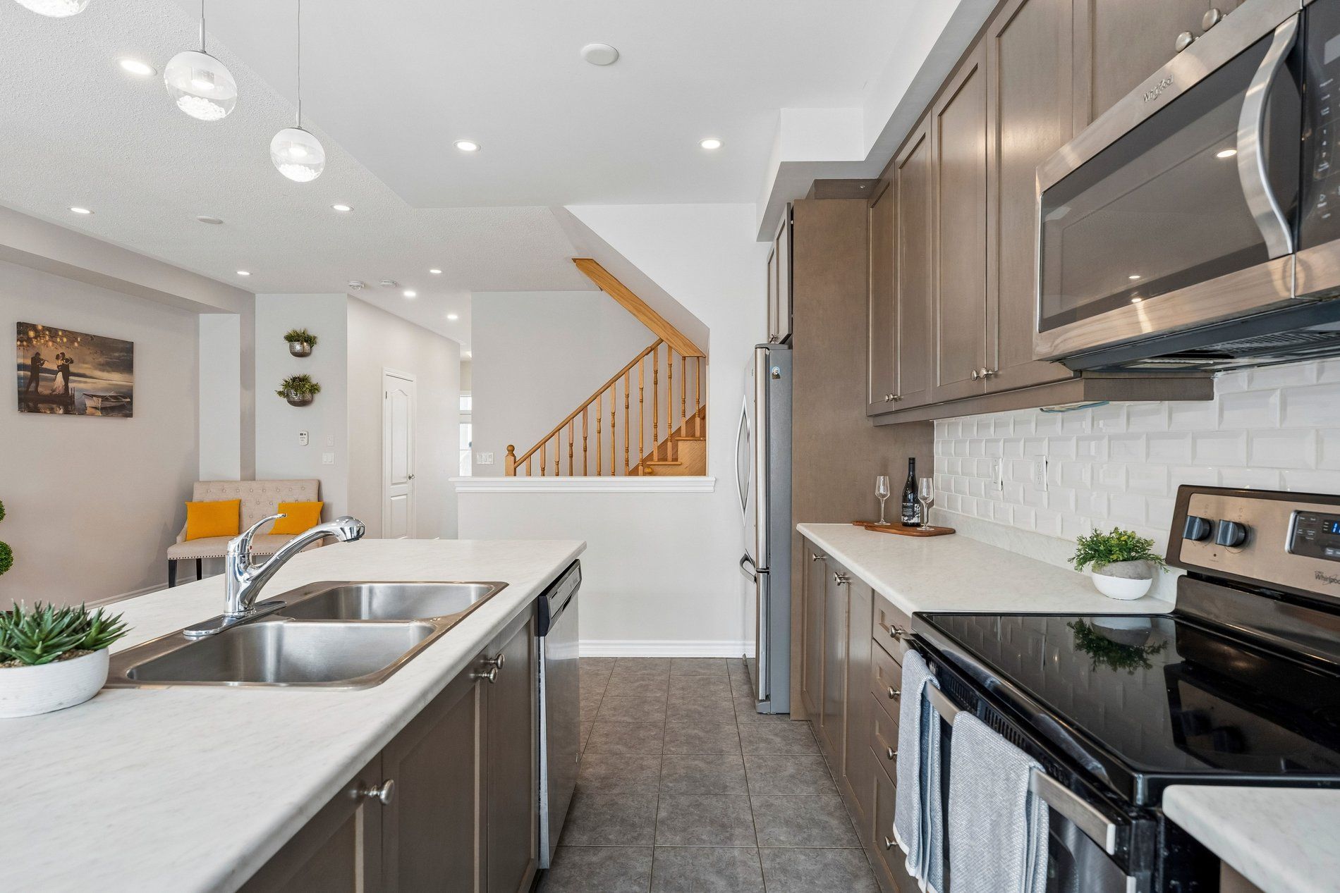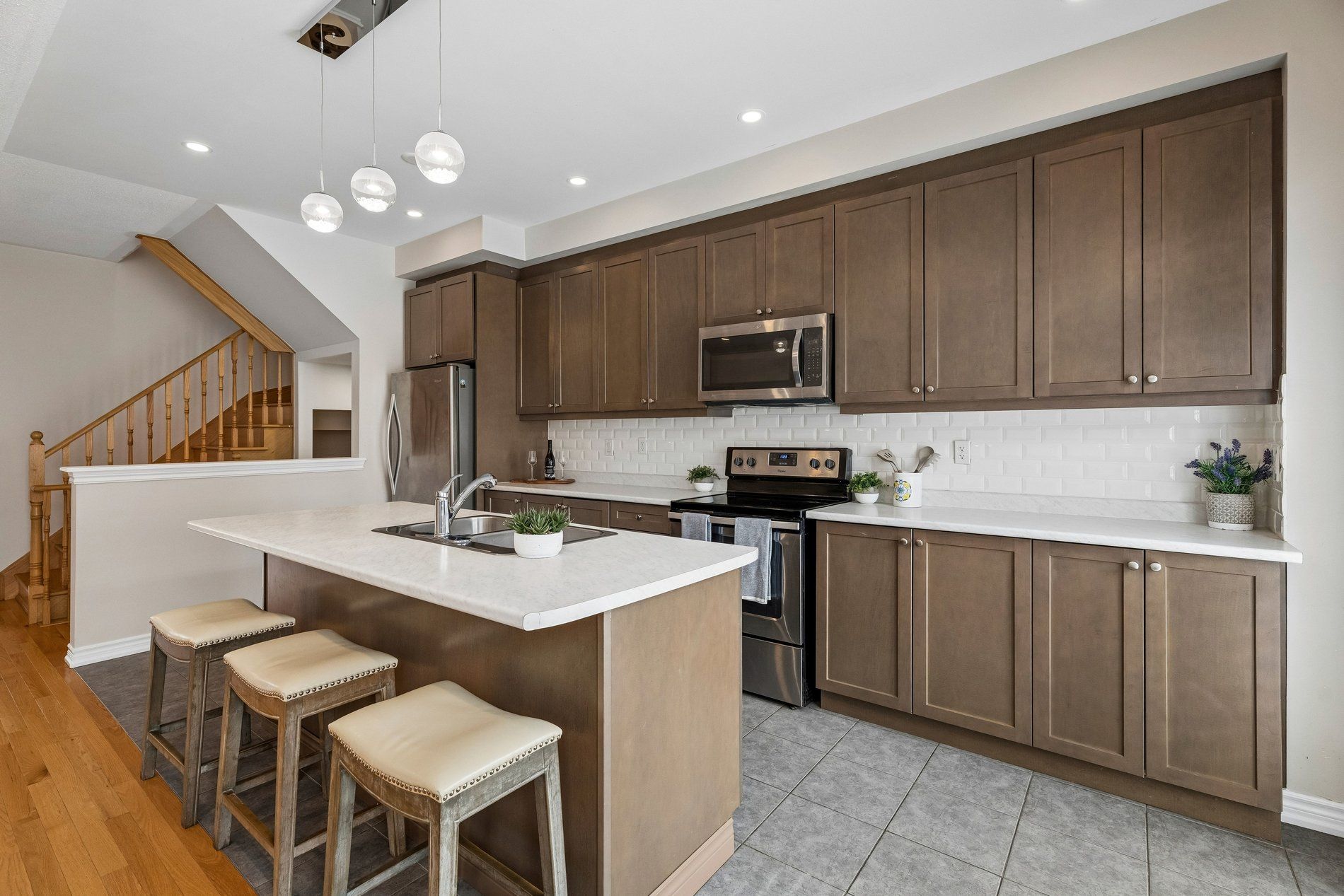 Welcome to 105 alvin pegg drive - a beautifully maintained freehold townhouse in the highly sought-after queen's landing community, offering a perfect blend of peaceful living and everyday convenience. This bright and thoughtfully designed home features a rare, functional layout that maximizes both living space and storage throughout. Offering approximately 1,832 sq. Ft. Of finished living space as per builder (minto), this home provides exceptional value with additional unfinished areas including a spacious laundry room, dedicated storage room, and a 3-piece rough-in in the basement ready for your personal touch. The main level impresses with 9 ft ceilings, elegant pot lights, hardwood flooring, california shutters, and a stunning oak staircase. The upgraded kitchen serves as the heart of the home, featuring a functional layout, large island with breakfast bar, upgraded lighting, under-cabinet lighting, above the range microwave, and additional storage above the fridge-perfect for both everyday living and entertaining. Convenient access to the garage is available through the foyer. Upstairs, you'll find three spacious bedrooms, including a well-appointed primary suite complete with a large walk-in closet, stand-alone tub, and glass shower. Step out onto the balcony to enjoy peaceful views overlooking the park and surrounding green space. The finished basement offers a bright rec/family room with lookout windows, a framed 3-piece rough-in, a large unfinished laundry area with ample storage, and a separate storage room under the stairs with its own door and lighting. The fully fenced backyard is an outdoor retreat, featuring interlocking stonework, a 12x12 gazebo, and garden space-ideal for relaxing, entertaining, or family enjoyment.