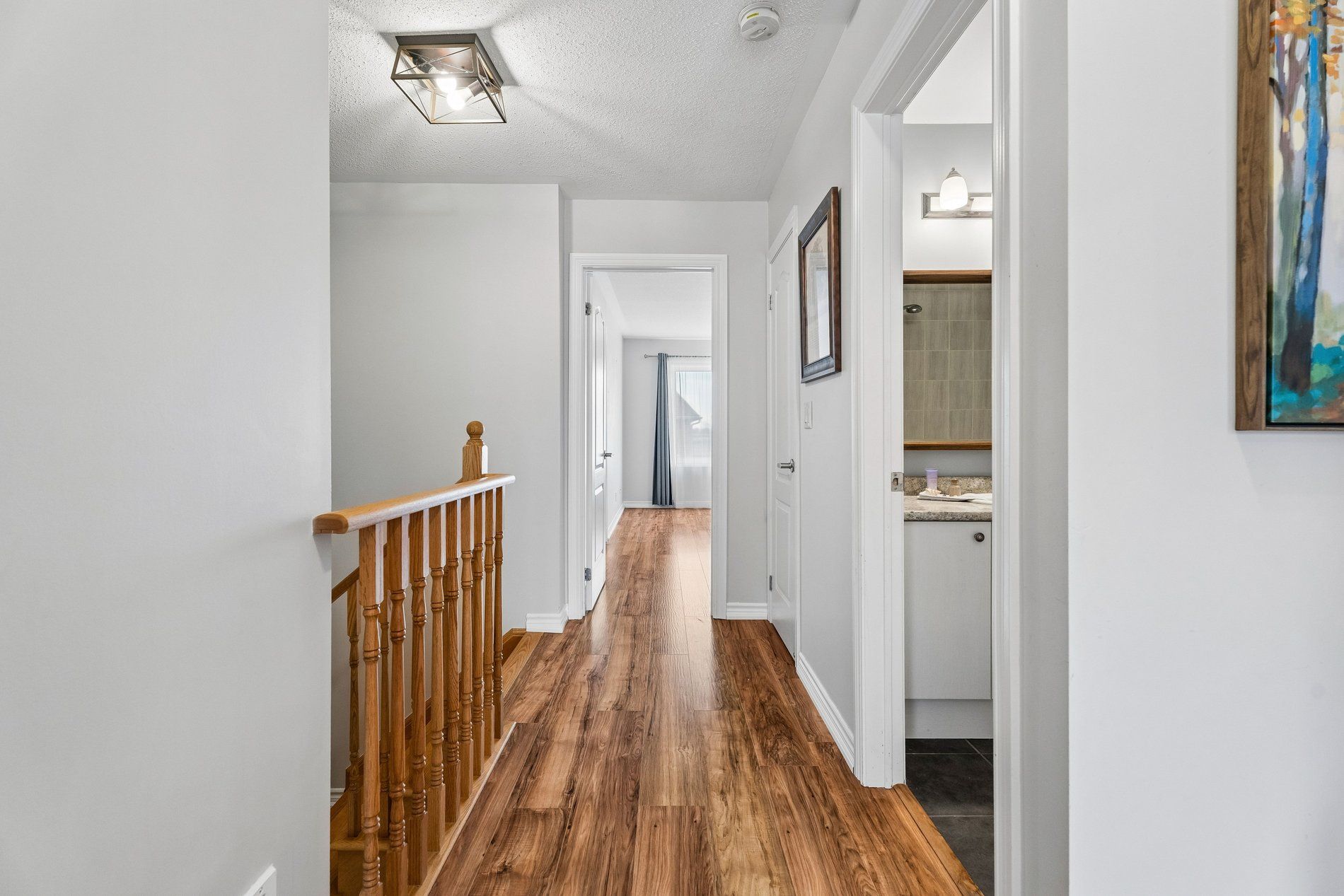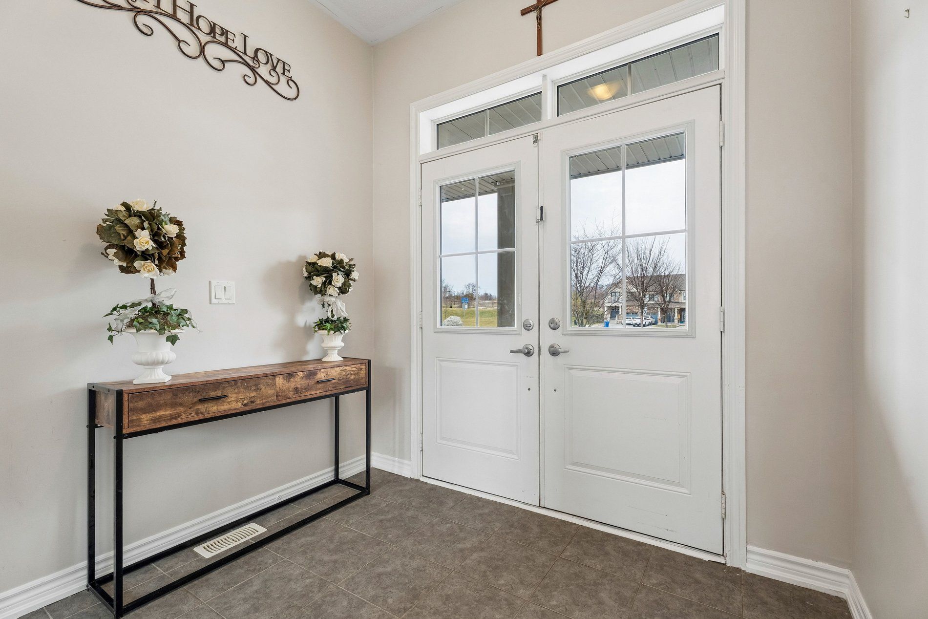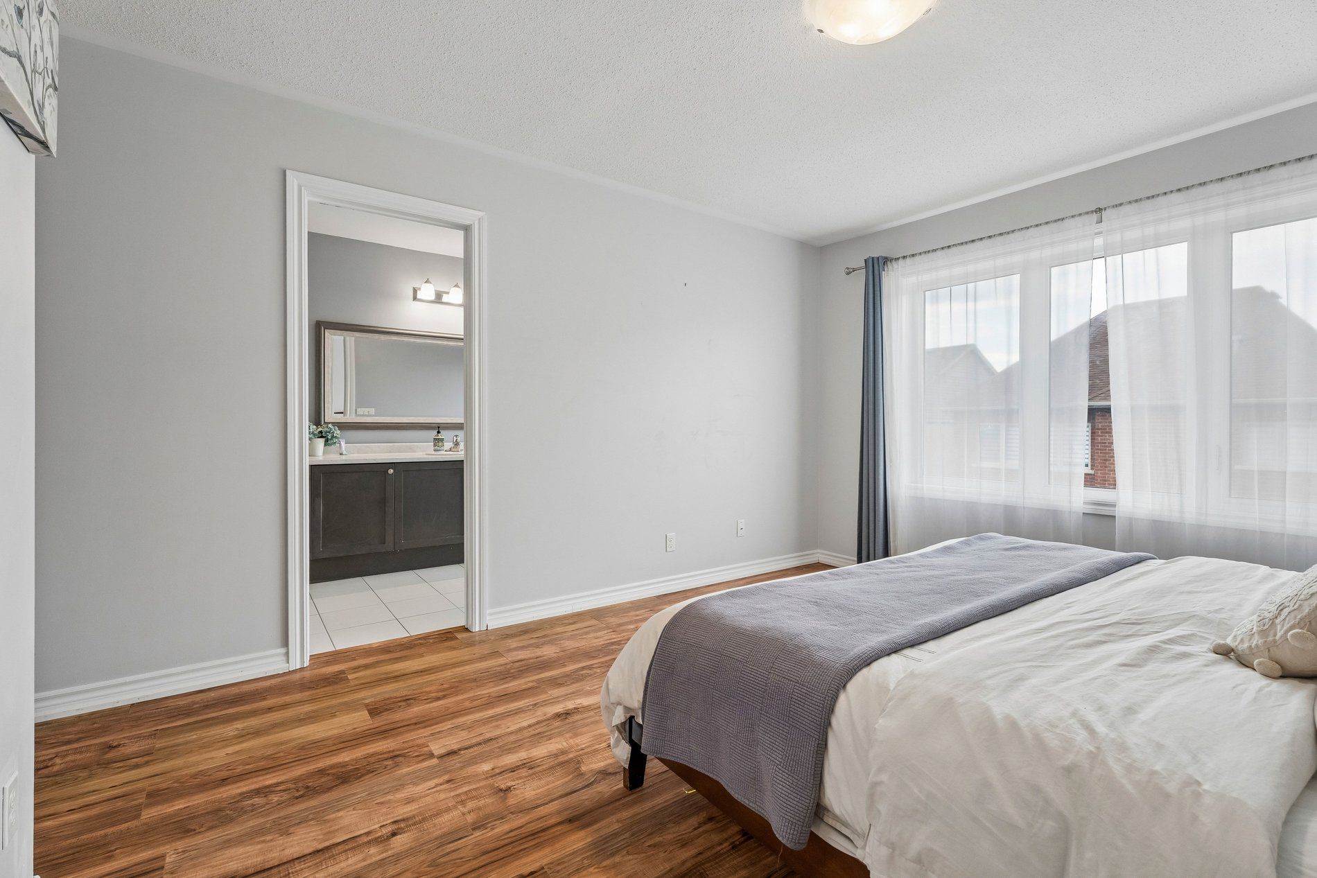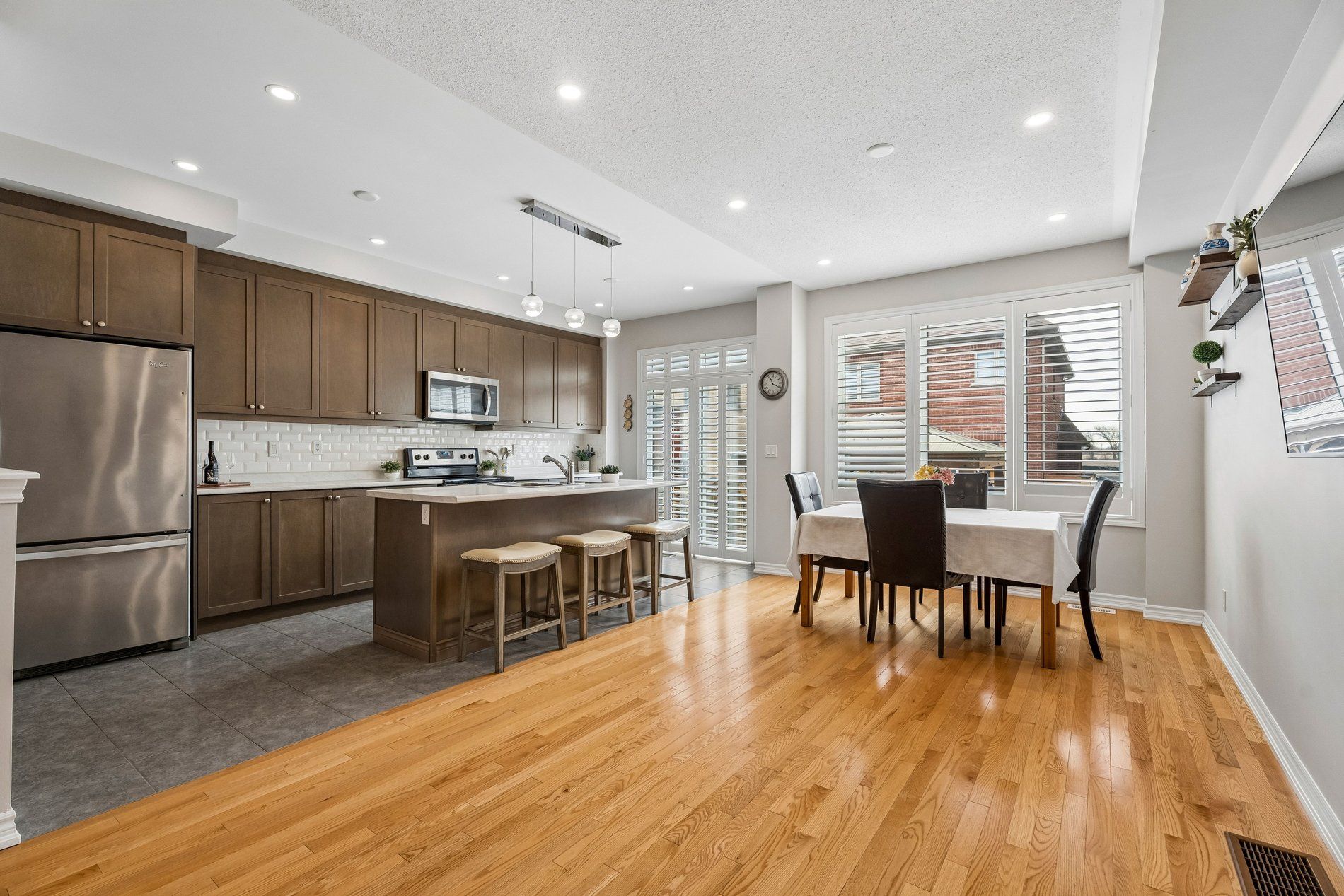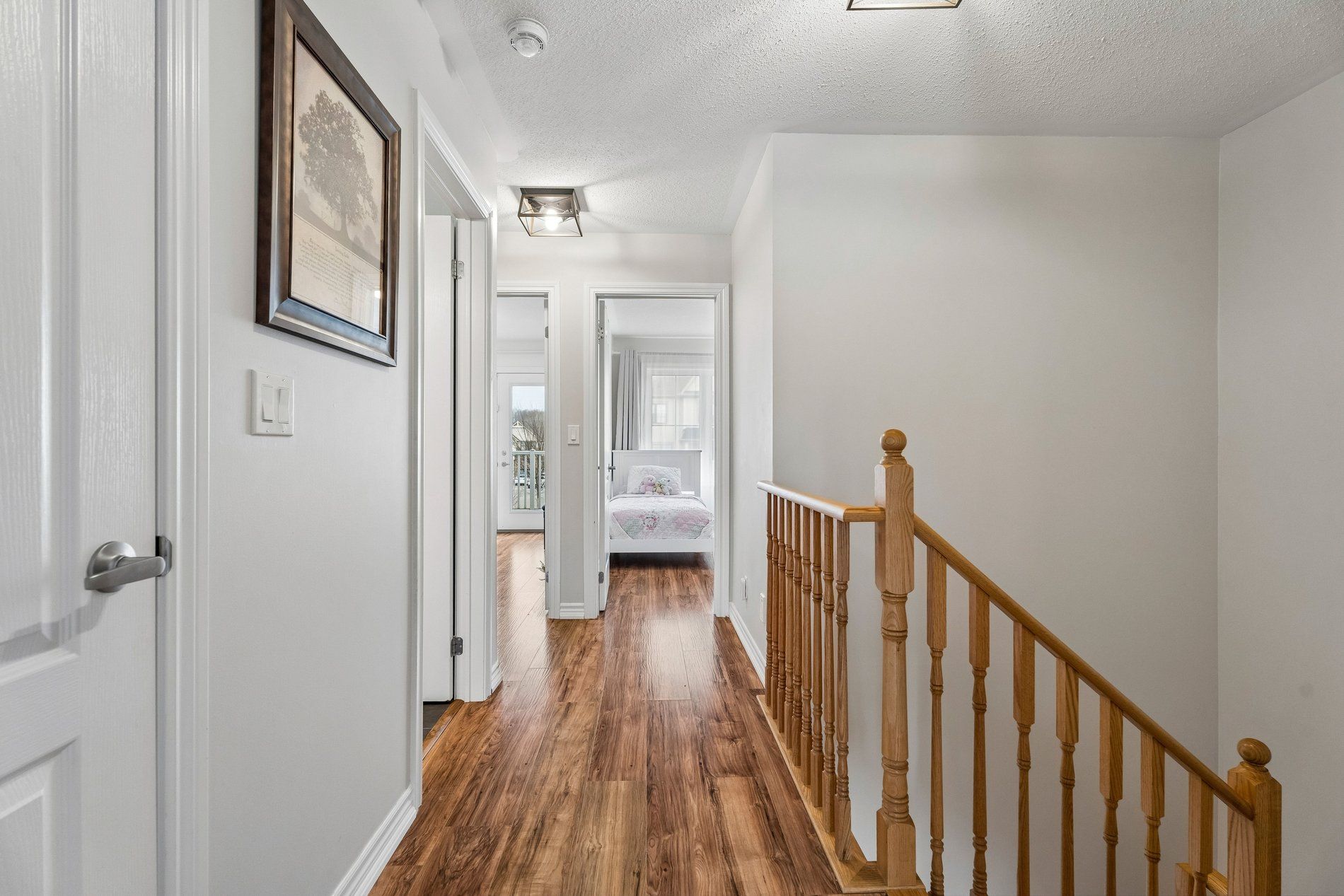 Welcome to 105 alvin pegg drive - a beautifully maintained freehold townhouse in the highly sought-after queen's landing community, offering a perfect blend of peaceful living and everyday convenience. This bright and thoughtfully designed home features a rare, functional layout that maximizes both living space and storage throughout. Offering approximately 1,832 sq. Ft. Of finished living space as per builder (minto), this home provides exceptional value with additional unfinished areas including a spacious laundry room, dedicated storage room, and a 3-piece rough-in in the basement ready for your personal touch. The main level impresses with 9 ft ceilings, elegant pot lights, hardwood flooring, california shutters, and a stunning oak staircase. The upgraded kitchen serves as the heart of the home, featuring a functional layout, large island with breakfast bar, upgraded lighting, under-cabinet lighting, above the range microwave, and additional storage above the fridge-perfect for both everyday living and entertaining. Convenient access to the garage is available through the foyer. Upstairs, you'll find three spacious bedrooms, including a well-appointed primary suite complete with a large walk-in closet, stand-alone tub, and glass shower. Step out onto the balcony to enjoy peaceful views overlooking the park and surrounding green space. The finished basement offers a bright rec/family room with lookout windows, a framed 3-piece rough-in, a large unfinished laundry area with ample storage, and a separate storage room under the stairs with its own door and lighting. The fully fenced backyard is an outdoor retreat, featuring interlocking stonework, a 12x12 gazebo, and garden space-ideal for relaxing, entertaining, or family enjoyment.