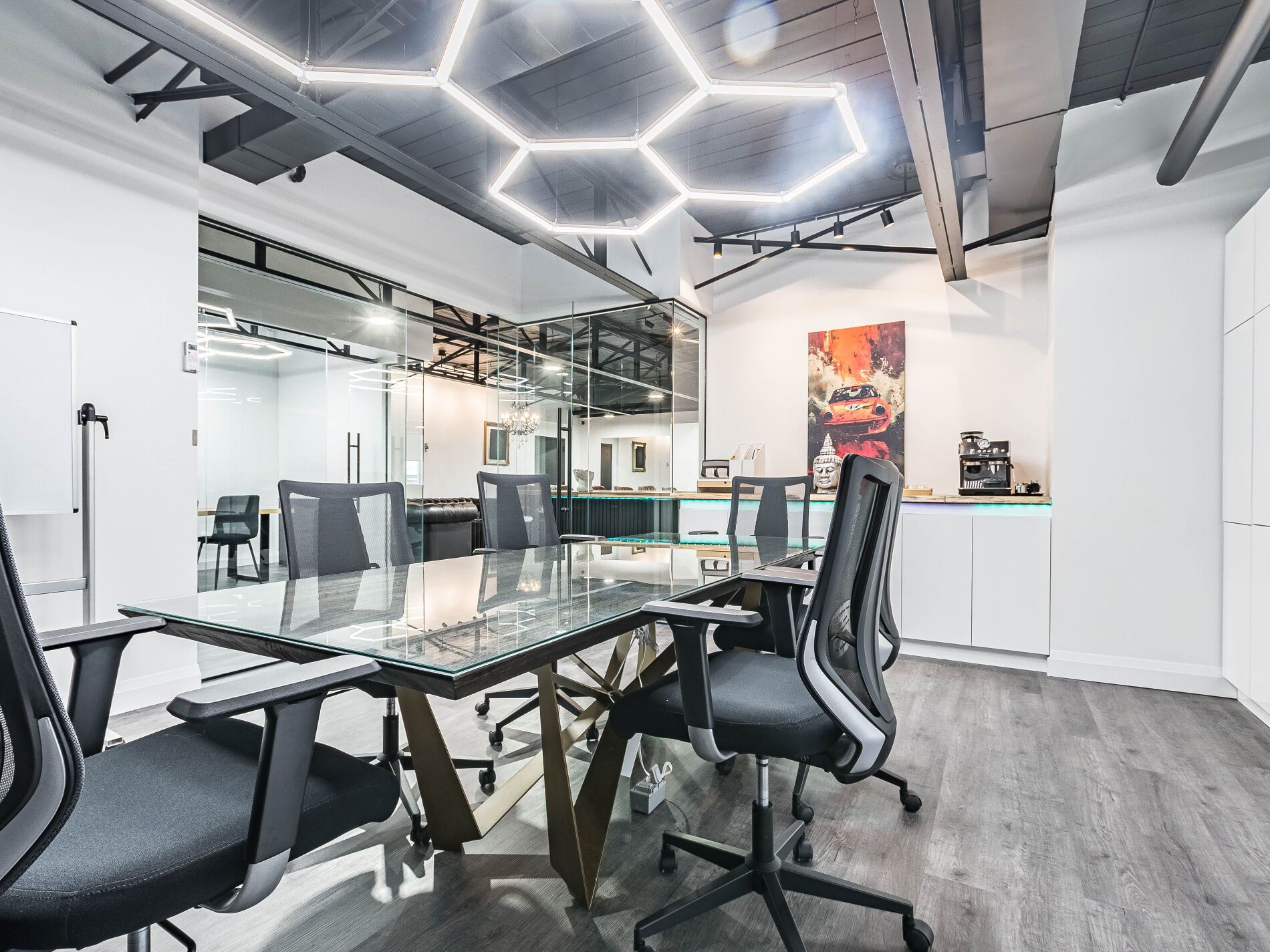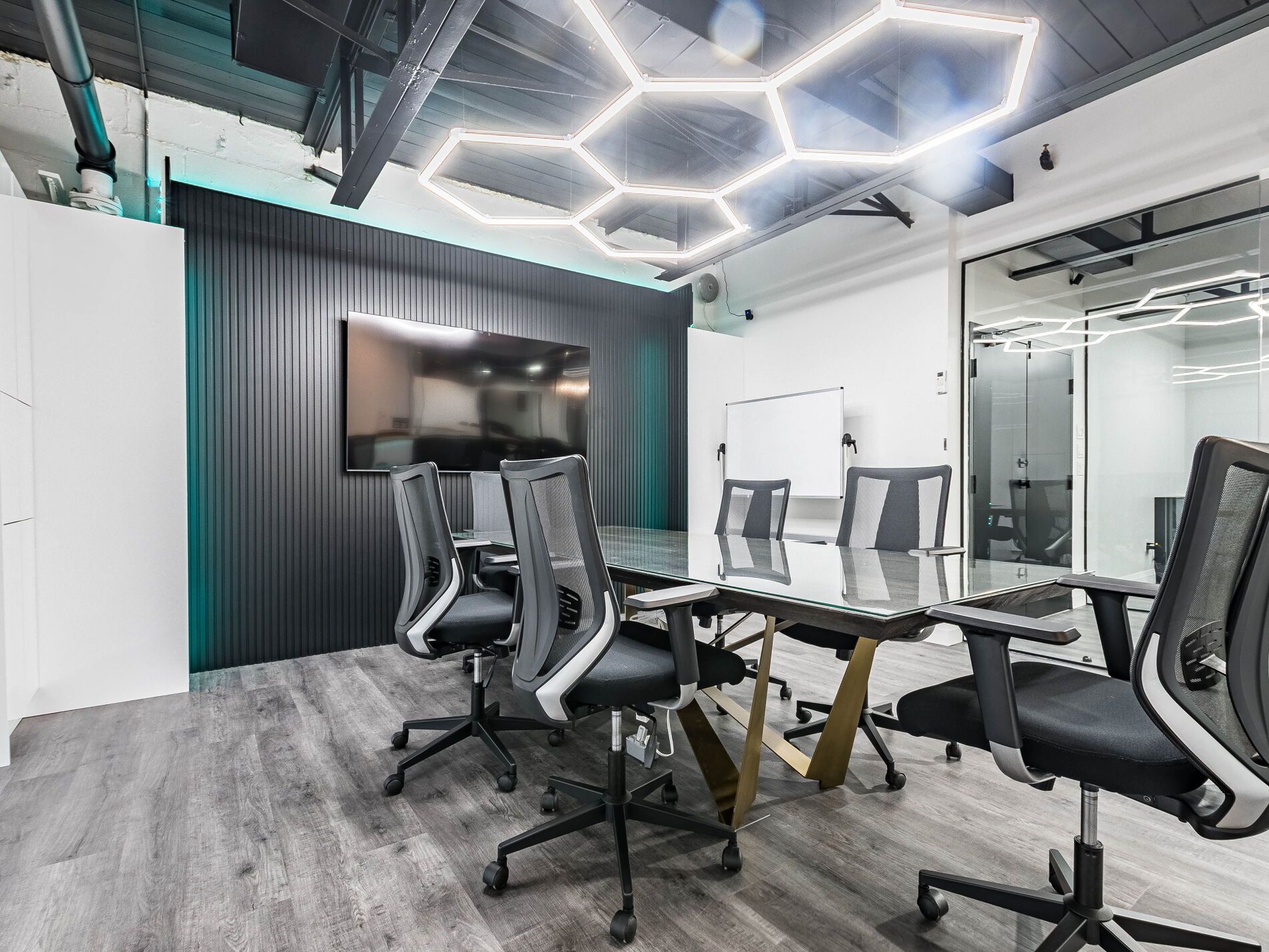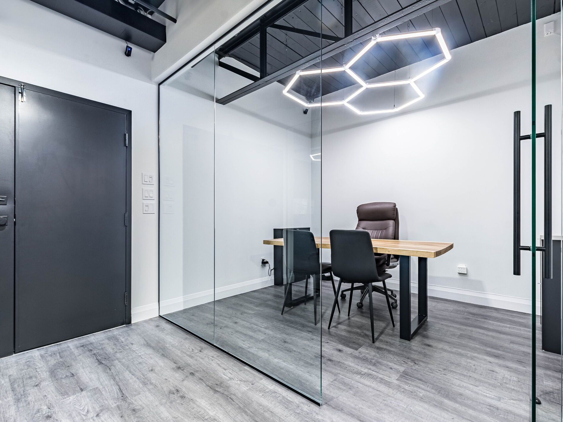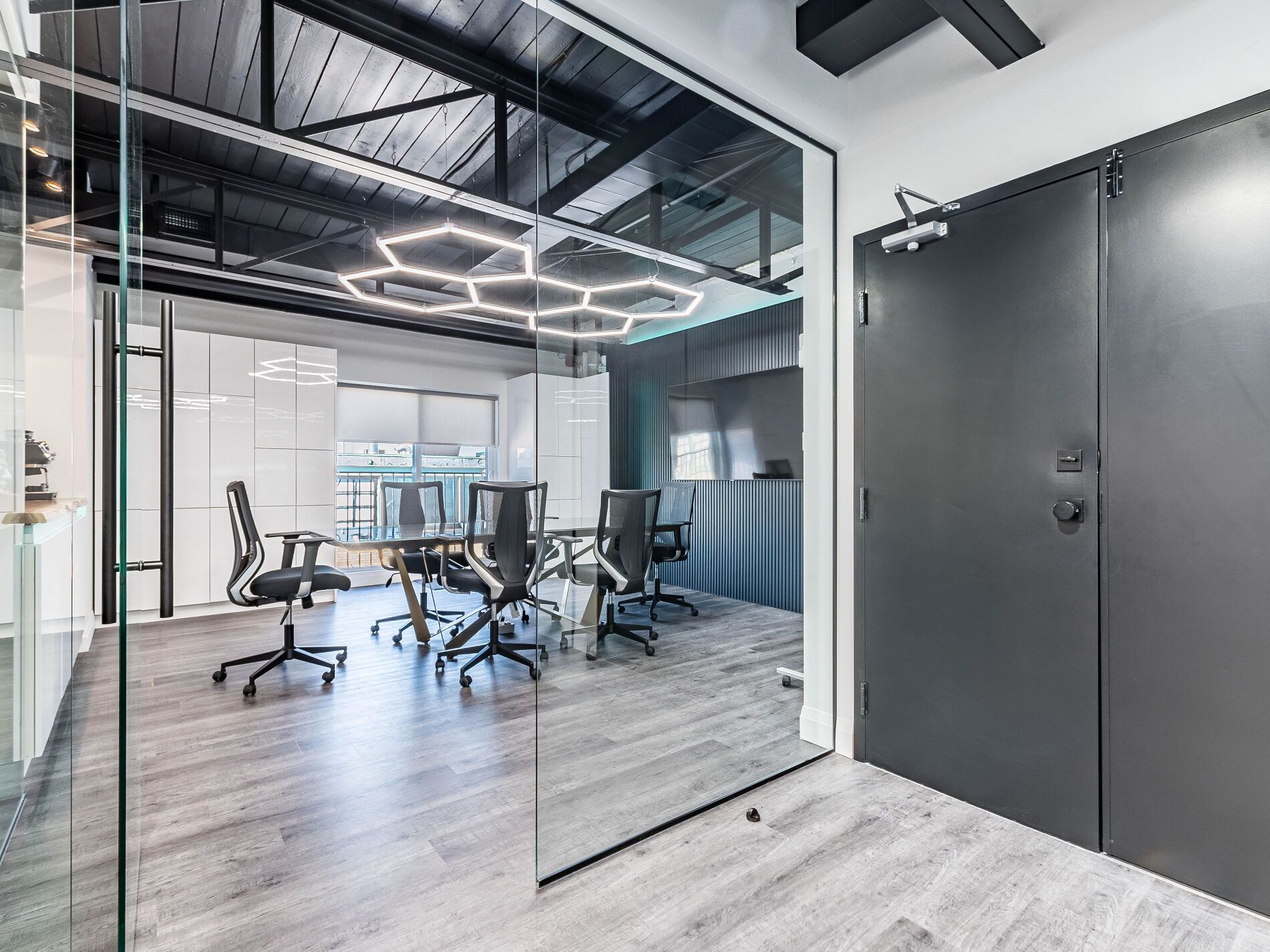 • Modern layout featuring executive boardroom and separate glass-walled office.