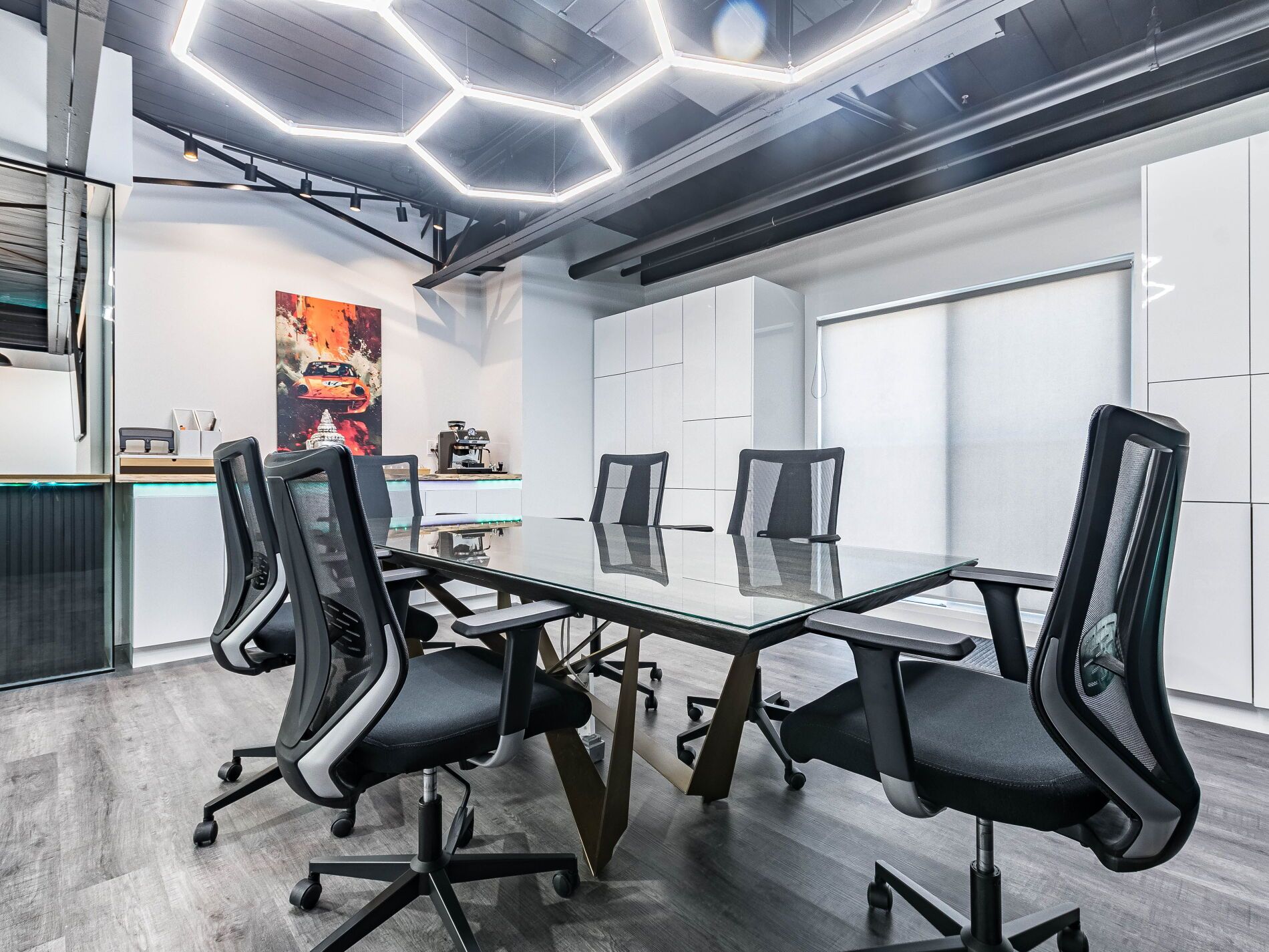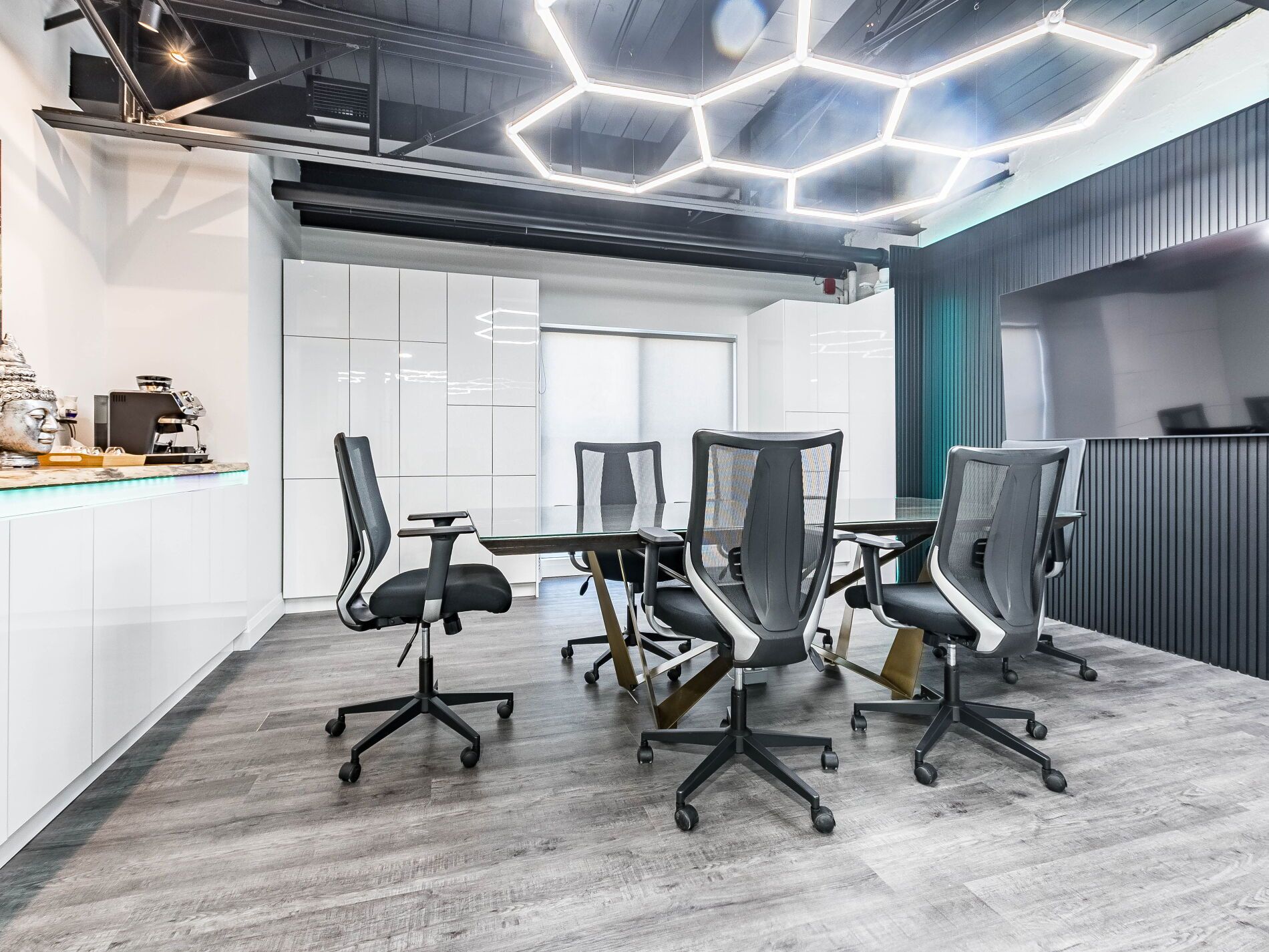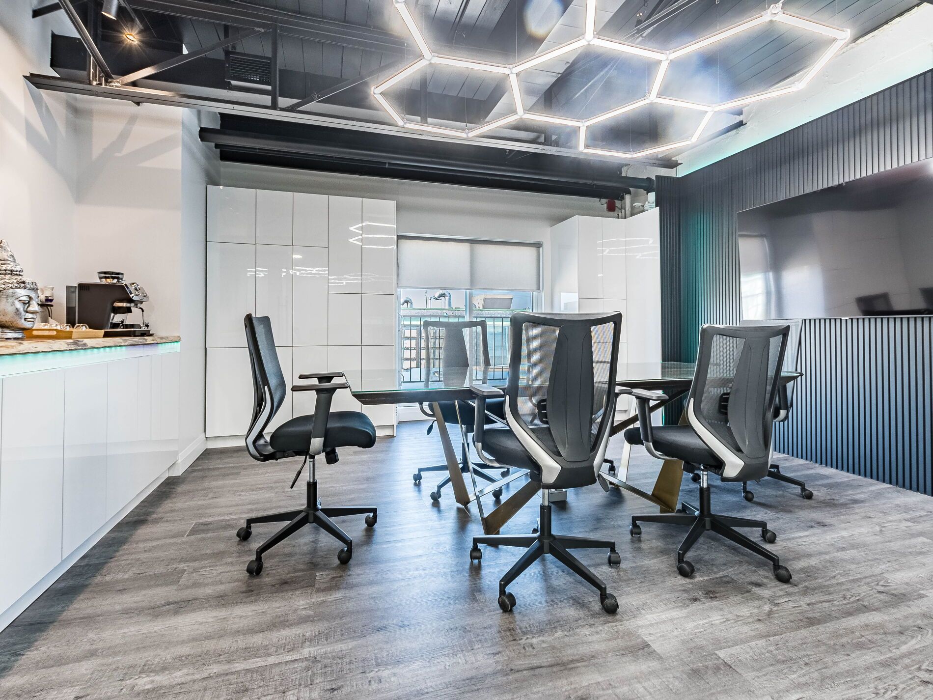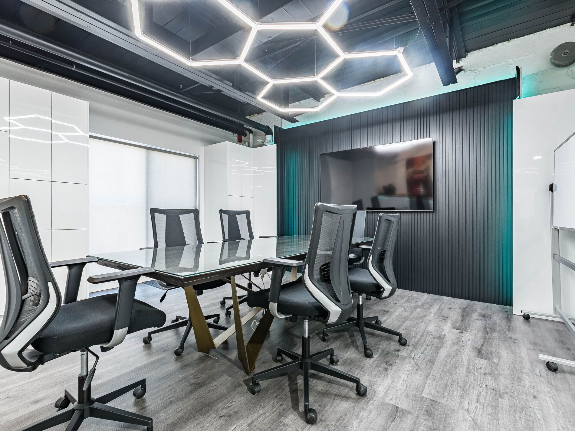 • Modern layout featuring executive boardroom and separate glass-walled office.
