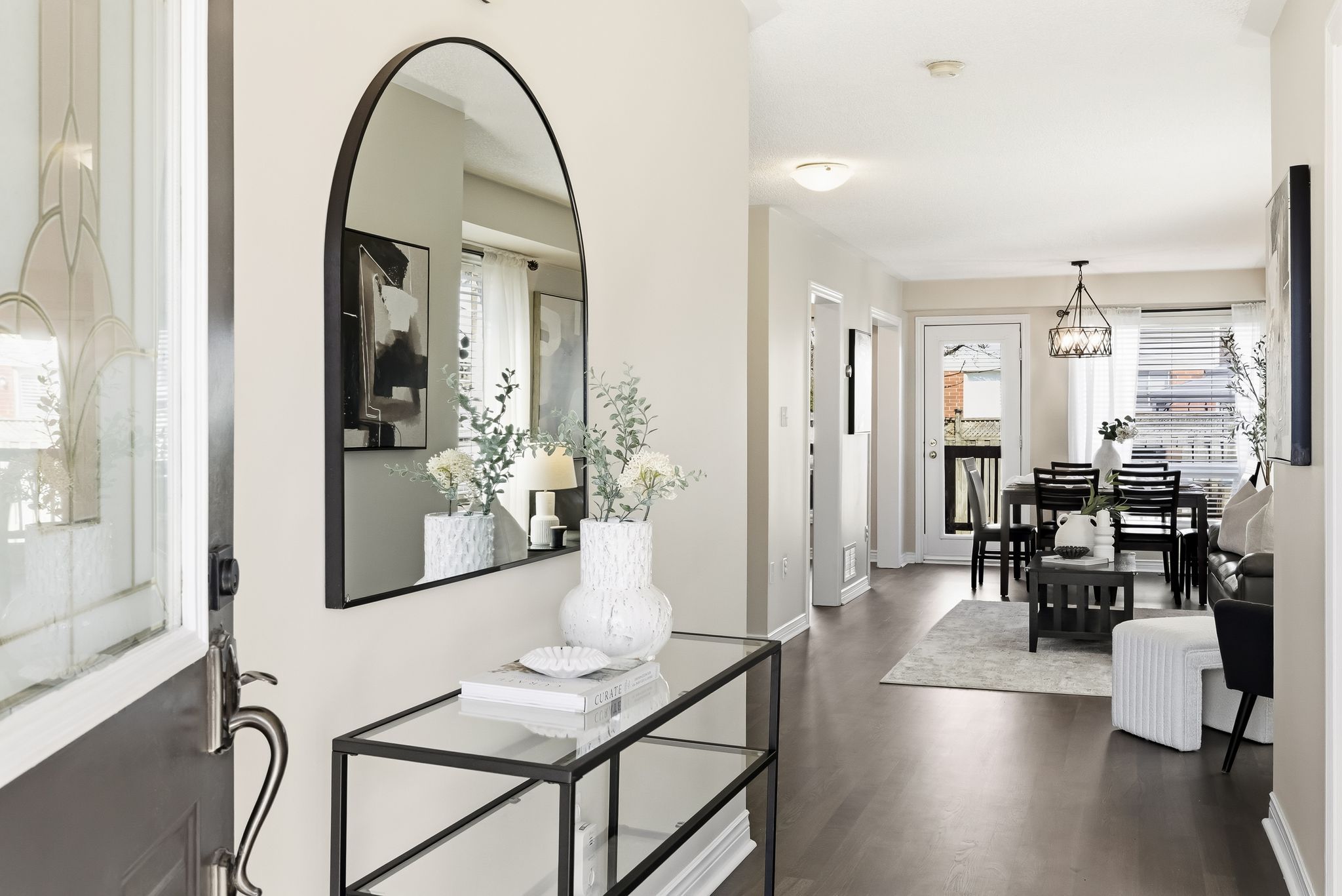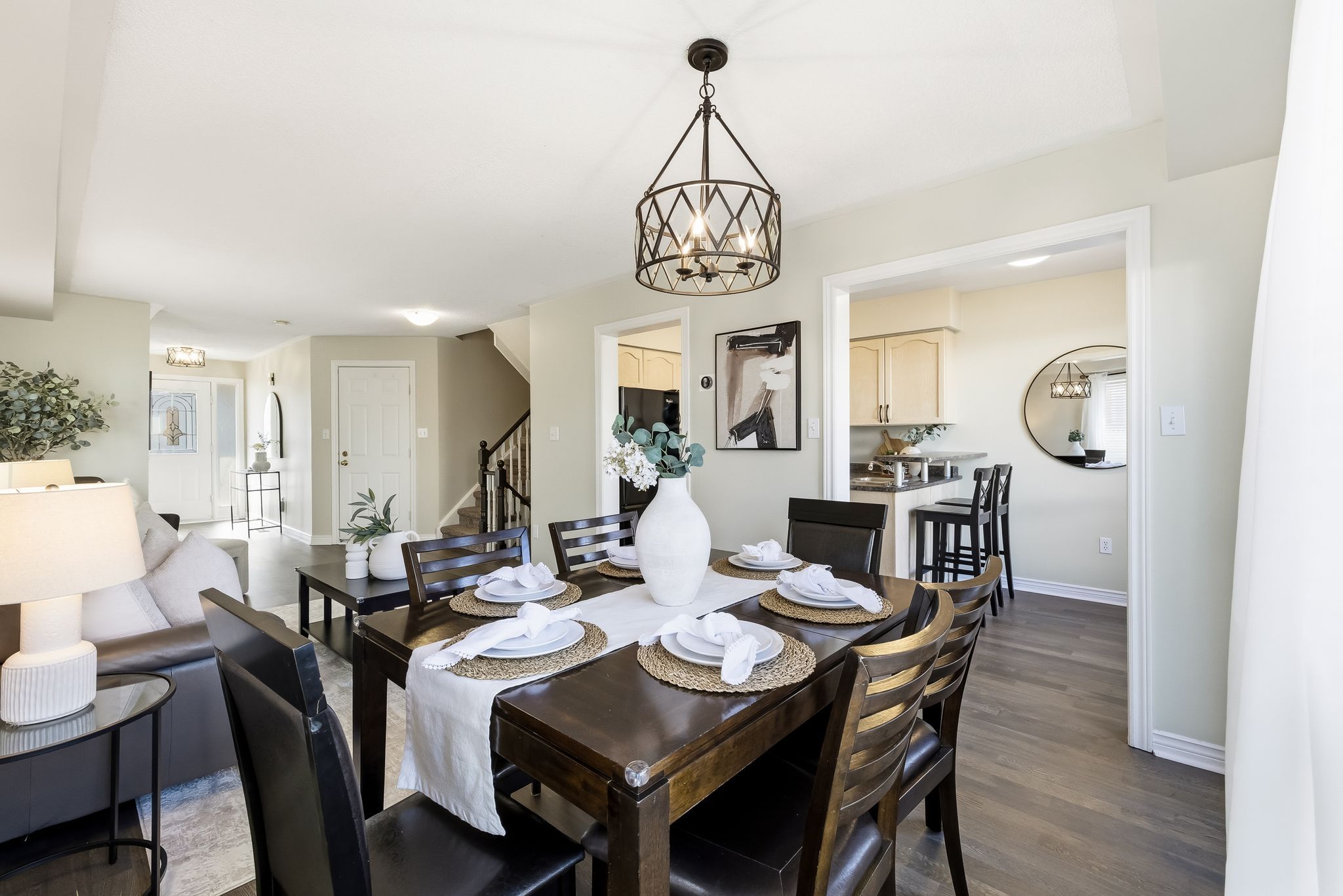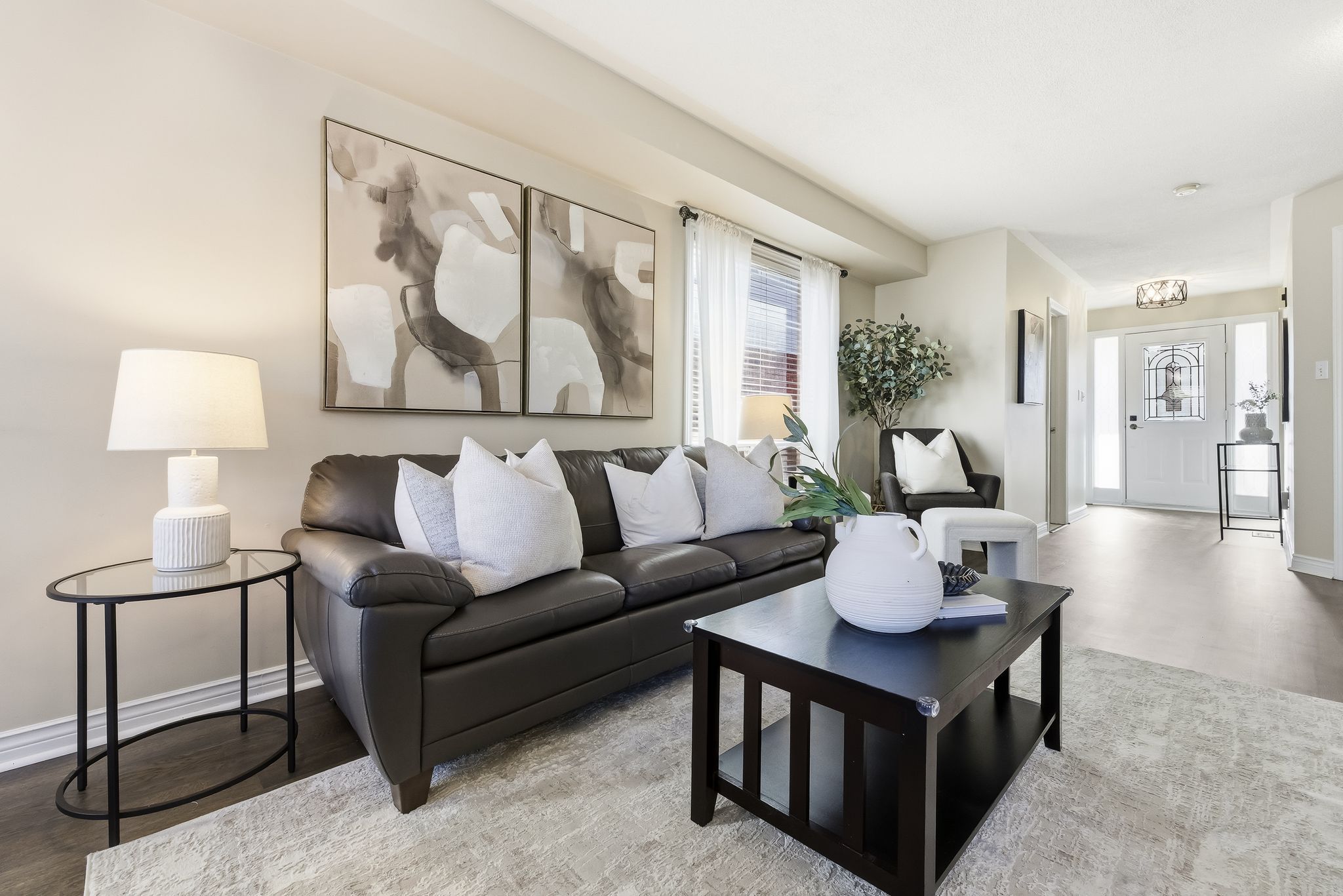 Welcome to brownstone crescent - this beautifully maintained end-unit townhome boasts what others can't. With nearly 1,400 sq ft above grade, a 4th bathroom, home-access to the built-in garage, plus a fully finished basement. Conveniently located on a quiet, family-friendly neighbourhood in courtice. The main floor showcases newly re-finished hardwood floors, plenty of windows, creating a bright and welcoming atmosphere and a rear walk-out to the private backyard. Upon entering the foyer you'll find a closet, a 2-pc bathroom, and the convenience of direct access to the 1-car garage. Enjoy open-concept main floor with large windows offers natural light in the family room and dining rooms, making it ideal for entertaining. The eat-in kitchen features whirlpool and bosch appliances, hardwood flooring, a breakfast bar, and a bay window shining even more natural light into the space. The second storey provides newer carpeted floors in the three generously sized bedrooms, along with two full 4-piece bathrooms. The primary bedroom includes a double-wide closet and private 4-pc ensuite, while the additional 2 bedrooms are perfect for children, guests, or a home office. The professionally finished basement adds valuable living space with a cozy den complete with gas fireplace, a second 2-piece bathroom, and a dedicated laundry/utility area- all ideal for convenience and relaxation, working from home or hosting guests. This home is perfectly positioned close to highly regarded schools, everyday shopping amenities, and excellent commuter access. Enjoy nearby green spaces including glenabbey and stuart parks, with the courtice community complex just minutes away. Commuters will appreciate the quick access to highways 401 and 407, as well as proximity to the oshawa go station. This move-in-ready end unit offers space, comfort, and an unbeatable location for families and professionals alike.