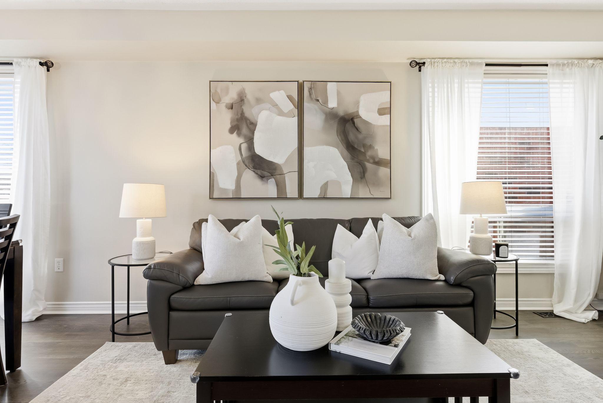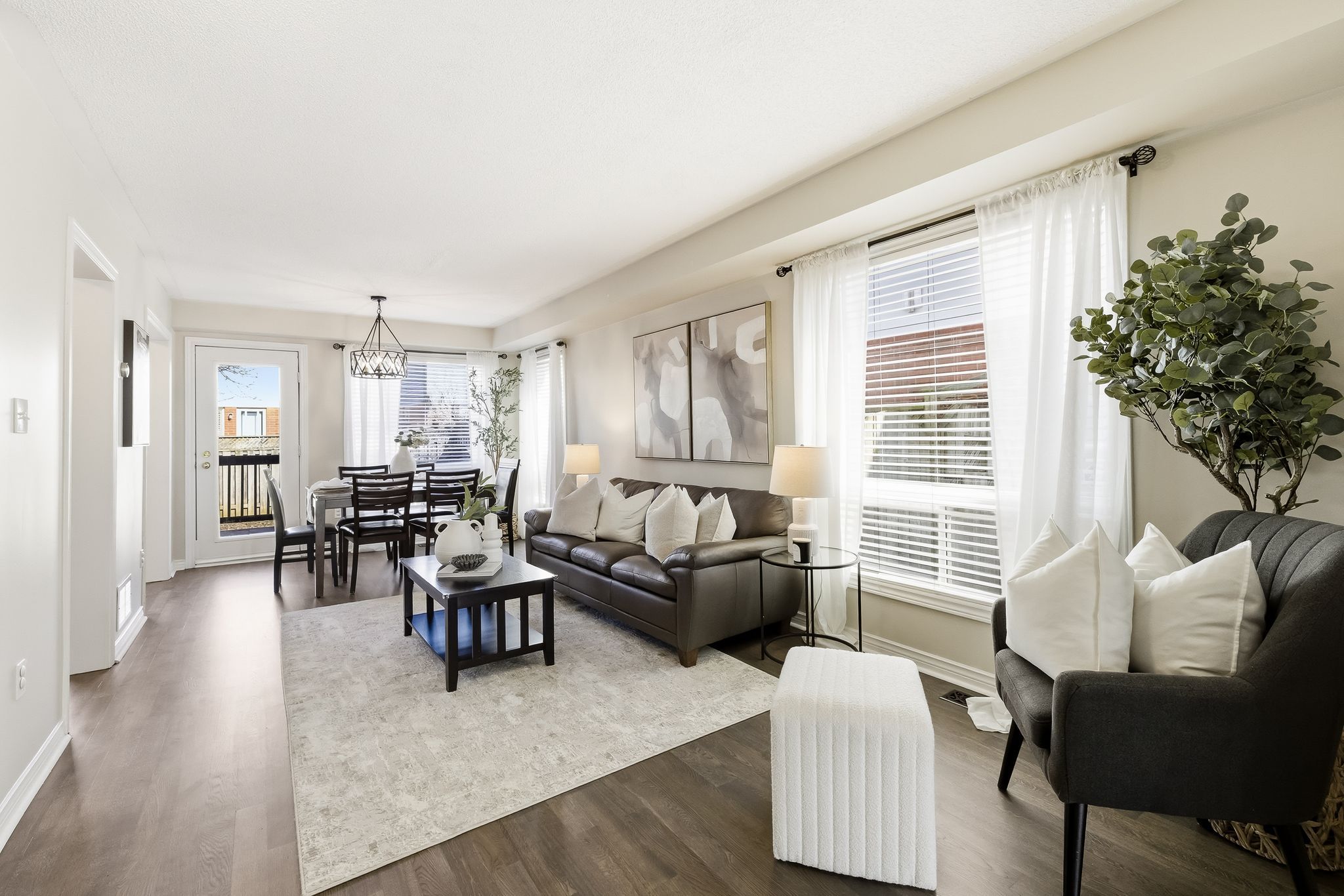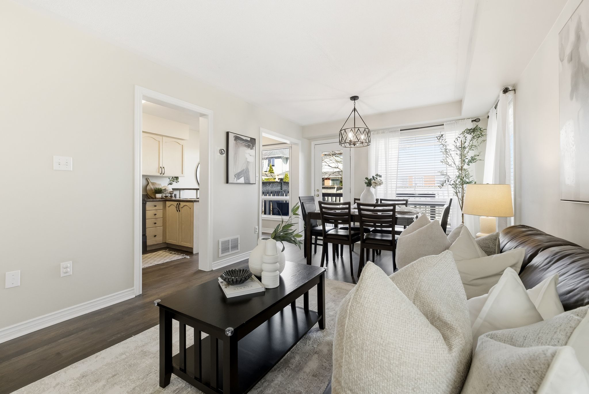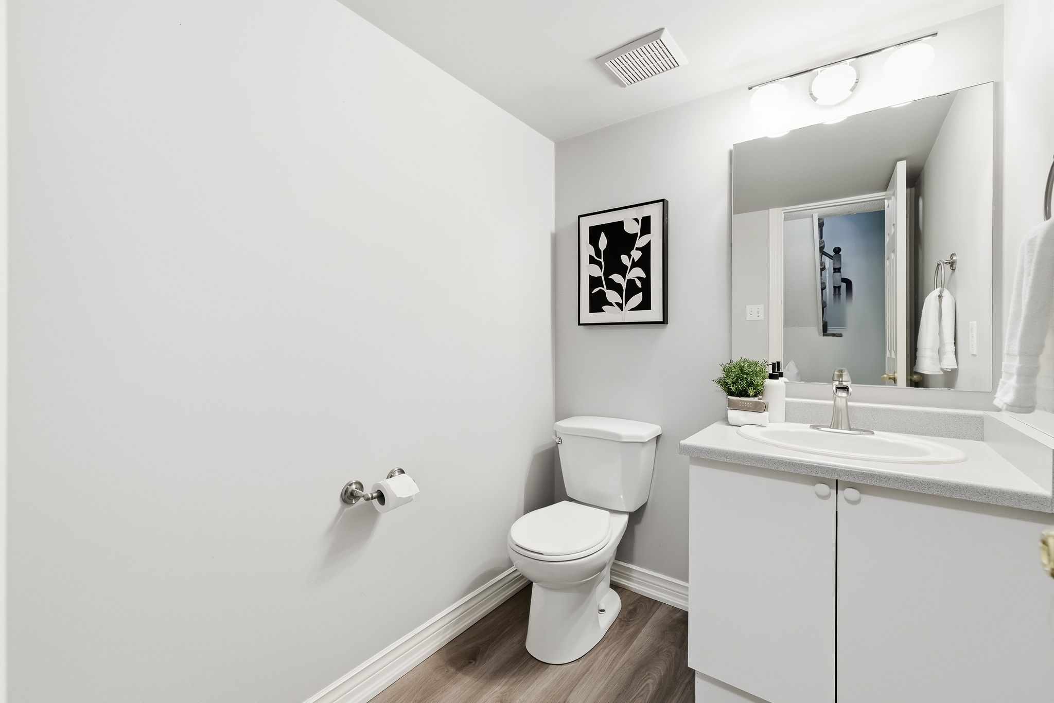 Welcome to brownstone crescent - this beautifully maintained end-unit townhome boasts what others can't. With nearly 1,400 sq ft above grade, a 4th bathroom, home-access to the built-in garage, plus a fully finished basement. Conveniently located on a quiet, family-friendly neighbourhood in courtice. The main floor showcases newly re-finished hardwood floors, plenty of windows, creating a bright and welcoming atmosphere and a rear walk-out to the private backyard. Upon entering the foyer you'll find a closet, a 2-pc bathroom, and the convenience of direct access to the 1-car garage. Enjoy open-concept main floor with large windows offers natural light in the family room and dining rooms, making it ideal for entertaining. The eat-in kitchen features whirlpool and bosch appliances, hardwood flooring, a breakfast bar, and a bay window shining even more natural light into the space. The second storey provides newer carpeted floors in the three generously sized bedrooms, along with two full 4-piece bathrooms. The primary bedroom includes a double-wide closet and private 4-pc ensuite, while the additional 2 bedrooms are perfect for children, guests, or a home office. The professionally finished basement adds valuable living space with a cozy den complete with gas fireplace, a second 2-piece bathroom, and a dedicated laundry/utility area- all ideal for convenience and relaxation, working from home or hosting guests. This home is perfectly positioned close to highly regarded schools, everyday shopping amenities, and excellent commuter access. Enjoy nearby green spaces including glenabbey and stuart parks, with the courtice community complex just minutes away. Commuters will appreciate the quick access to highways 401 and 407, as well as proximity to the oshawa go station. This move-in-ready end unit offers space, comfort, and an unbeatable location for families and professionals alike.