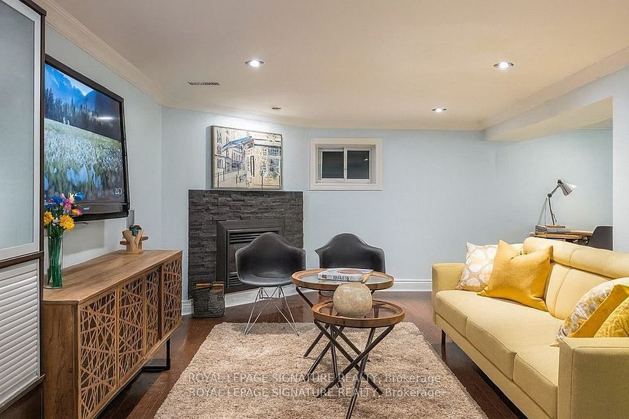 • Bright basement features a wall-mounted TV and walkout to backyard.