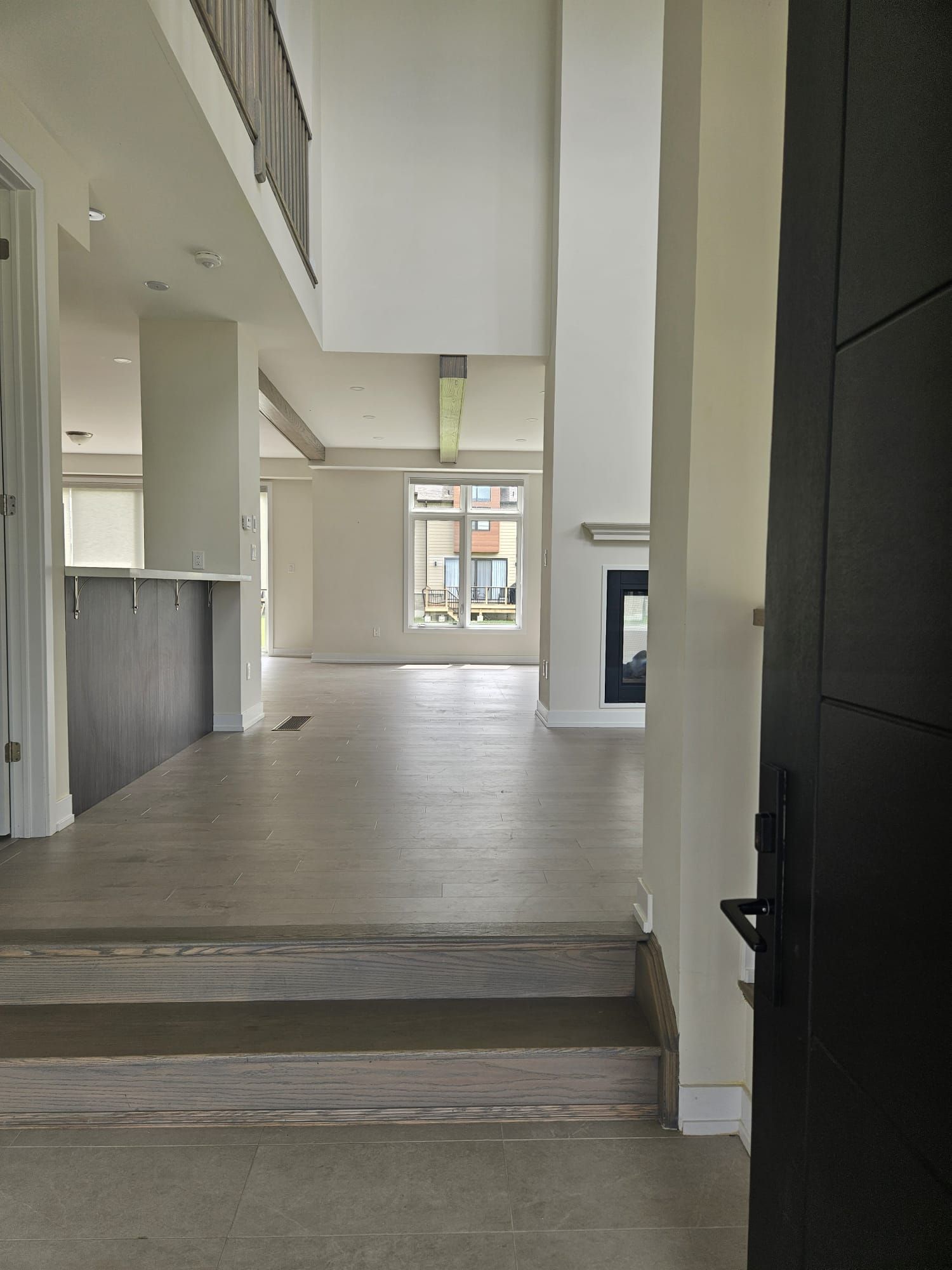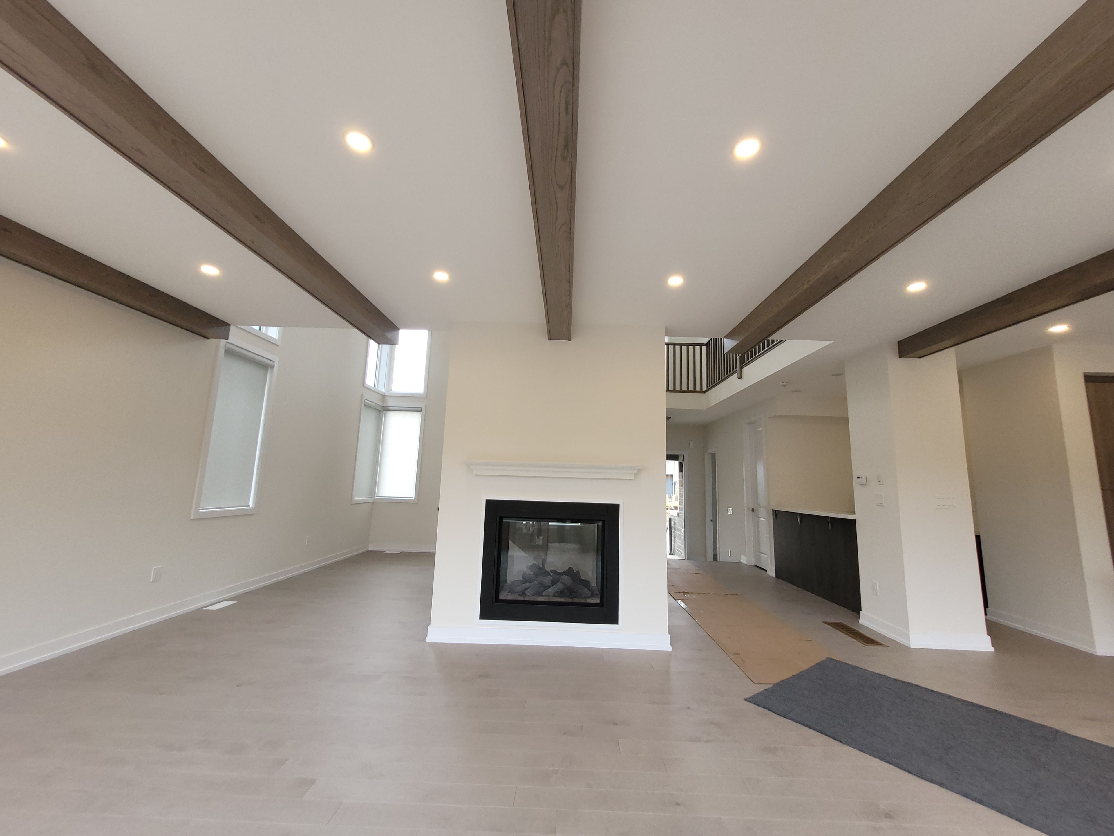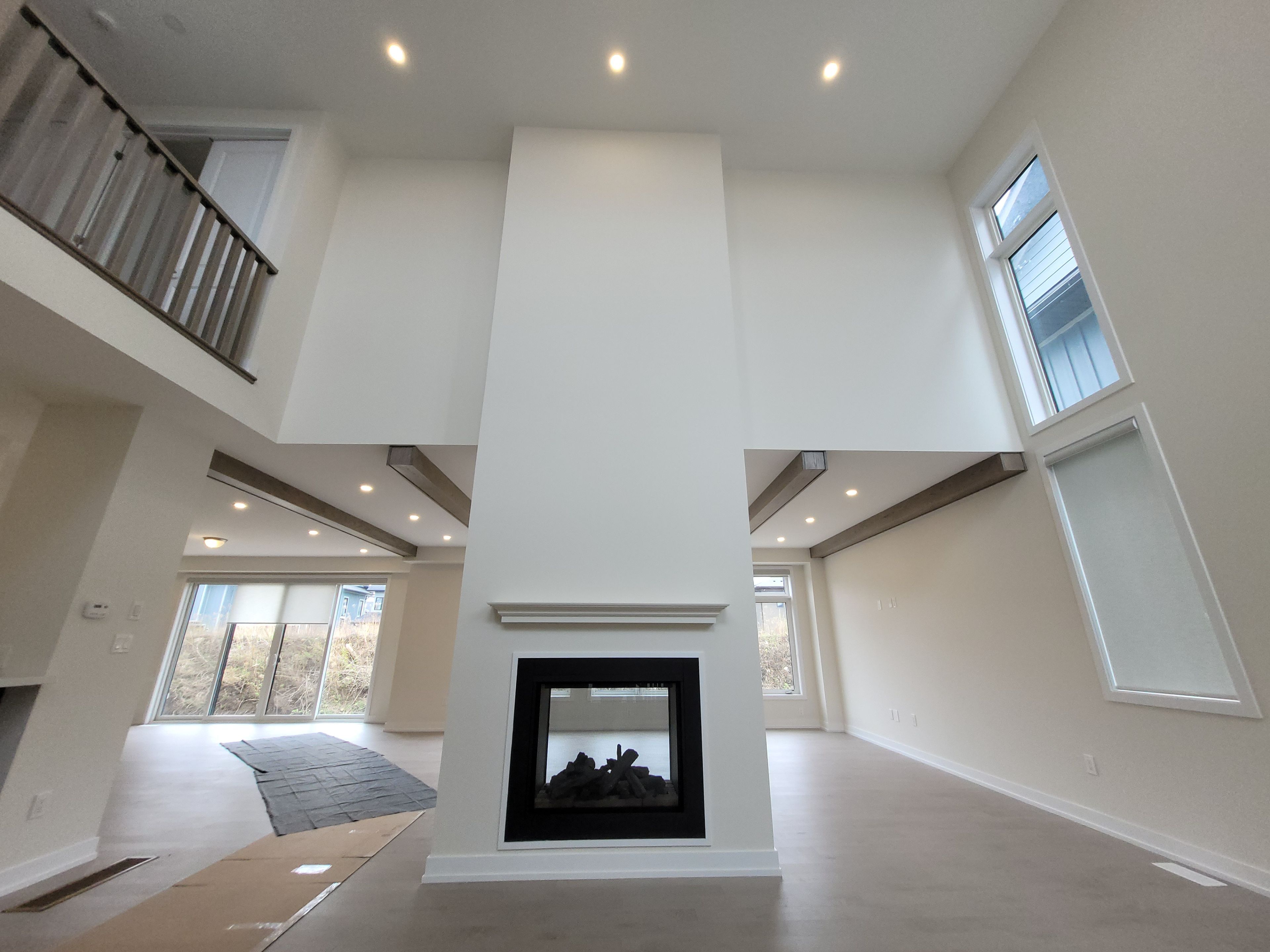 • Open concept living space with impressive ceilings and large windows.