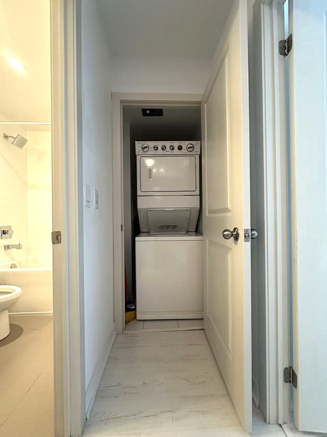 Welcome to this bright and modern one-bedroom unit, ideally situated in the heart of downtown toronto. This well-designed suite features an open-concept layout with floor-to-ceiling windows, filling the space with natural light and offering beautiful city views. The contemporary kitchen is equipped with sleek cabinetry and stainless steel appliances, flowing seamlessly into the living and dining area-perfect for comfortable urban living. The spacious bedroom offers a peaceful retreat with ample closet space, complemented by a well-appointed bathroom and the convenience of in-suite laundry. Located just steps from st. Lawrence market, financial district, king station, union station and multiple ttc streetcar lines, restaurants, cafes, and everyday essentials, this unit offers unbeatable convenience in one of toronto's most vibrant neighborhoods. Ideal for professionals seeking stylish and convenient downtown living. Don't miss this opportunity!