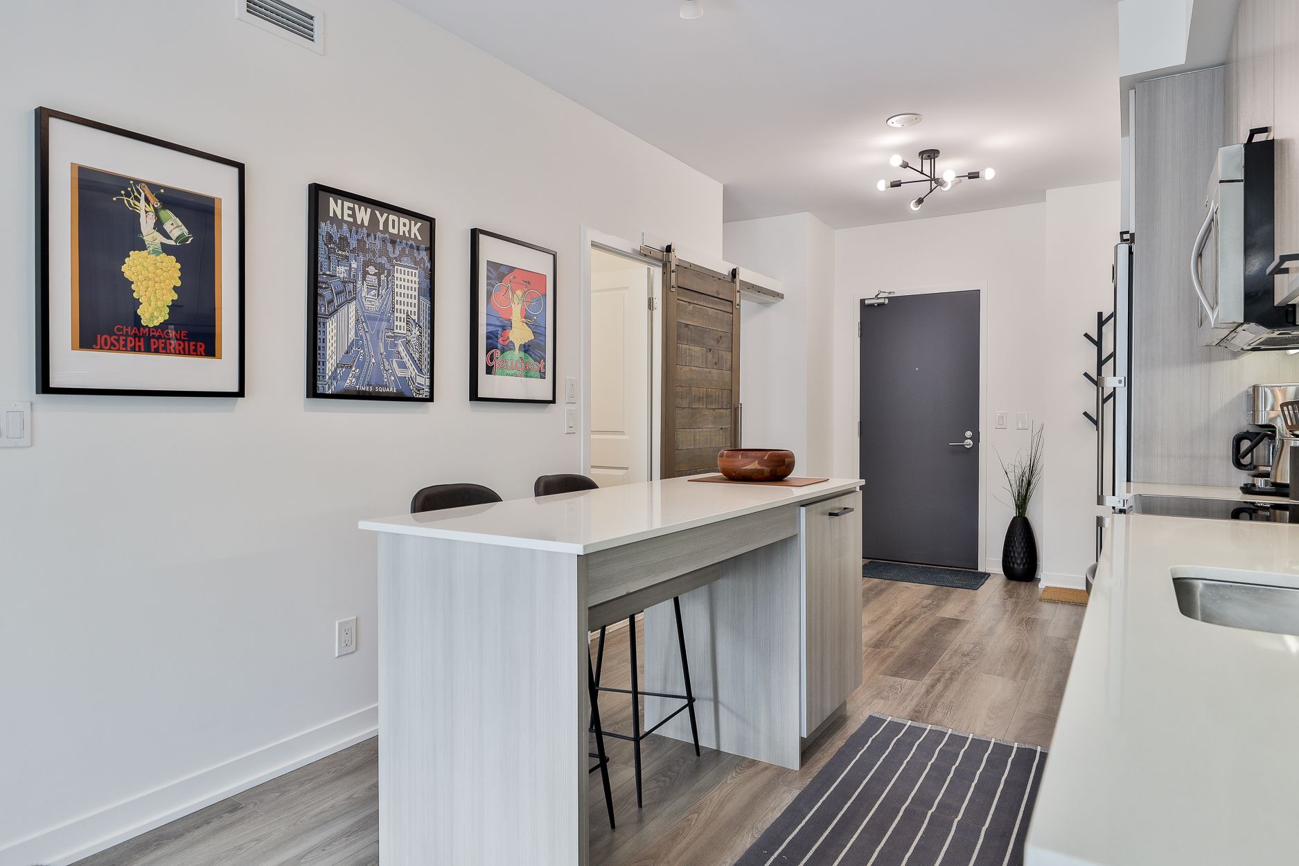 • Well-equipped kitchen featuring quartz counters and stainless steel appliances.