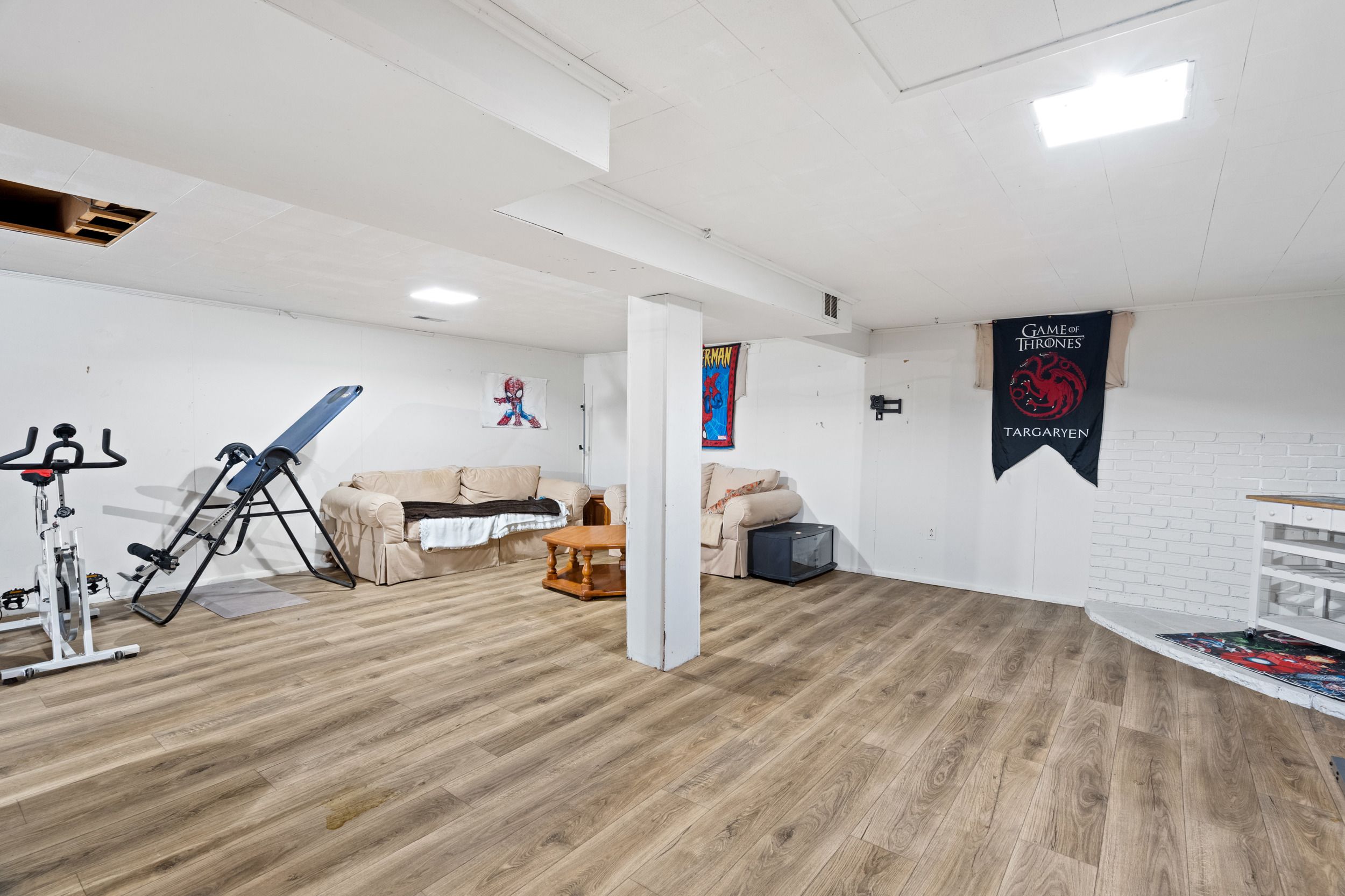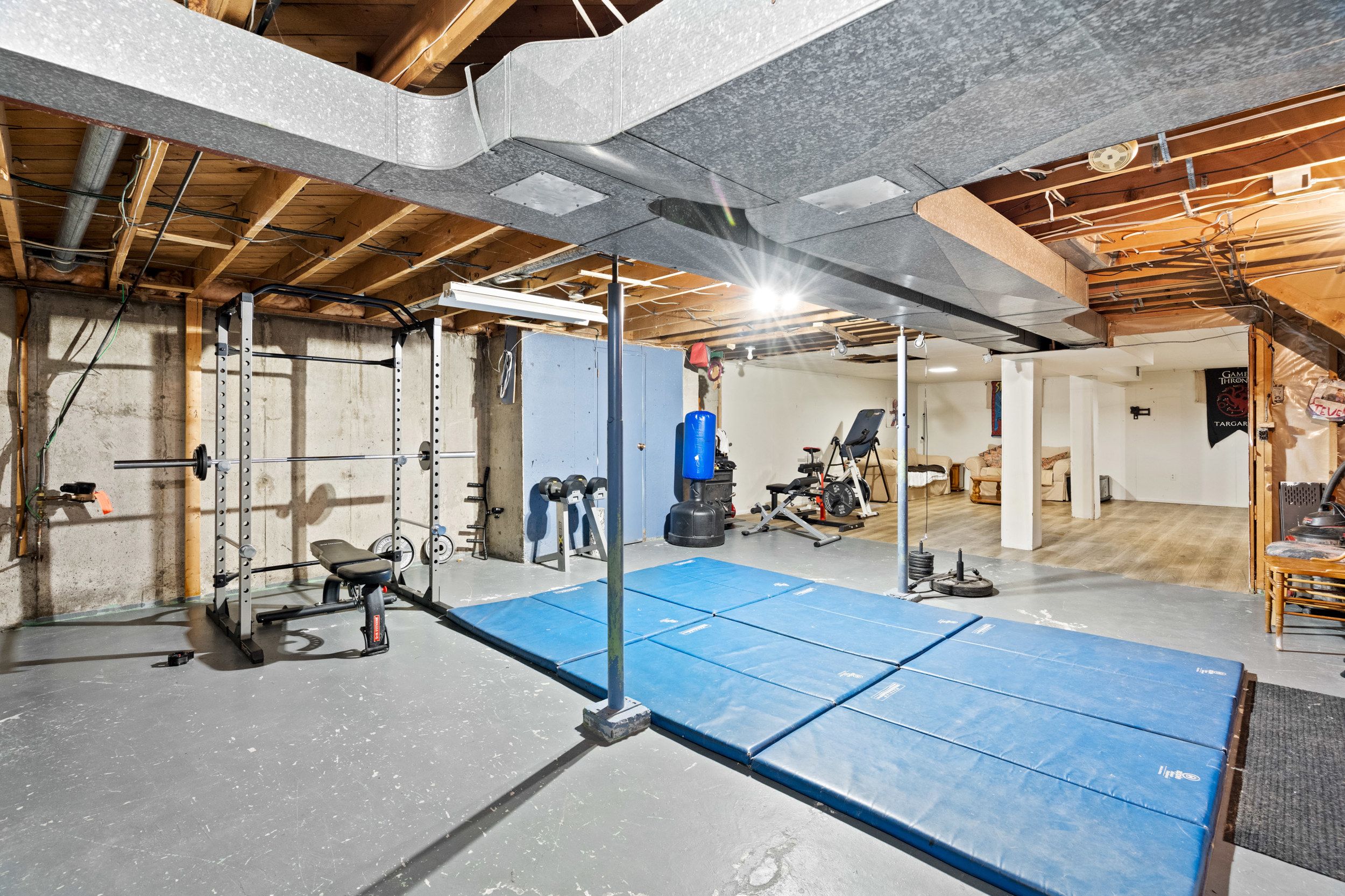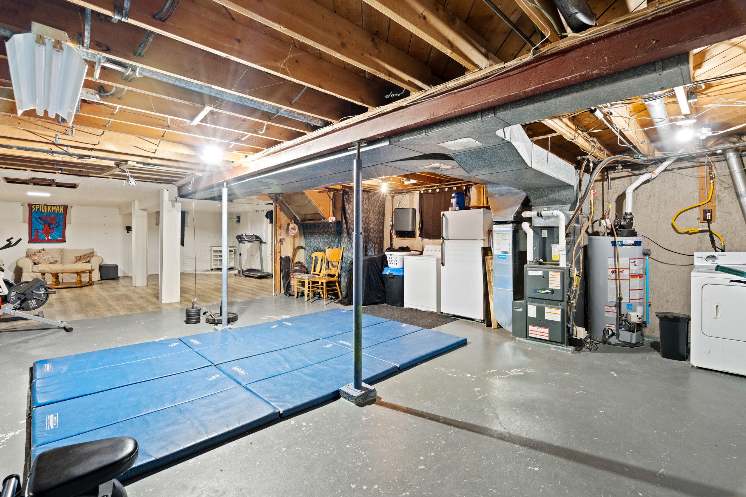 • Partially finished basement provides potential for additional living space.
