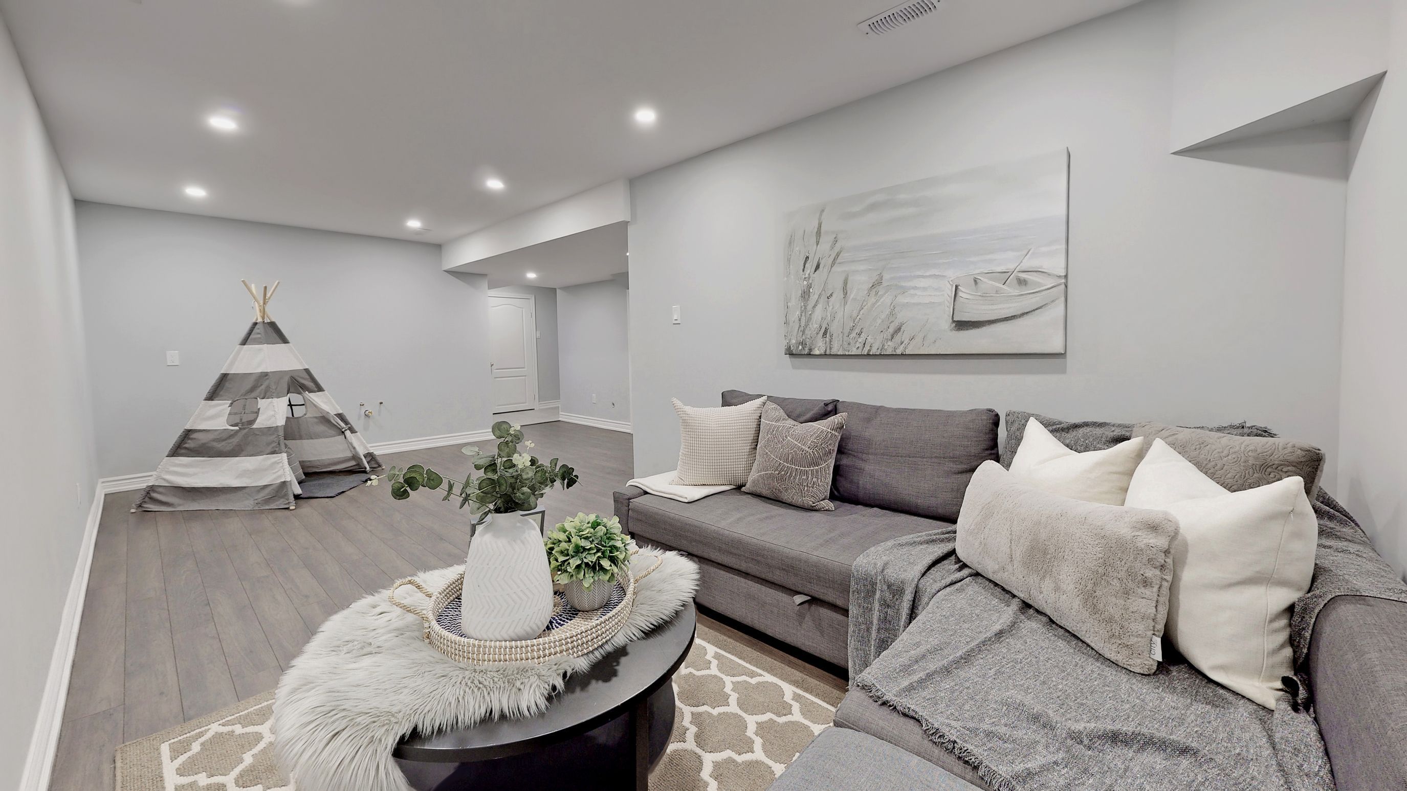• Finished basement and skylight providing extra space and natural light.