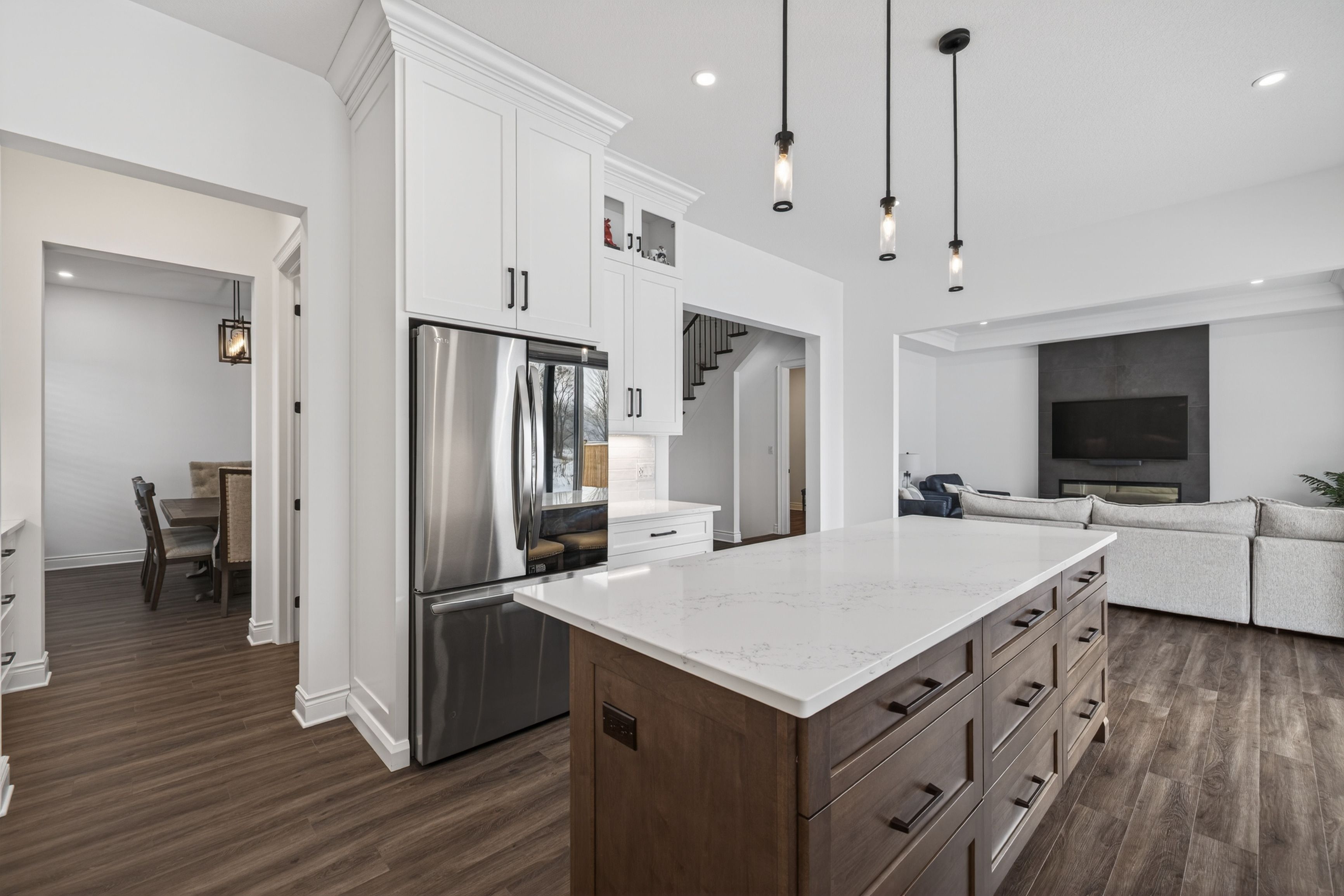 A statement of refined luxury, this impeccably upgraded residence offers an exceptional living experience in one of dorchester's most desirable enclaves. Boasting 6 bedrooms and 4. 5 bathrooms and offering over 4400 sq ft of finished living space. Dramatic ceiling heights with 10' main floor ceilings and 9' second floor ceilings set the tone for elegant, light-filled interiors designed for both everyday comfort and elevated entertaining. The main level unfolds through a welcoming foyer into a private home office, a formal dining space, complemented by an expansive butler's pantry and a truly bespoke chef's kitchen featuring an impressive 8' island, quartz countertops, and striking floor-to-ceiling custom cabinetry. Oversized patio doors lead to a covered rear porch, seamlessly blending indoor and outdoor living, while the great room's fireplace anchors the space with warmth and sophistication. A thoughtfully designed mudroom and stylish powder room complete the main floor. The second level is crowned by a serene primary retreat with a custom walk-in wardrobe and a spa-inspired ensuite boasting a freestanding soaker tub, custom tiled shower, dual vanities, and a private water closet. The second level is further enhanced by four additional bedrooms, including a private suite with its own ensuite and walk-in closet, while two bedrooms share an elegantly designed jack and jill bathroom. A spacious laundry room completes this level, offering both practicality and refined design. The fully finished lower level with external walk-up access offers outstanding versatility, featuring a large recreation room, kitchen with washer/dryer, bedroom, bathroom and generous storage-perfect for a private in-law suite or potential separate basement rental suite. Ideally positioned just minutes to highway 401 and london, this extraordinary home delivers luxury, functionality, and lifestyle in perfect harmony, too many upgrades to list, this home is a must see.