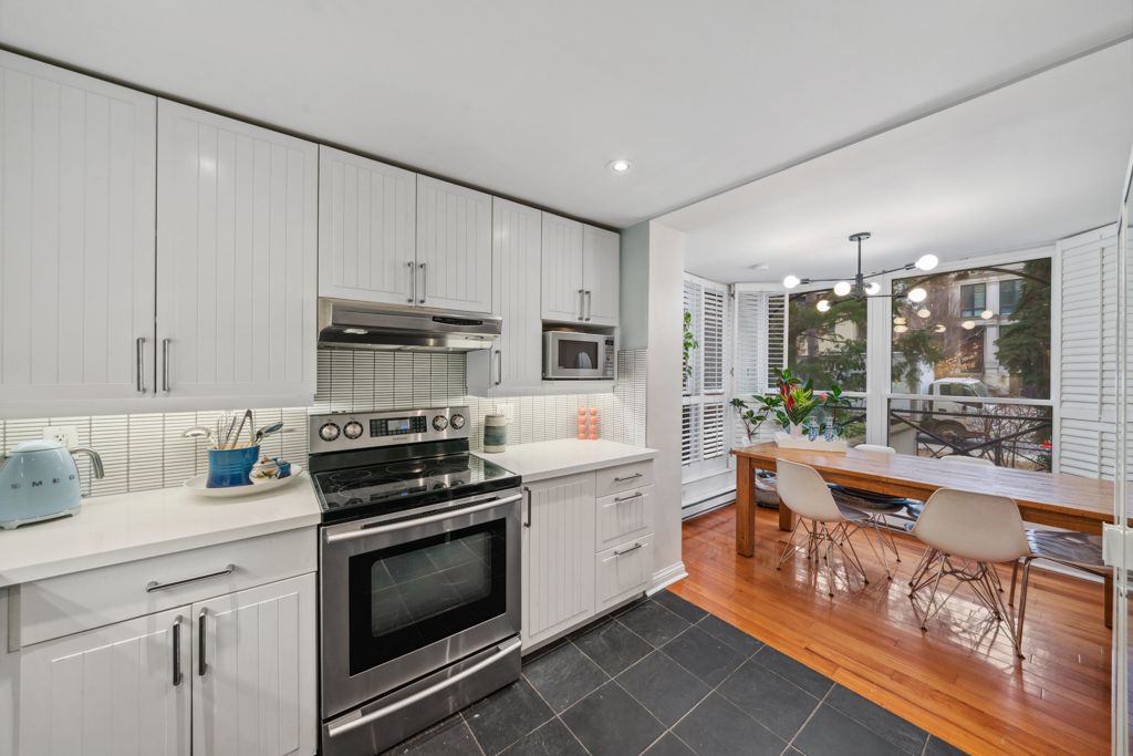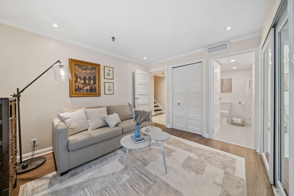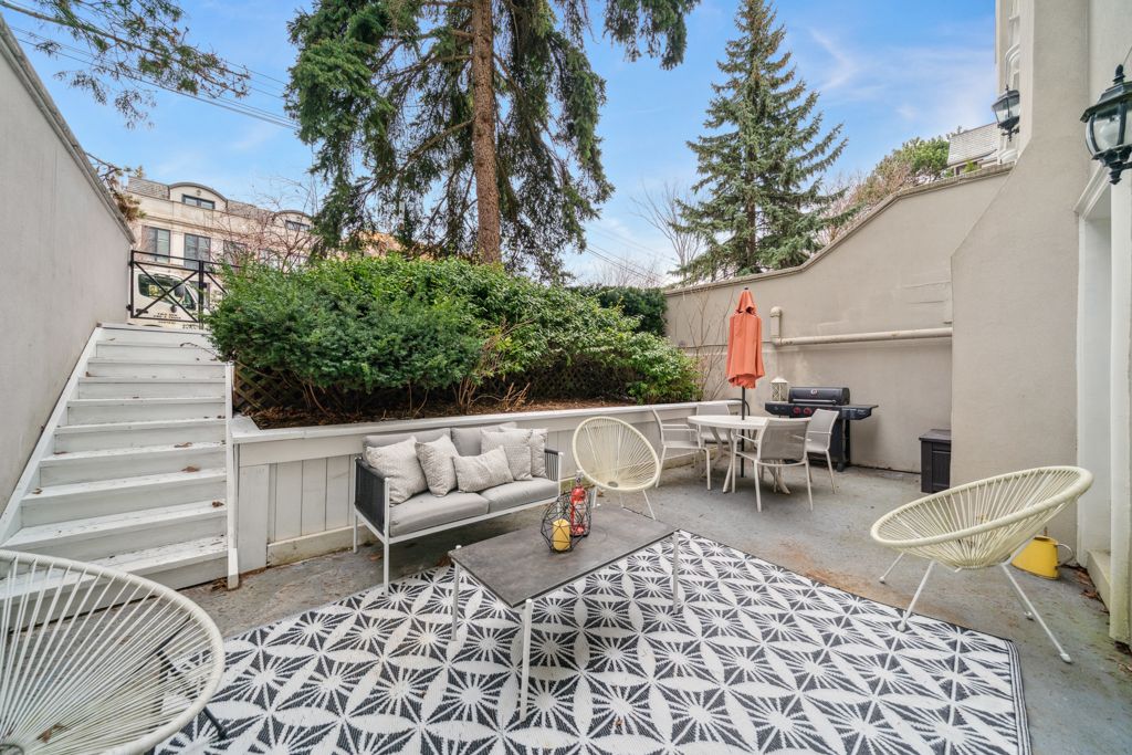 Elegance at deer park! Welcome to 105 heath st w, an exclusive boutique condo designed by joe brennan, offering just 11 unique units on a sprawling 0. 4-acre lot in the prestigious yonge st. Clair neighborhood. This building seamlessly combines peaceful living with urban convenience; the lushly landscaped communal garden & the wide, stately concrete stairs leading to a private entrance set the tone for its timeless architecture. Ideal for smart-sizers or those seeking understated luxury, this townhome style, 2-story suite spans 1,125 sqft, with an additional 625 sqft (280 sqft usable area) private patio, featuring a walk up & gated entry to the street, ideal for indoor outdoor living. Inside, the inviting living space features a wood fireplace, hardwood floors, a den nook, and a sunlit dining area. The spacious kitchen comes with full-size s/s appliances, brand-new quartz countertops, & tasteful backsplash tiles. An updated 4pc bathroom completes the main level. On the lower level, two spacious bedrooms provide flexibility and comfort. One fits a king bed, has a deep closet, and offers a second entrance. The other, currently a tv/family room, has a walkout to the patio and includes ample storage, laundry closet, and a fully renovated ensuite with a double-sink vanity. Additional interior features include california shutters, pot lights, and smooth ceilings throughout, as well as newly installed patio door & windows. Relax or entertain on the private patio, bbq, dine al fresco, or unwind in the fenced in garden. On colder days, light a fire and settle into the warmth. Do not miss this sophisticated pied-a terre or alternative to cookie cutter condos. Book a viewing & experience the difference! Located just minutes from the yonge-st. Clair subway station, this prime address is steps from boutique shops, charming cafes, top-rated restaurants, & esteemed schools. This unit comes with one (1) parking spot & two (2) lockers, plus access to three (3) visitor parking spots.