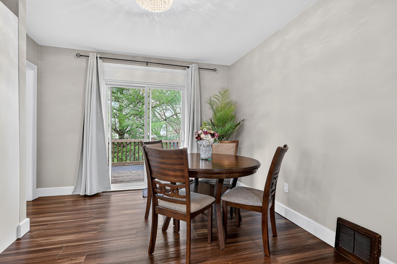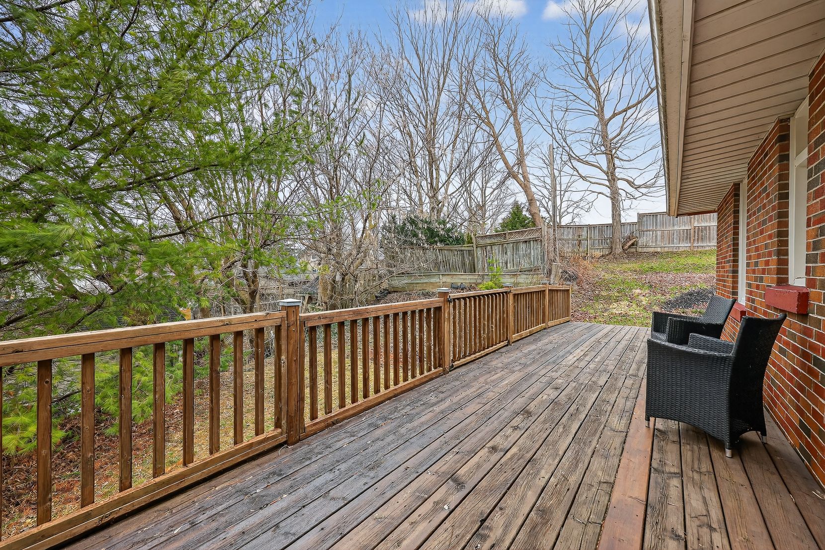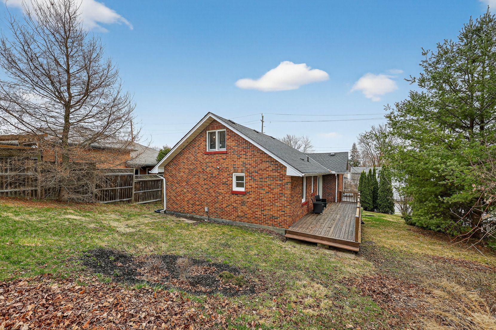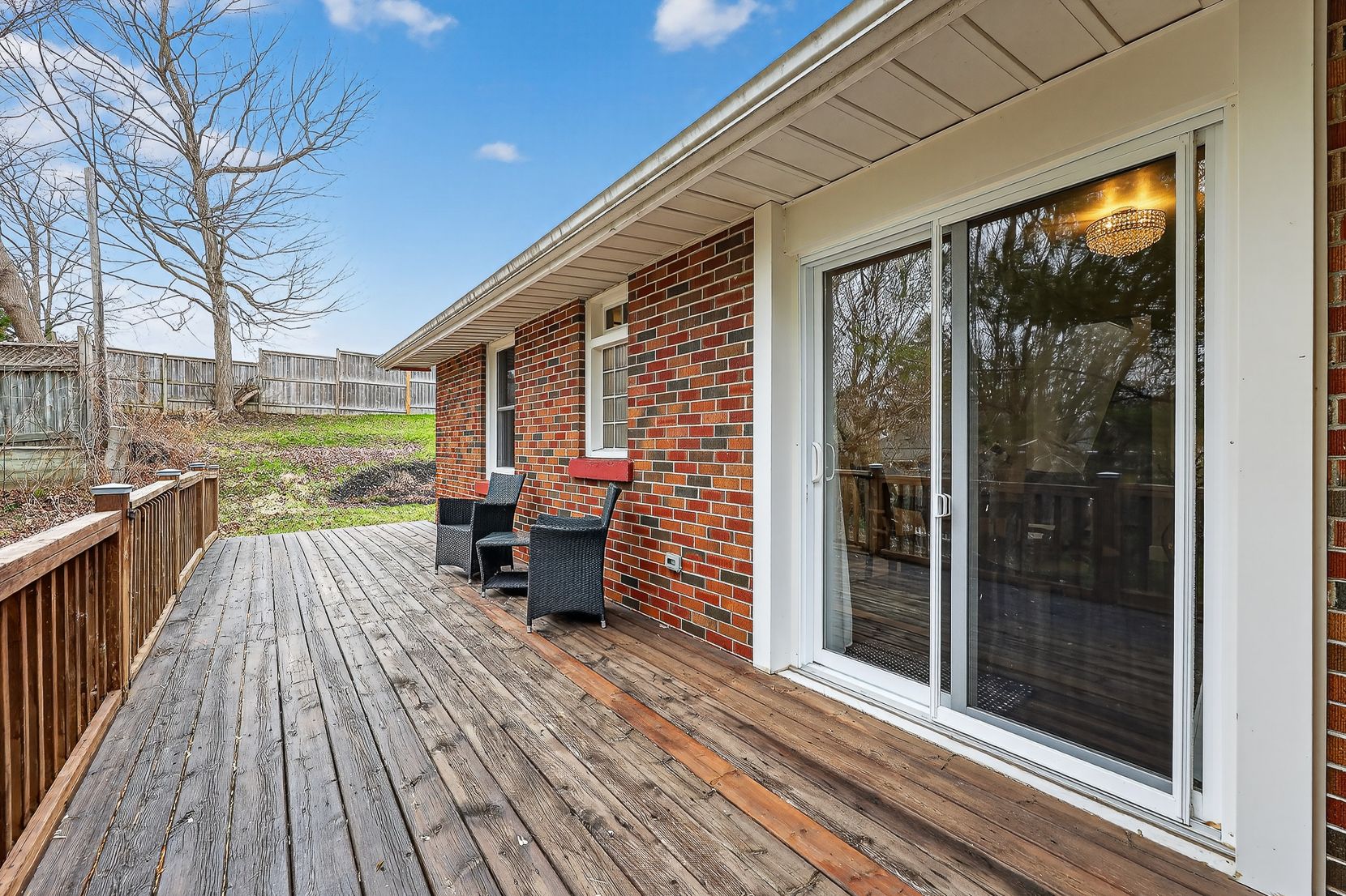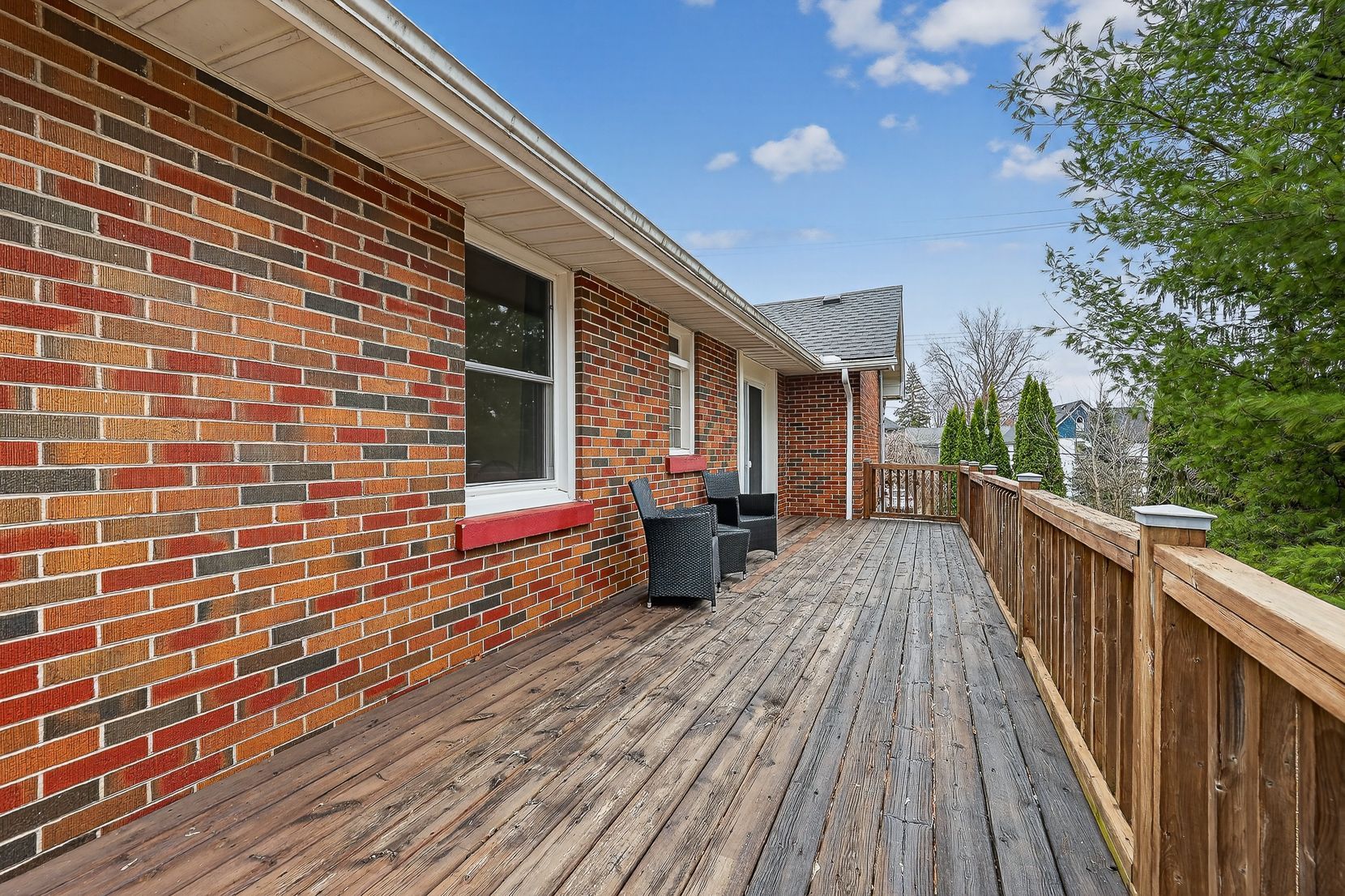 • Elevated deck overlooking a spacious, extra-wide lot for outdoor enjoyment.