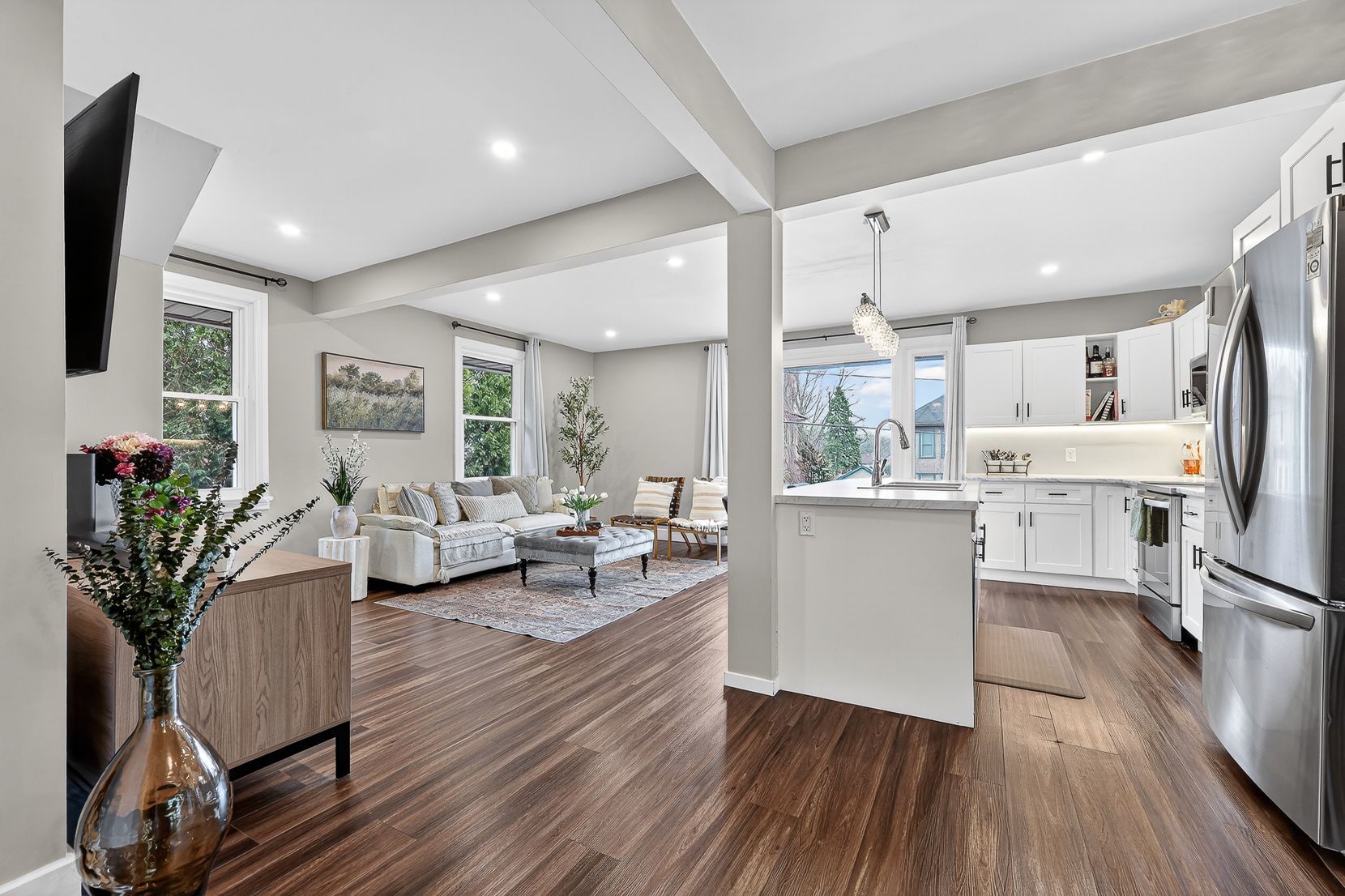 • Bright open main living area with seamless kitchen, dining, and great room layout.
