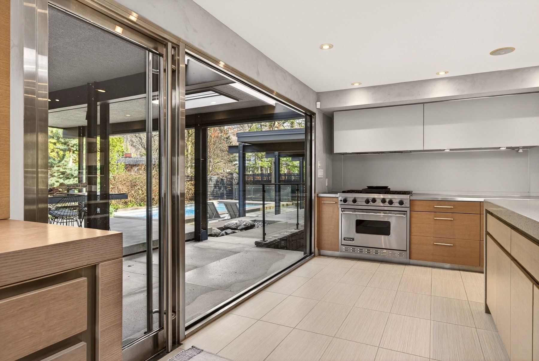 • Private backyard oasis with a pool, hot tub, and outdoor BBQ kitchen.