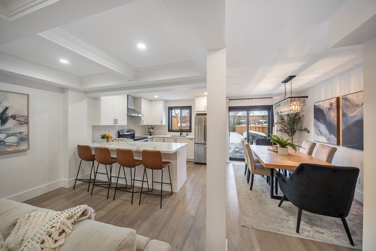 Welcome to 105 mccurdy drive, a fully renovated freehold townhome in the charming community of tottenham offering the perfect blend of modern luxury and small-town charm. This stunning home features 3 spacious bedrooms and 4 bathrooms, sleek engineered hardwood flooring throughout the main and upper levels, and an open-concept main floor ideal for entertaining. The upgraded kitchen showcases quartz countertops, stainless steel appliances, and stylish modern finishes. The finished basement extends your living space with durable vinyl flooring and a wet bar, perfect for relaxing or hosting guests. Step outside to enjoy a private fenced yard, offering the perfect spot to unwind or entertain outdoors. Ideally located in a peaceful yet central community, this home provides an escape from the hustle and bustle of the city while keeping commuter routes, schools, parks, and amenities just minutes away!