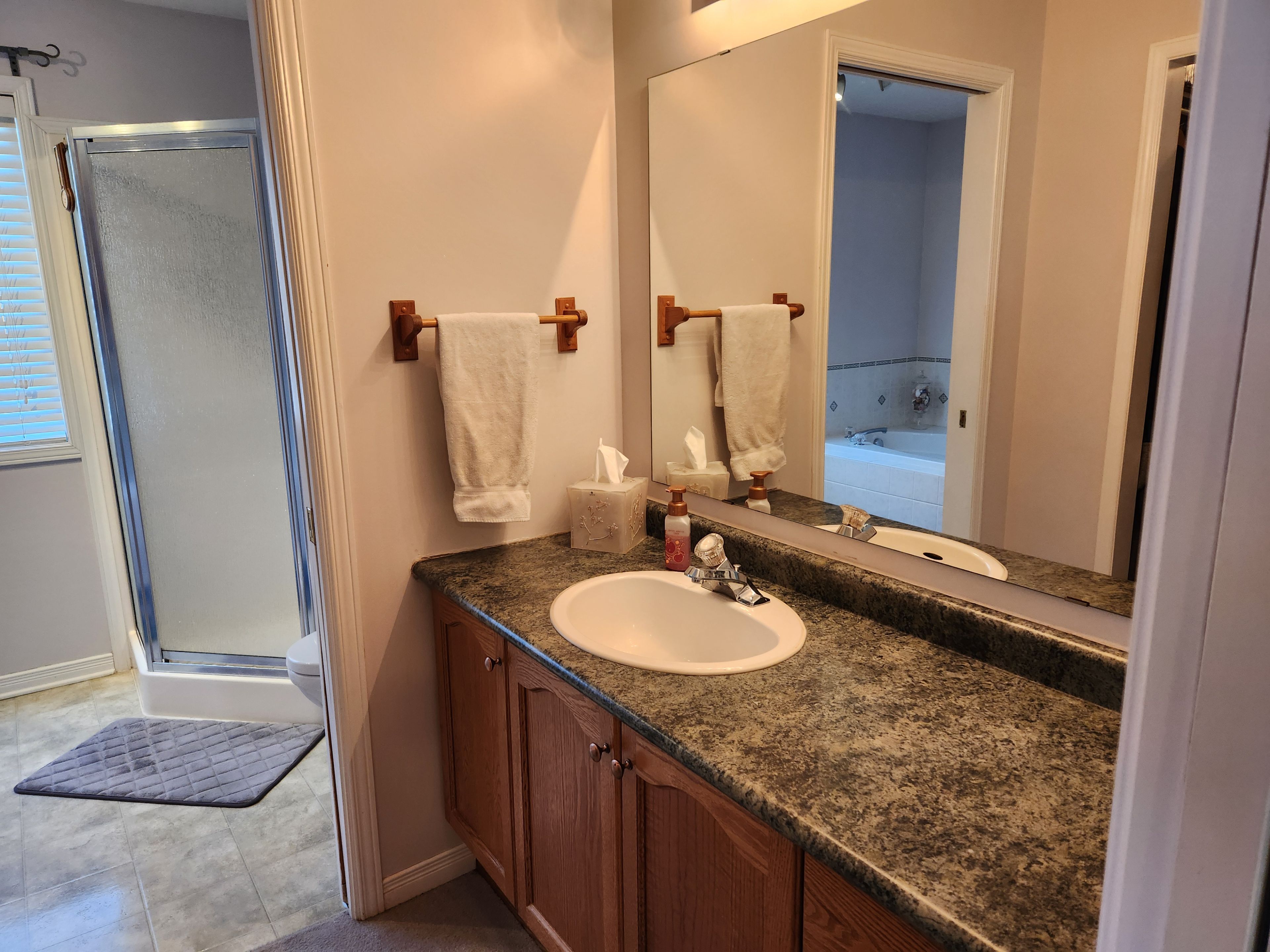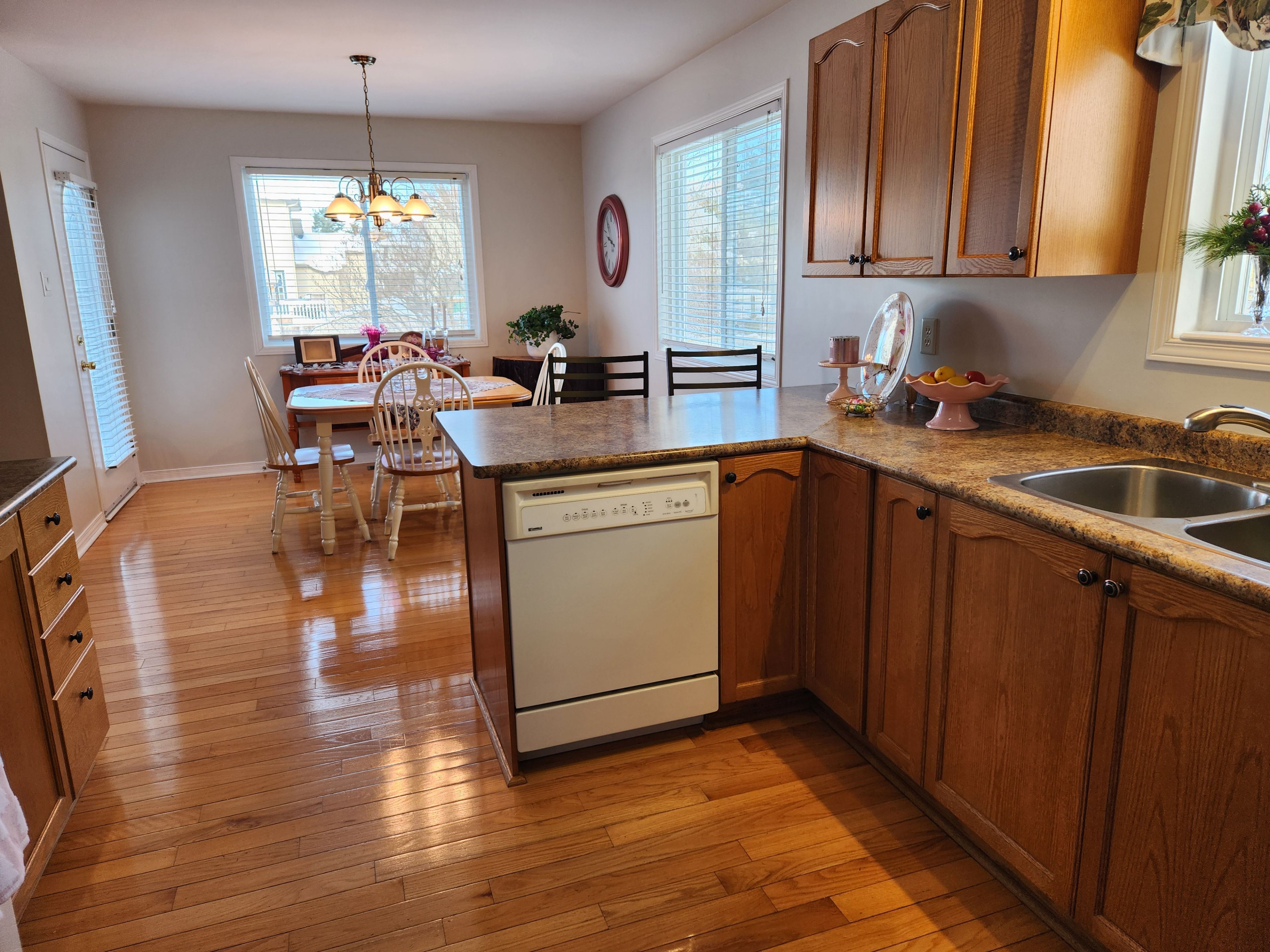 Spotless bungalow with gleaming hardwood floors in a family friendly neighborhood. This corner lot has a fenced in backyard and private rear deck. The open-concept dinigroom/kitchen with a french door out to the rear yard and access to a main floor laundry room and double attached garage. The primary bedroom has a 4 pce. Ensuite bath with a soaker tub and walk-in closet. There is also a 4pce bath on the main level. There is a double access staircase to a recreation room with a gas fireplace. The basement also features a storage room,3rd bedroom , full bathroom and exercise room or office or 4th bedroom. The rear yard has a 2 level deck and small pond,the roof and ac have both been replaced in the last 8 years. A great family home in a good neighborhood
