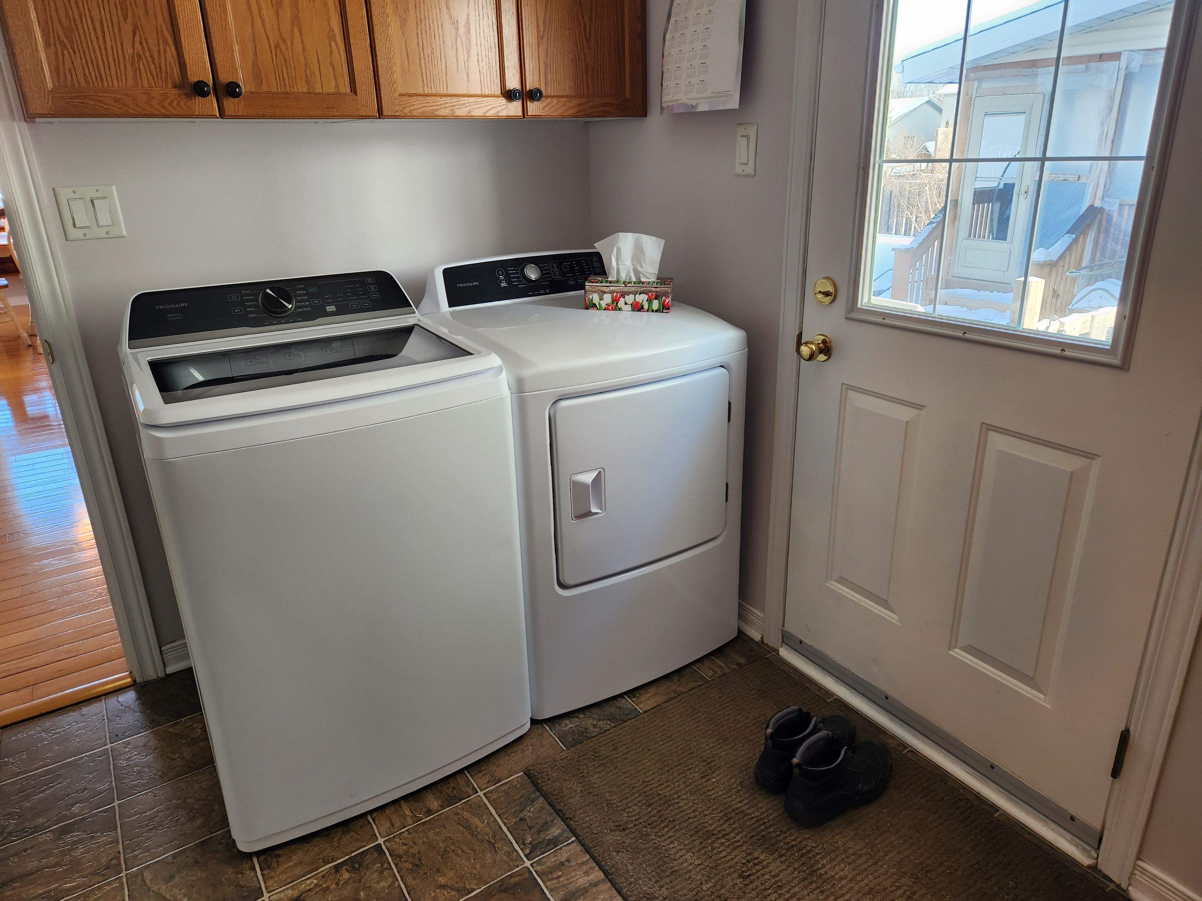 • Finished basement offers a recreation room, bedroom, and exercise space.