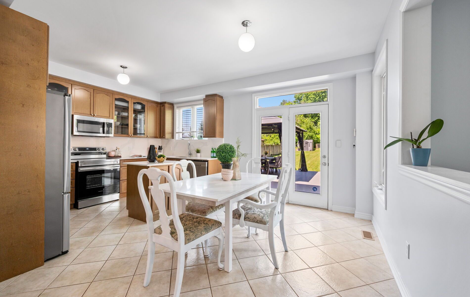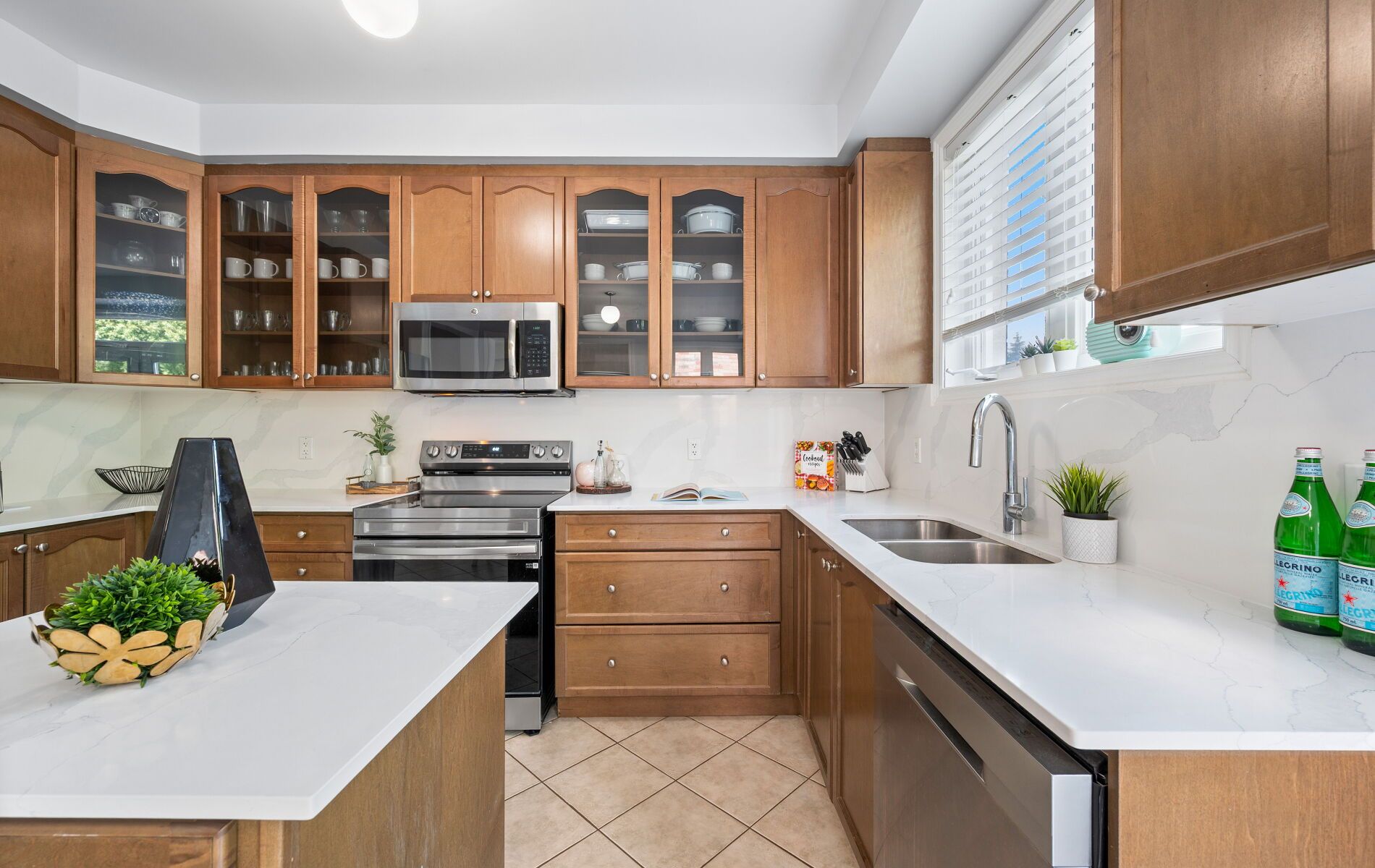 • Bright eat-in kitchen with quartz countertops and access to the backyard.