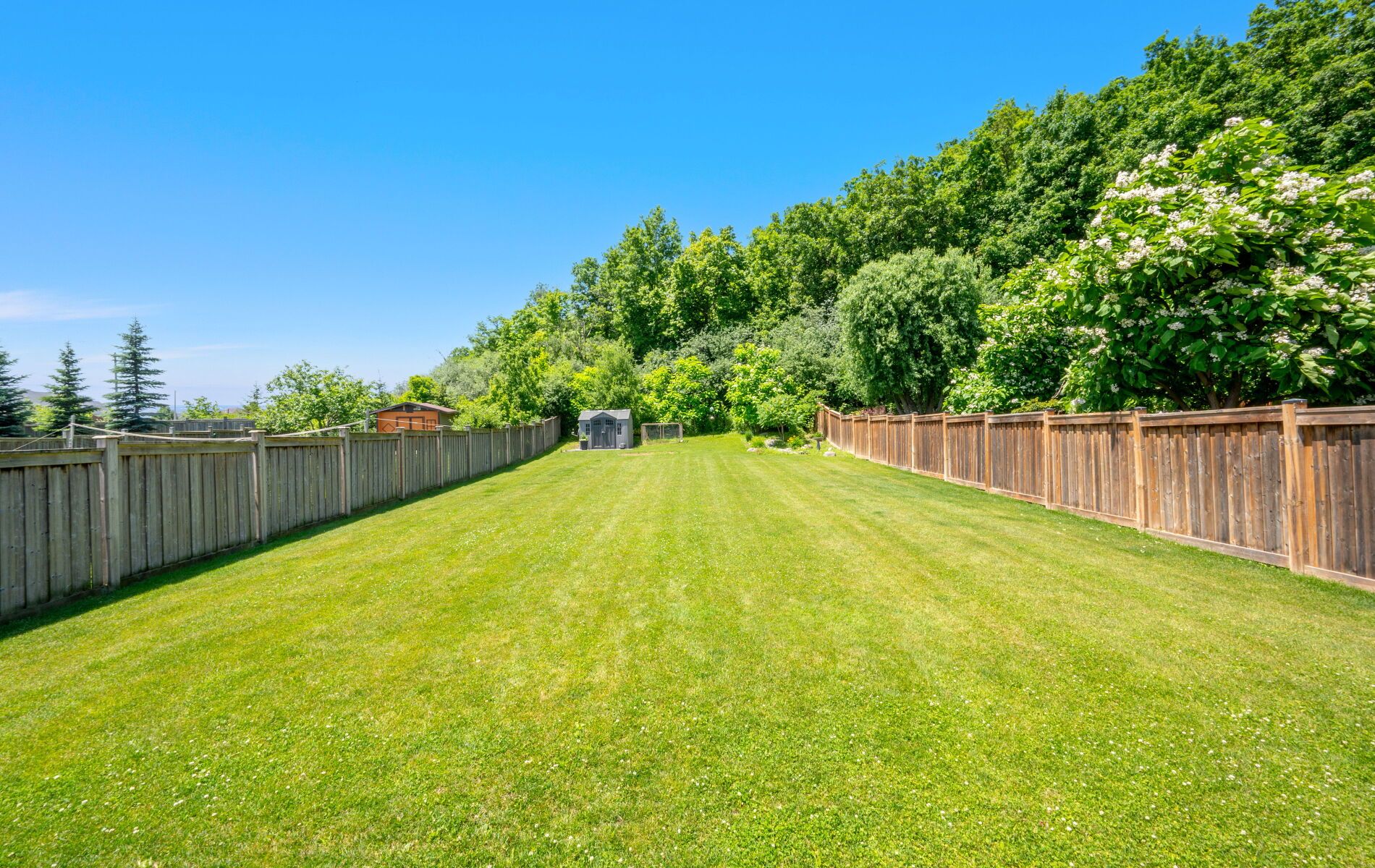 • Private backyard oasis with a composite deck and serene seating areas.