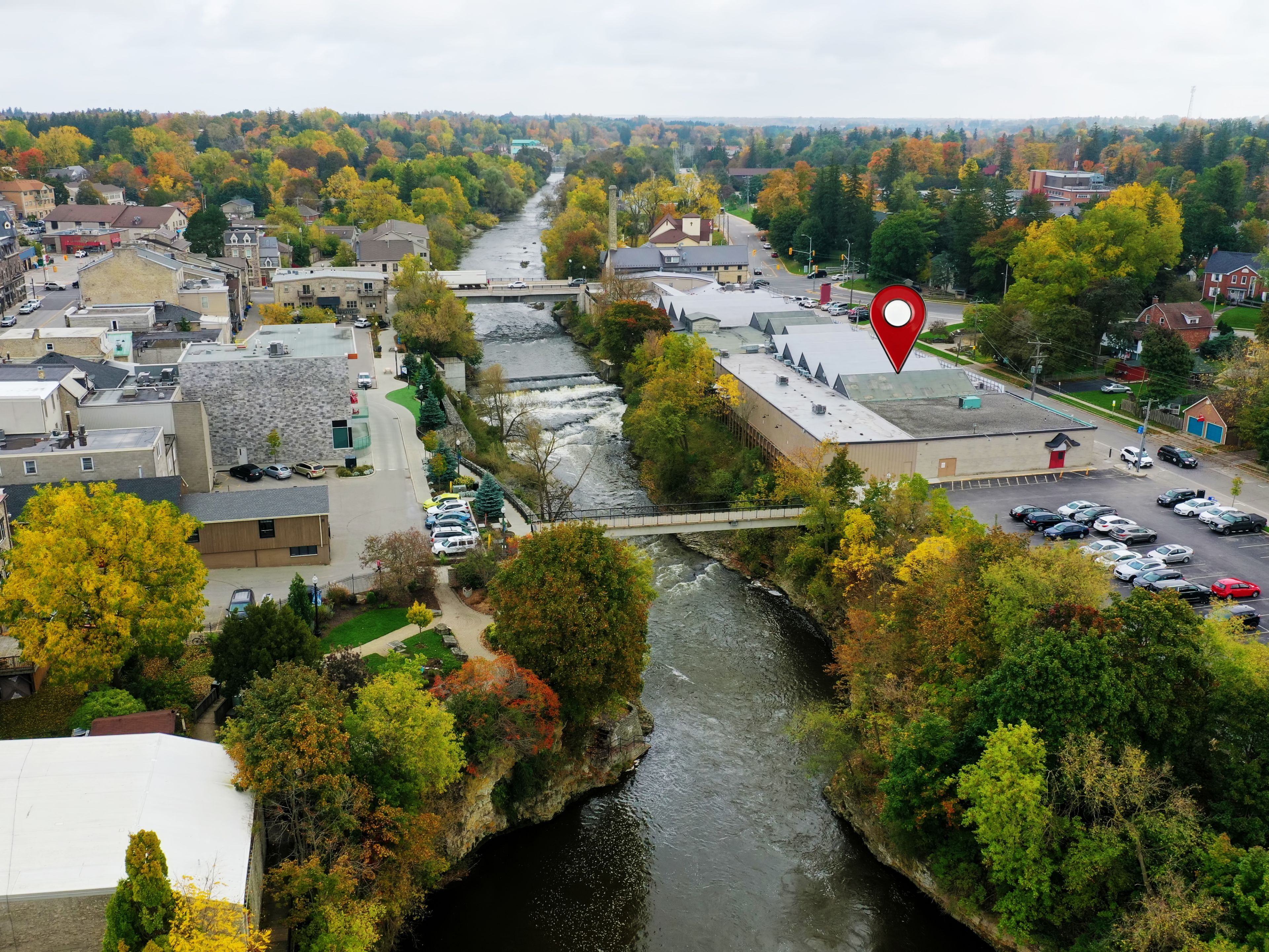 Excellent sublease opportunity in the heart of downtown fergus! This bright and inviting commercial condominium is located within the highly desirable fergus marketplace-home to a variety of unique local shops. Situated in the iconic former beatty brothers building along the beautiful grand river, this space benefits from strong foot traffic, excellent visibility, and ample on-site parking. The unit features soaring cathedral ceilings, skylights that fill the space with natural light, and an accessible bathroom, making it ideal for a wide range of business uses. The character of the historic stone-clad building, combined with modern updates, creates a warm and professional environment for both clients and staff. Perfect for entrepreneurs or established businesses looking to expand into a vibrant and growing community. Enjoy the convenience of a central location within walking distance to shops, restaurants, and services. A rare opportunity to secure a premium commercial space in one of fergus's most recognized buildings.