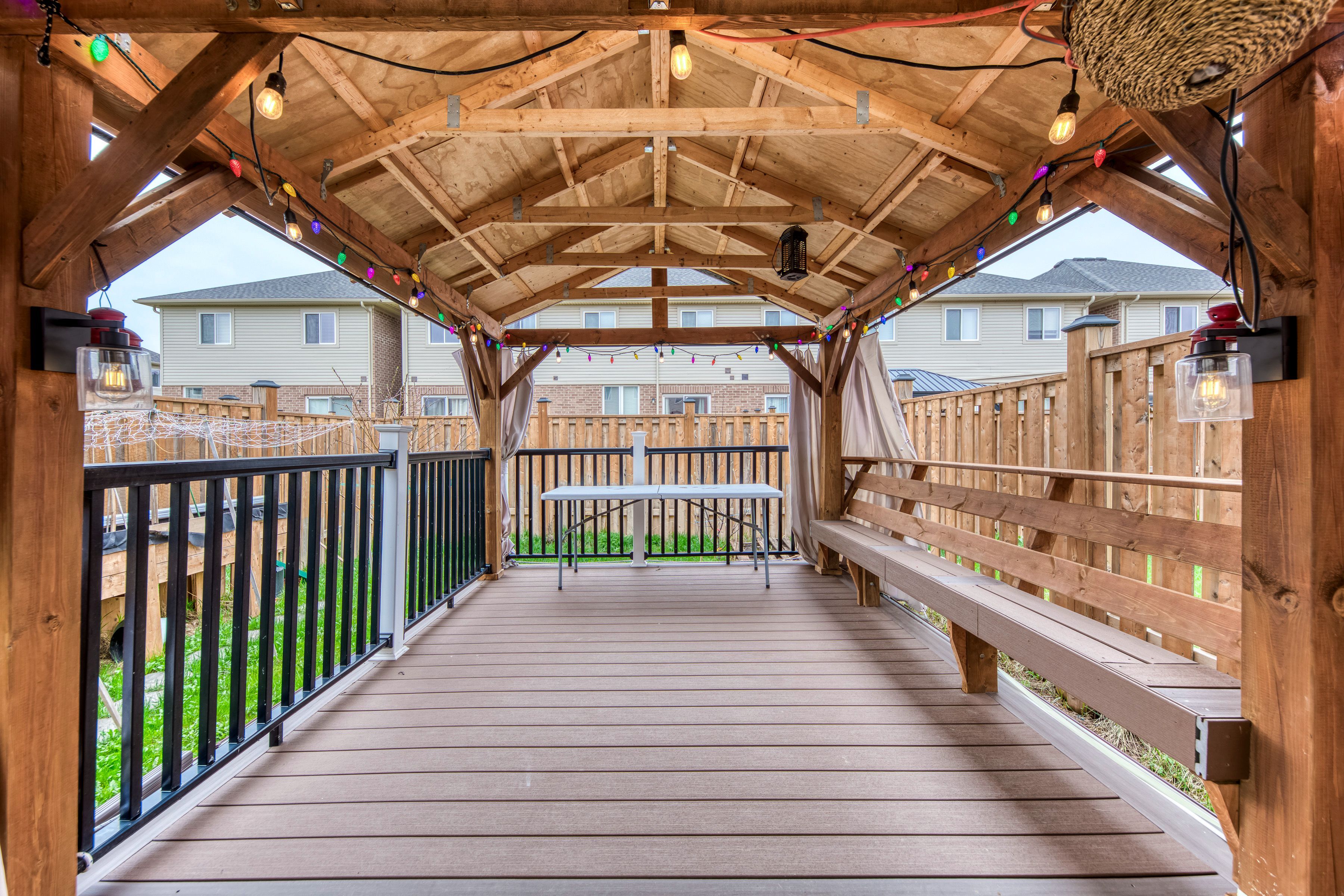 • Backyard deck and gazebo create a perfect space for entertaining.