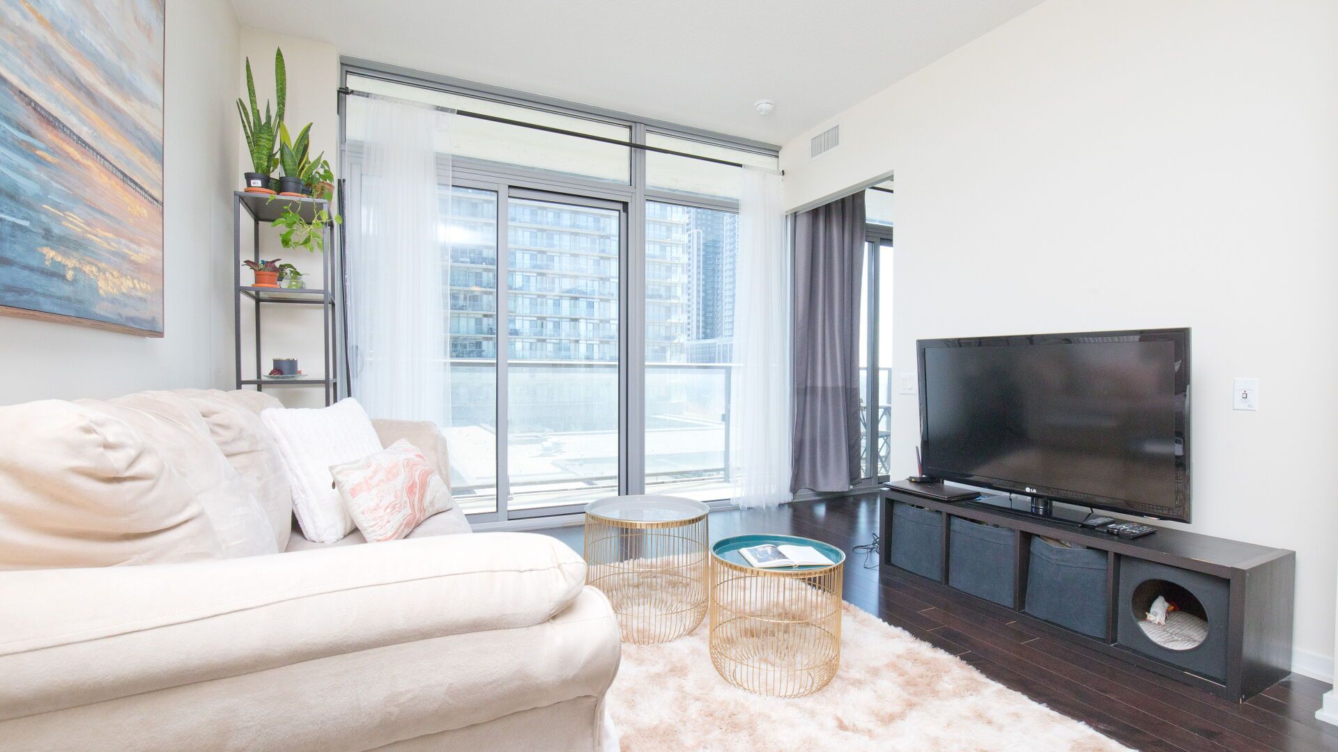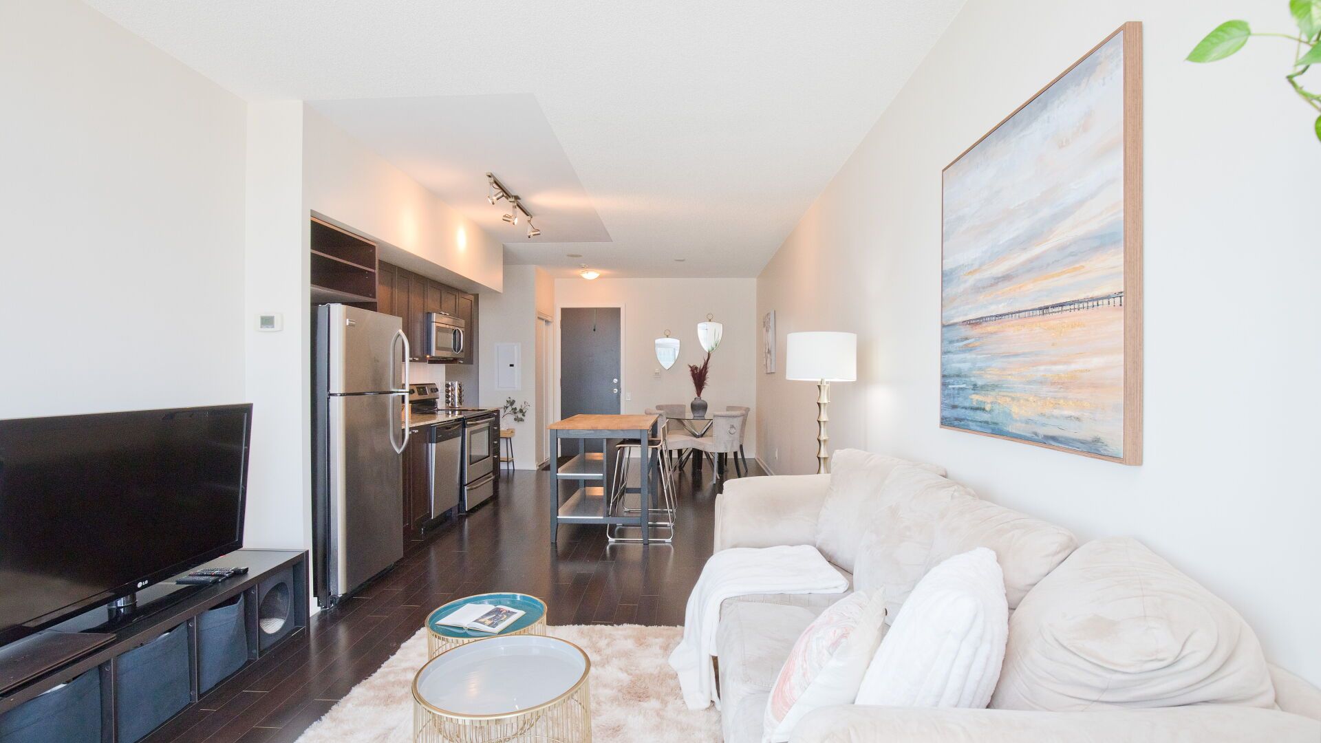 • Modern 1 bed + den with high-end finishes and hardwood floors.