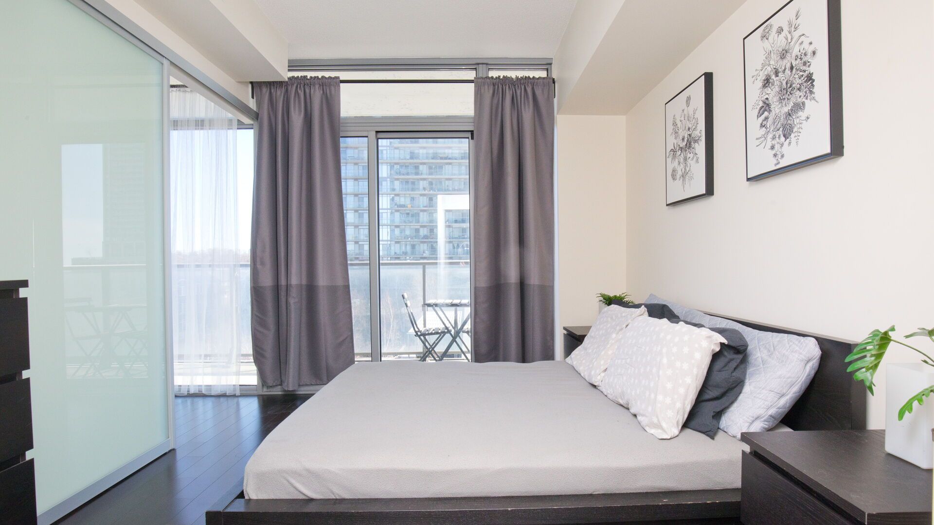 Modern & spacious luxury 1 bed + den nestled in one of the toronto's most coveted area of swan sea. Large contemporary open concept floor plan/high end finishes, hardwood floor, bright floor -ceiling windows and much more. Den can be used as second bedroom/office. Excellent layout in great location direct lake view from balcony, steps to lake ontario, gardiner express way, high park , close to bloor village, hospital , top schools in neighborhood, shopping plaza and plaza with grocery store , shoppers world, pet value, nail salon, lakeshore waterfront trails and beach, highway 427, steps to ttc and many mor. Residents enjoy easy access to downtown toronto and there is a day-care in the building. **extras** amenities included, concierge , indoor/outdoor swimming pool, gym, tennis court, day-care, ttc @ building entrance, min to qew and downtown to!!