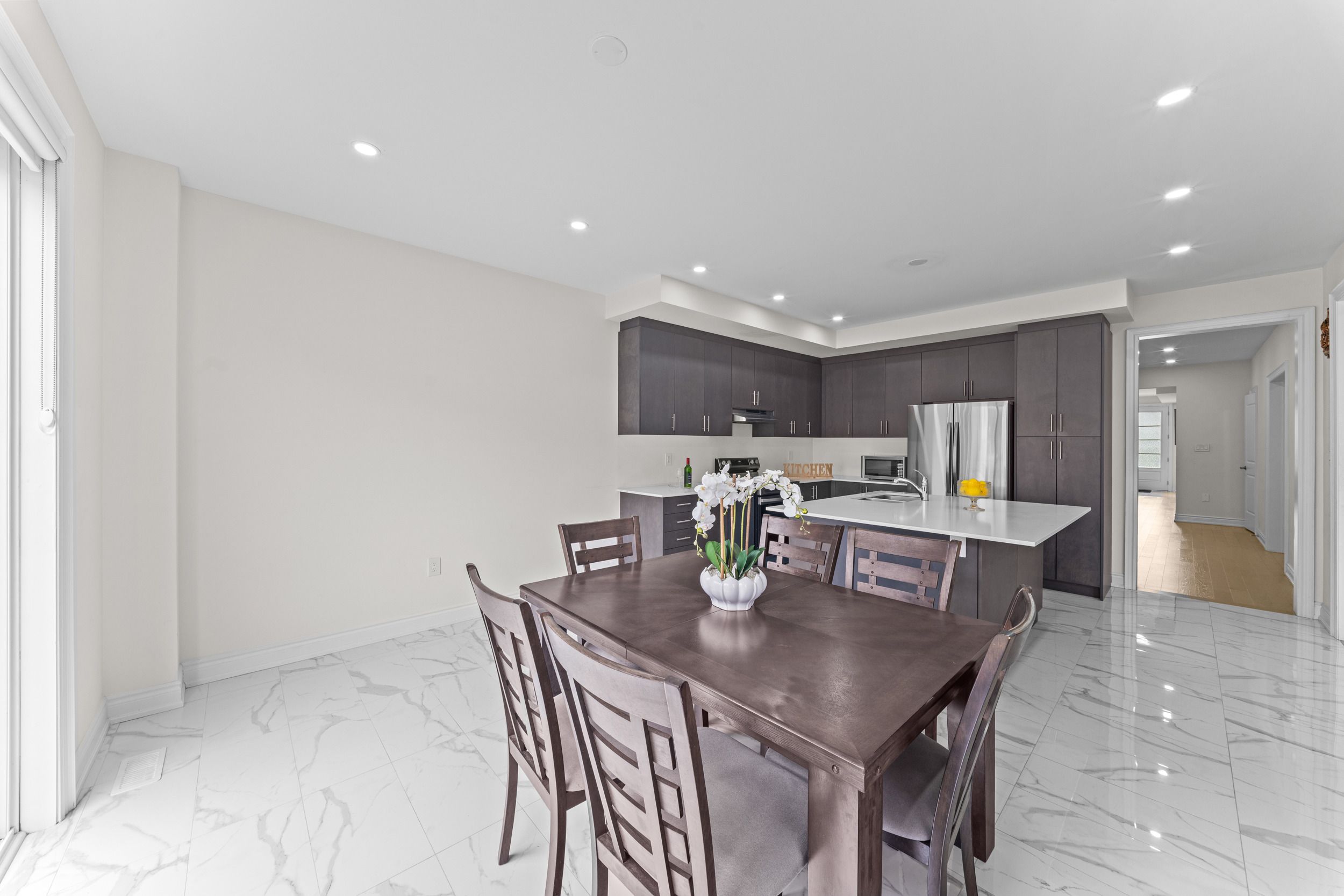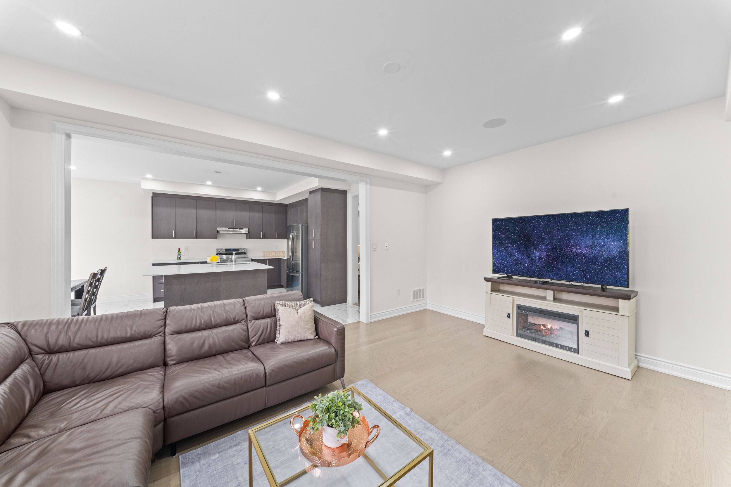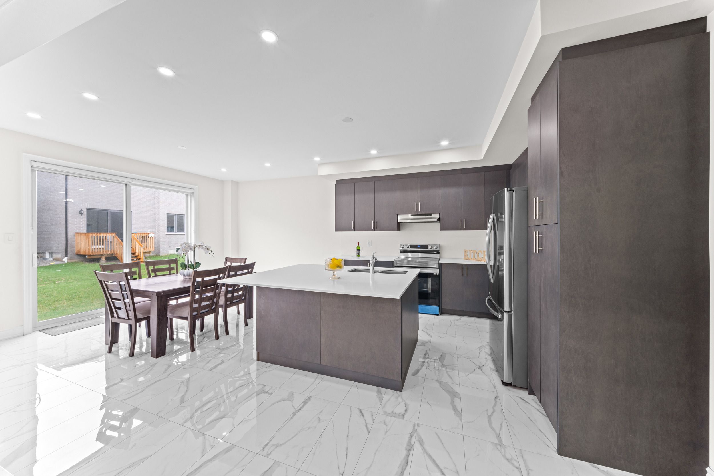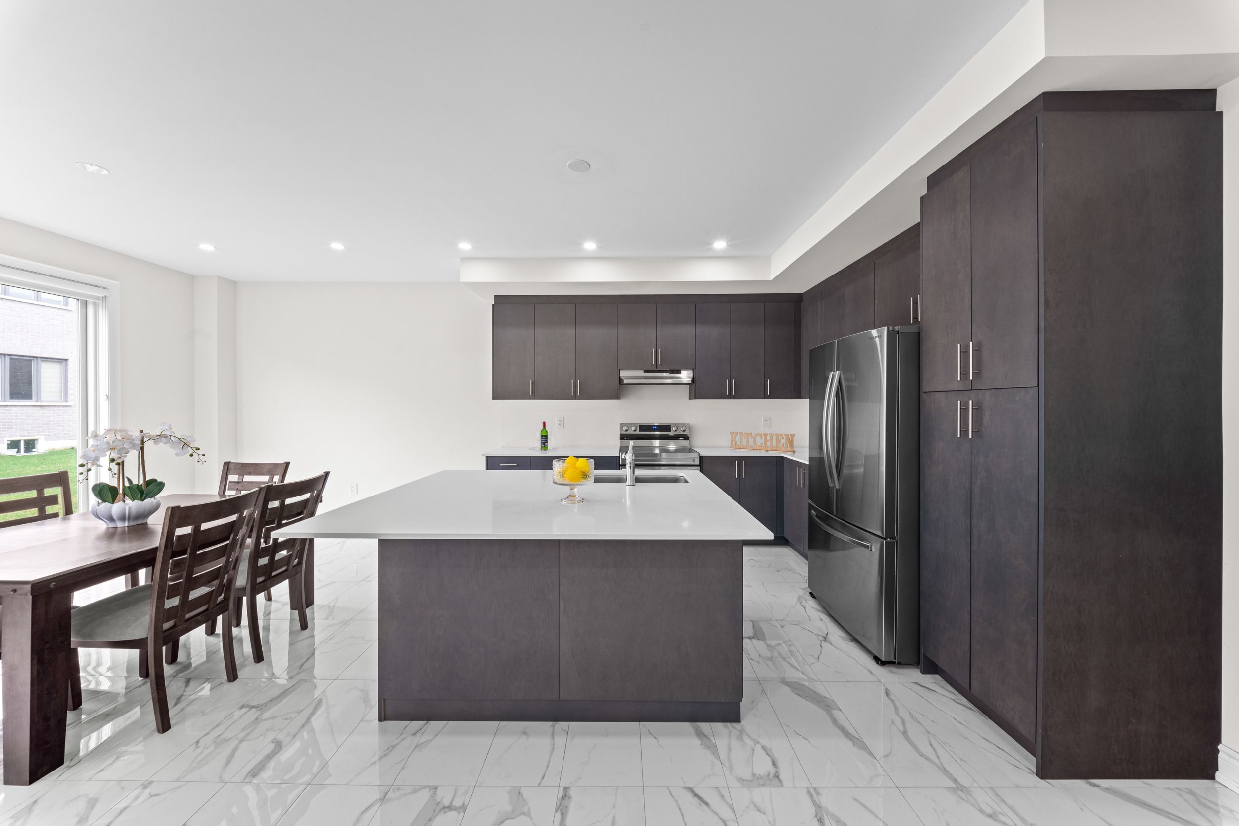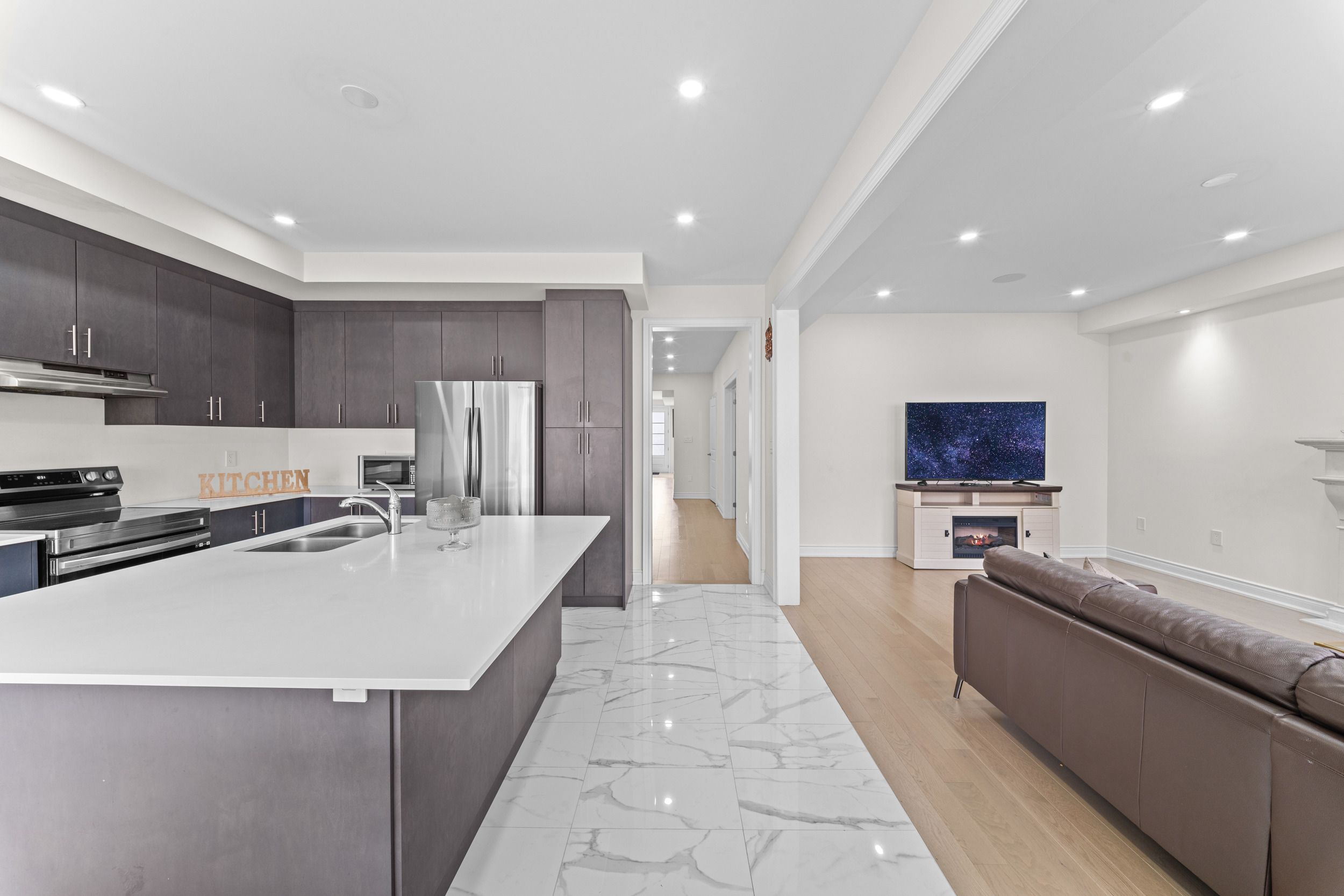 • Gourmet kitchen equipped with quartz countertops and stainless steel appliances.