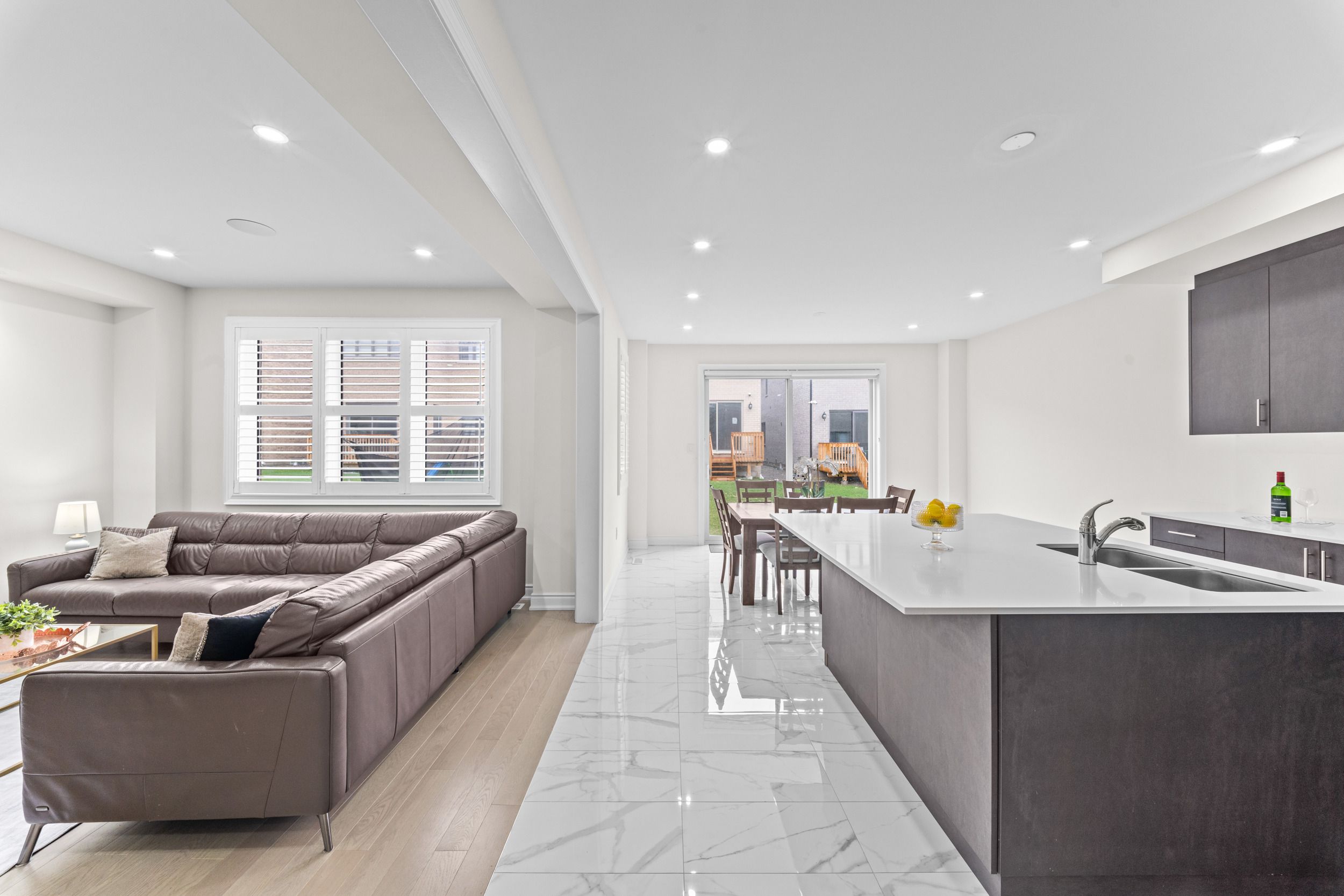 • Bright main level includes separate living, dining, and family rooms.