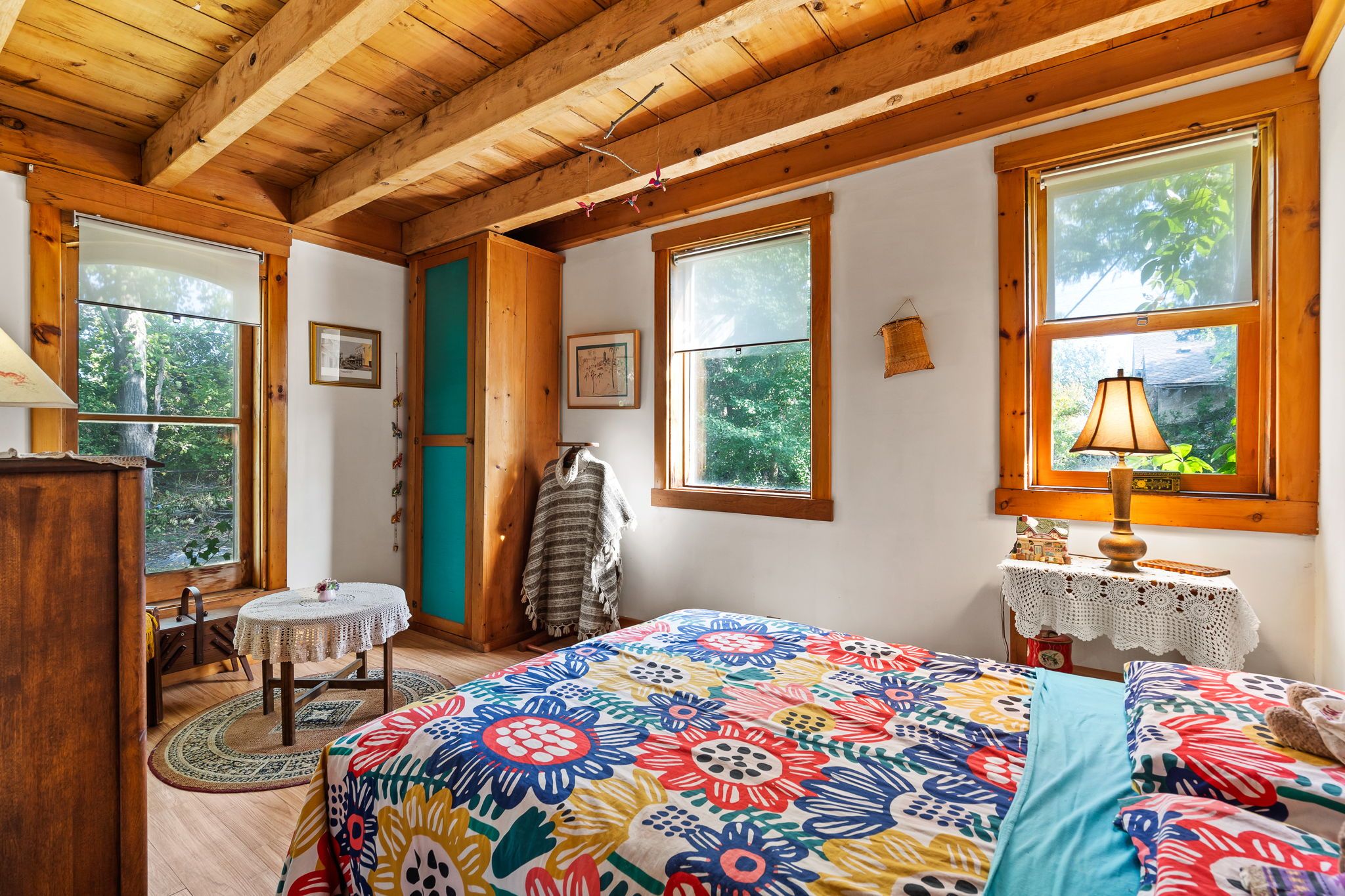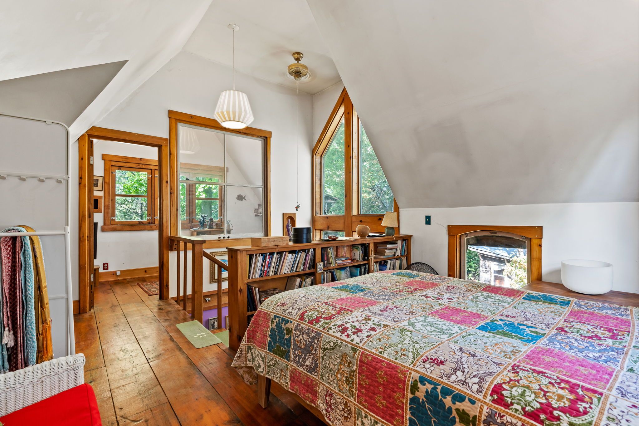 • Stunning upper bedroom with vaulted ceilings and a glassed walk-in closet.