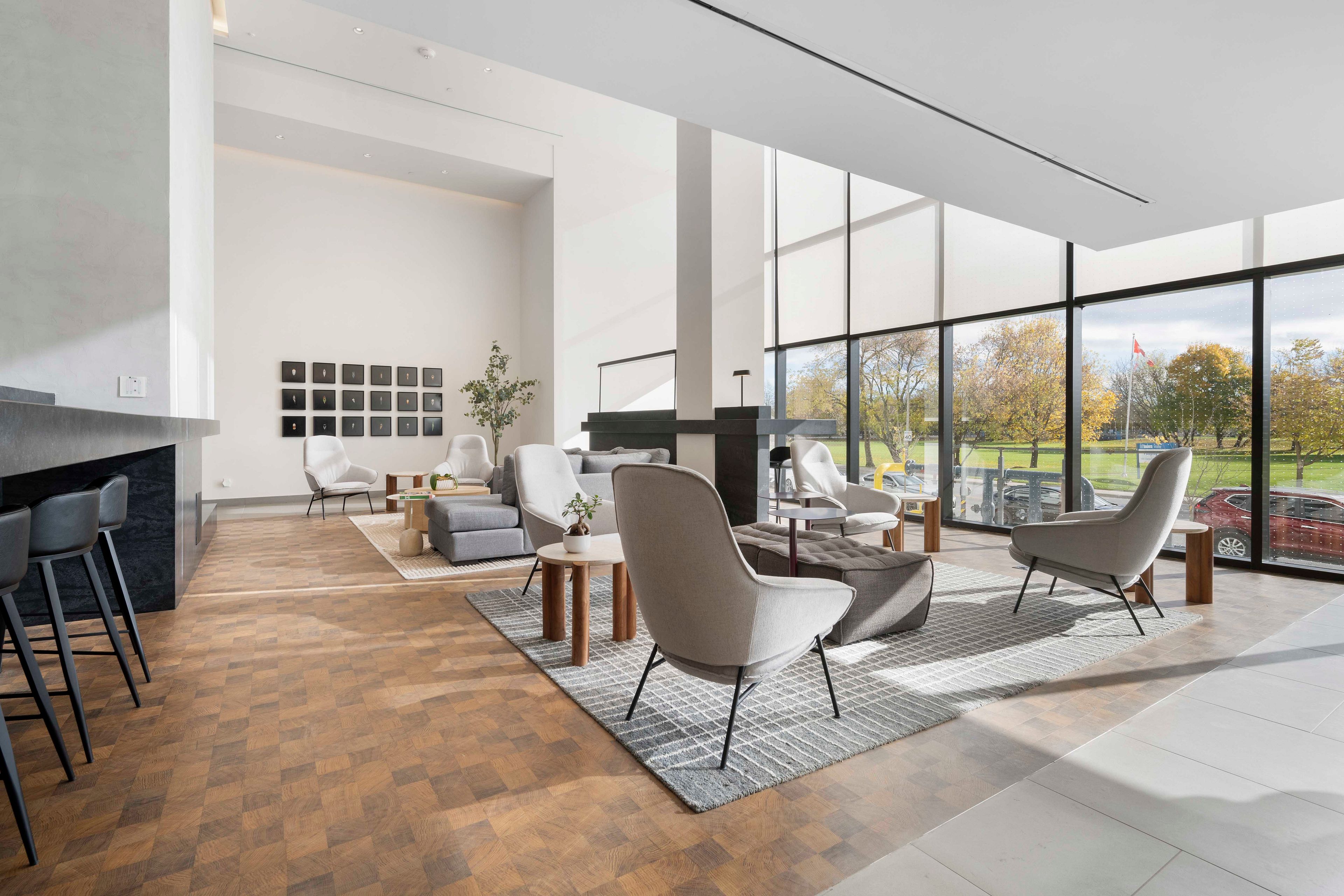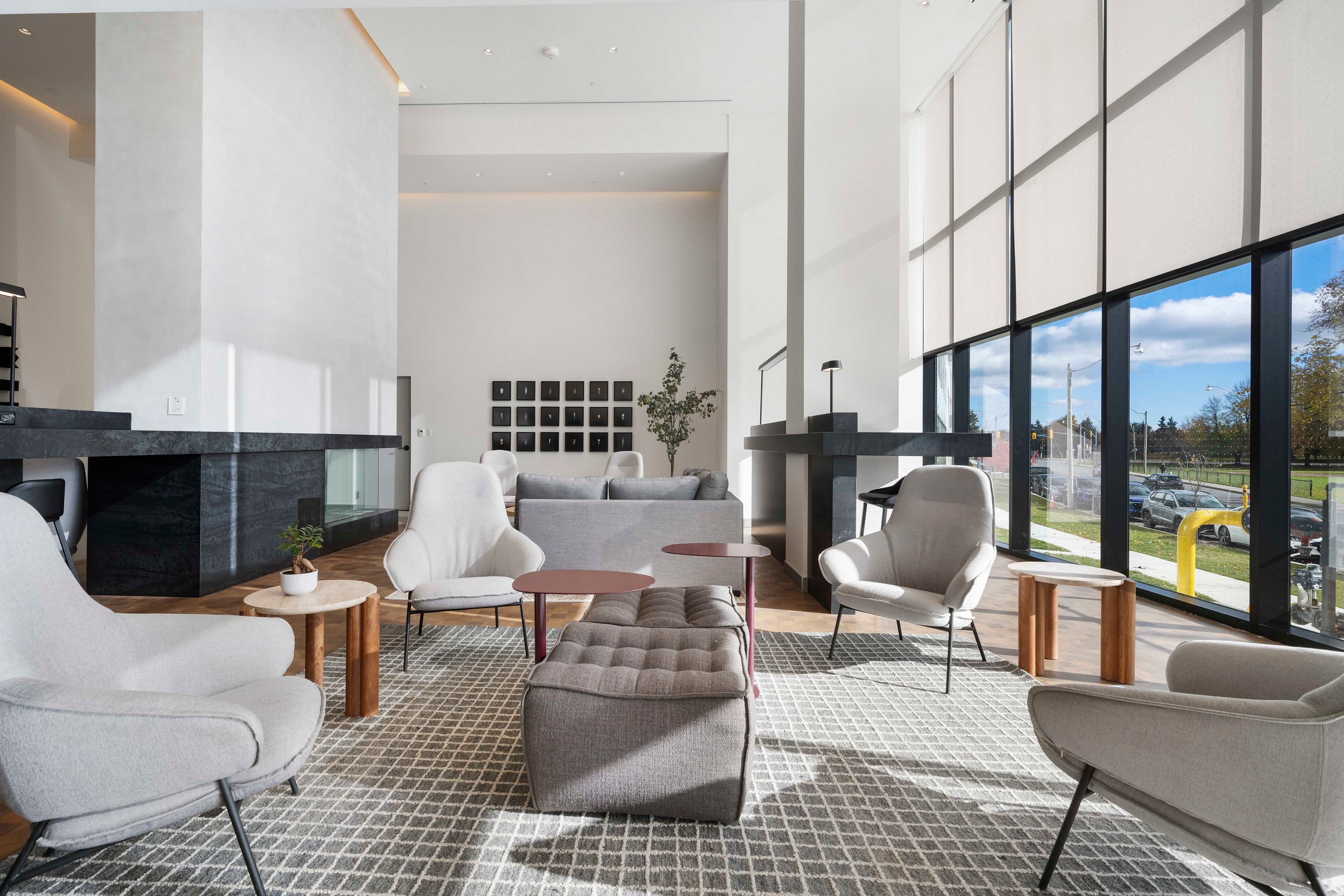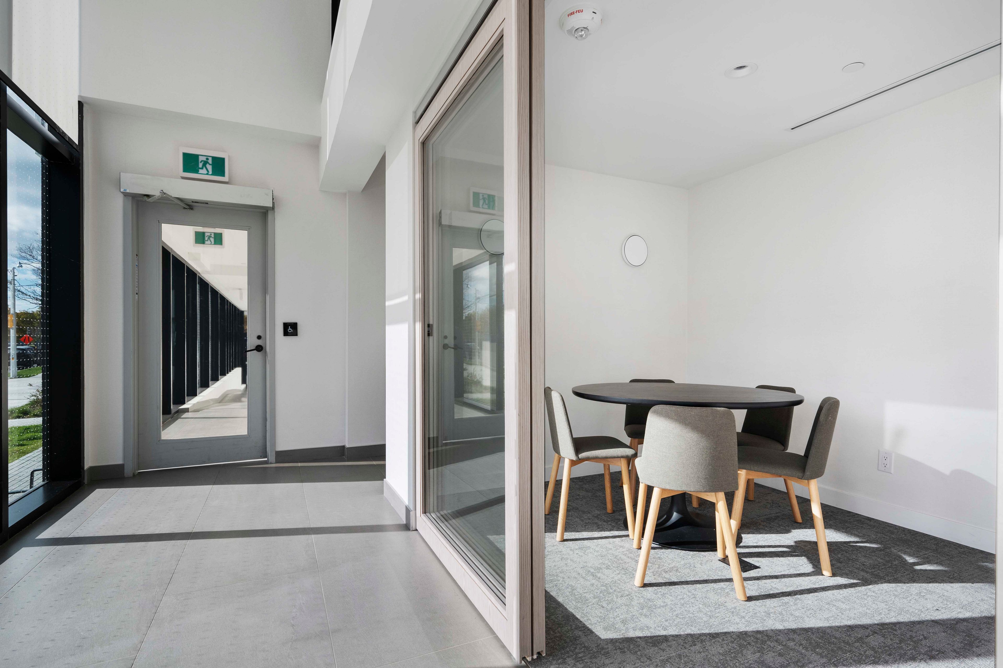 • Bright interior with floor-to-ceiling windows for ample natural light.