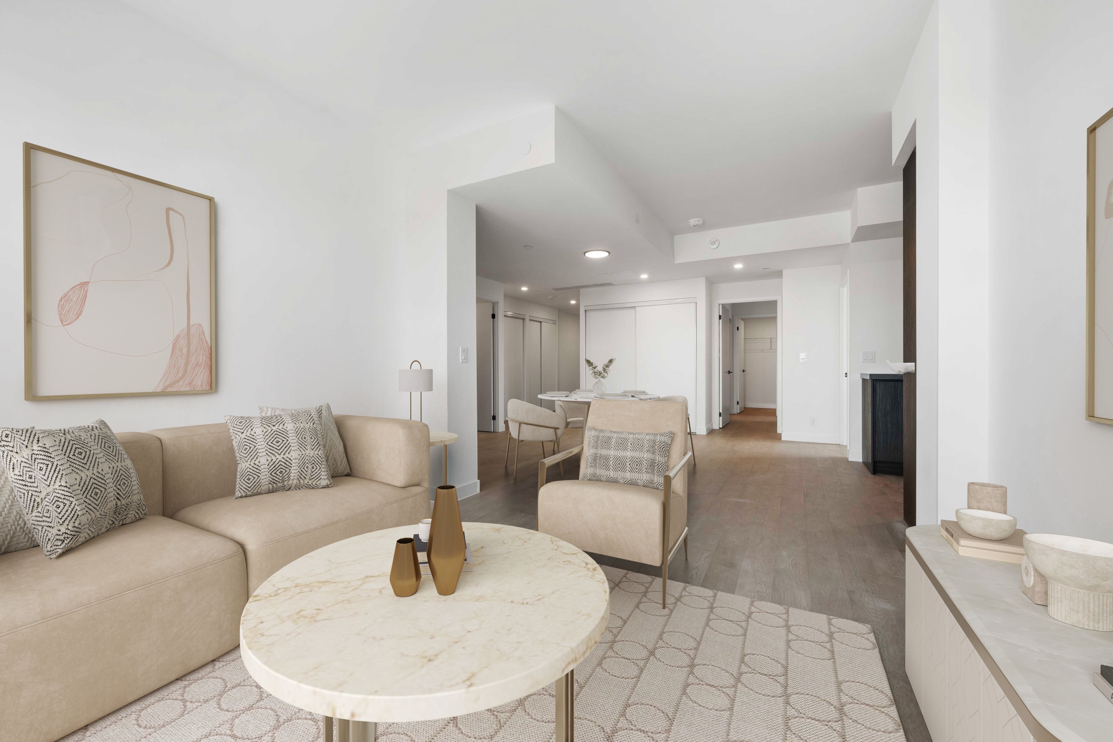This is a premium unit in the state of the art queen & ashbridge condos. It's brand new - a 1244 square foot 3 bedroom, 2 bathroom suite with a 391sf wrap around terrace that has a gas line for a barbecue and hose bib - with absolutely stunning breathtaking panoramic views of lake ontario, the city downtown skyline, and watch the change of seasons with the lush tree canopy to the north and east as far as your eye will take you! Natural light floods into this unit through its floor-to ceiling windows adjacent to the terrace, along with huge windows in each bedroom. Tens of thousands of dollars were spent on upgrades! It has hardwood floors throughout, full-size miele appliances (induction stove top, oven, refrigerator, dishwasher), wine fridge, ensuite laundry, and custom blinds. *the amenities in this building are five star and amongst the best ever seen for a condo building in this city! The 5,000 sq. Ft. Gym is sun drenched as a result of its towering wall of windows! There are also yoga, spin studios, and steam saunas. The building also features social spaces that include a rooftop "sky club" with a party room, lounge, and terrace, and a ground level "bridge lounge", a co-working lounge, study & meeting rooms, secure parcel drop off lockers, extensive bike storage, and 7 guest suites. If that wasn't enough there are also outdoor amenities; a dog run, rooftop terrace with bbqs and dining areas, and the courtyard with garden plots and quiet spots complete with hammocks. Steps to the beach, boardwalk, and ashbridges bay and all that is queen st east! The queen streetcar is just a few short steps away, as well at the bus to coxwell subway station. Leslieville, with its trendy restaurants and specialty shops, farmer's market, and parks is also just a pleasant stroll away. Come make yourself at home. *note: some photos are virtual staging*