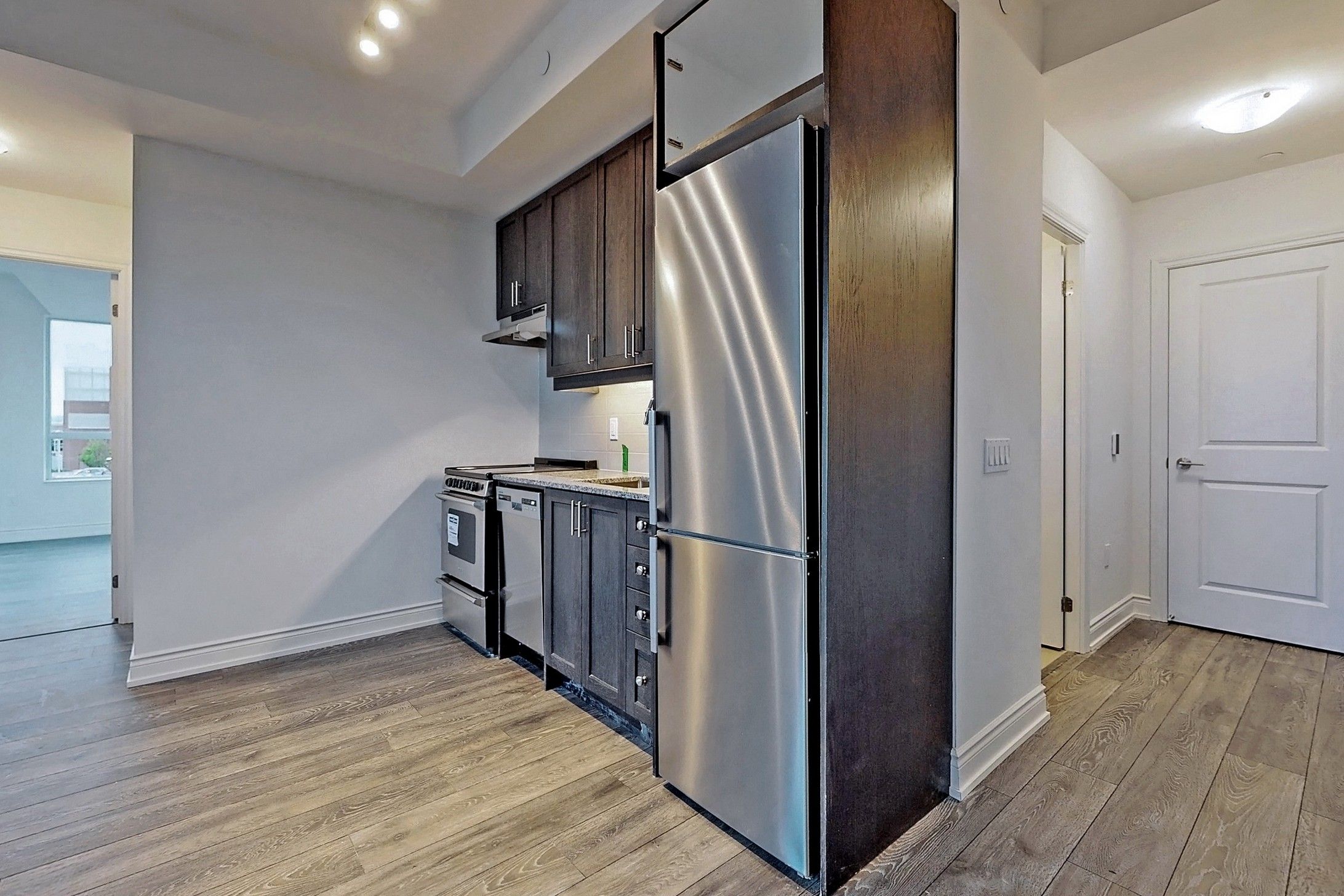 Located at milton's new iconic address of fernbrook's art on main, this luxurious 1 bed corner suite w/9' ceilings offers open concept living/dining room combo w/walk out to large balcony, family sized kitchen w/modern cabinetry, granite countertops, bf bar, backsplash & stainless steel appliances, large master bedroom, 4 pc full bathroom, upscale laminate floorings, underground parking