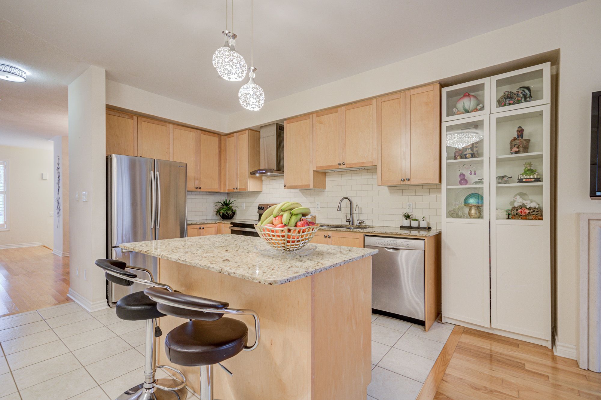 A premium townhome offering 1,870 sq. Ft. Of spacious living in the victoria manor-jennings gate community. Well maintained. 9' ceiling & hardwood flooring on main flr, open concept, spacious & sun filled. Generously sized kitchen with center island, granite countertops; upgrade backsplash & tiles thru-out; fireplace; cac; huge master br 4-pc ensuite w/ separate shower; single car garage w/ driveway & side pad can park 3 cars. Dir access to garage. New roof(2023) air conditional & heater(2023). Minutes from hwy 404, shopping mall, supermarket, banks and all convenient stores. High rated school. Move in condition! Don't miss it!