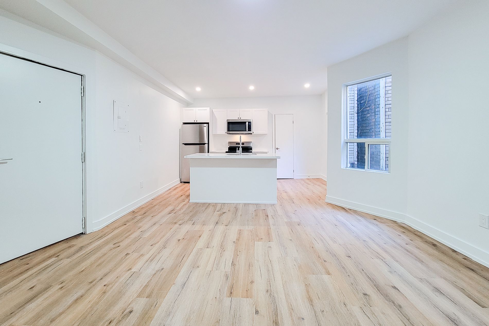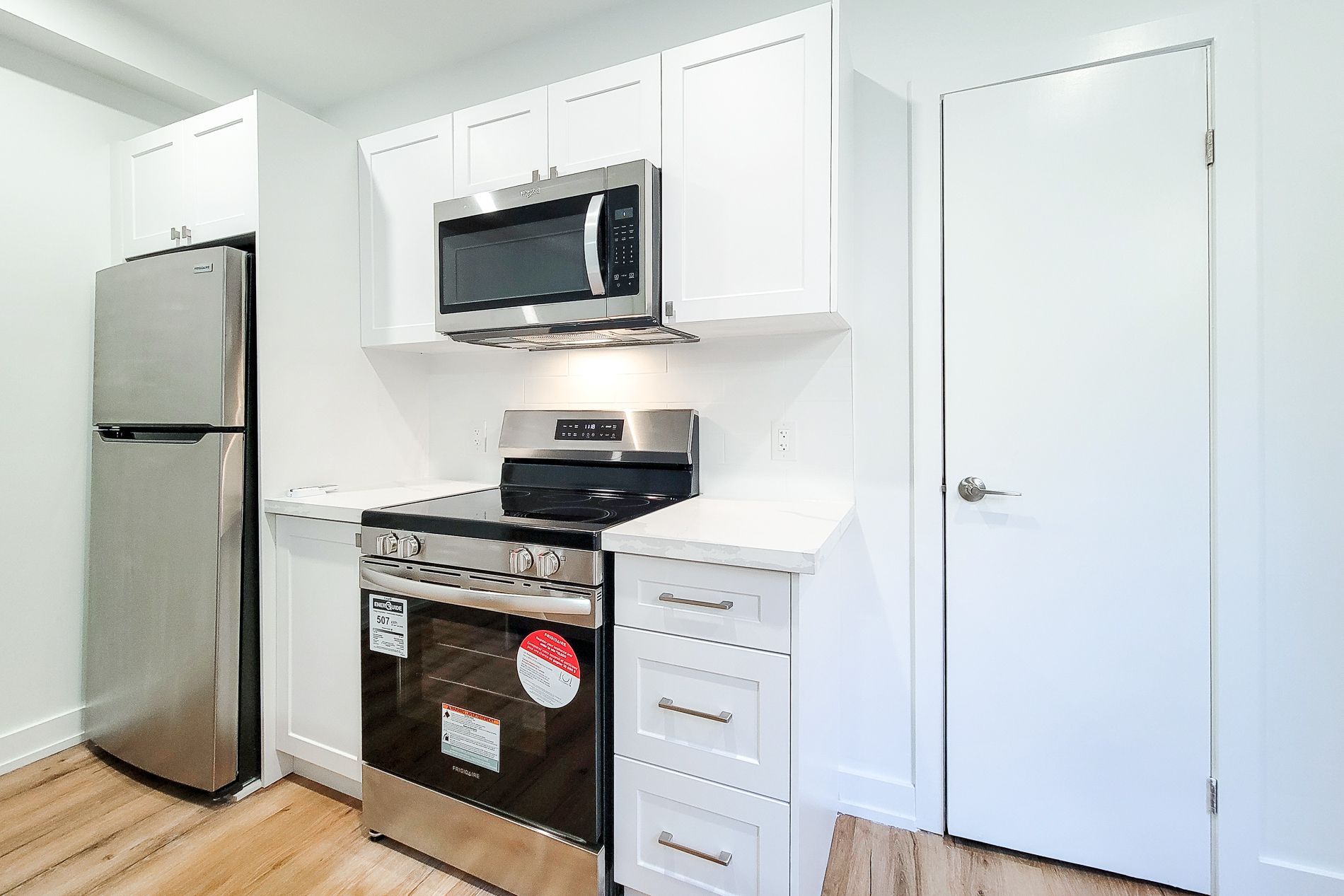 • Bright open-concept kitchens with quartz counters and stainless steel appliances.