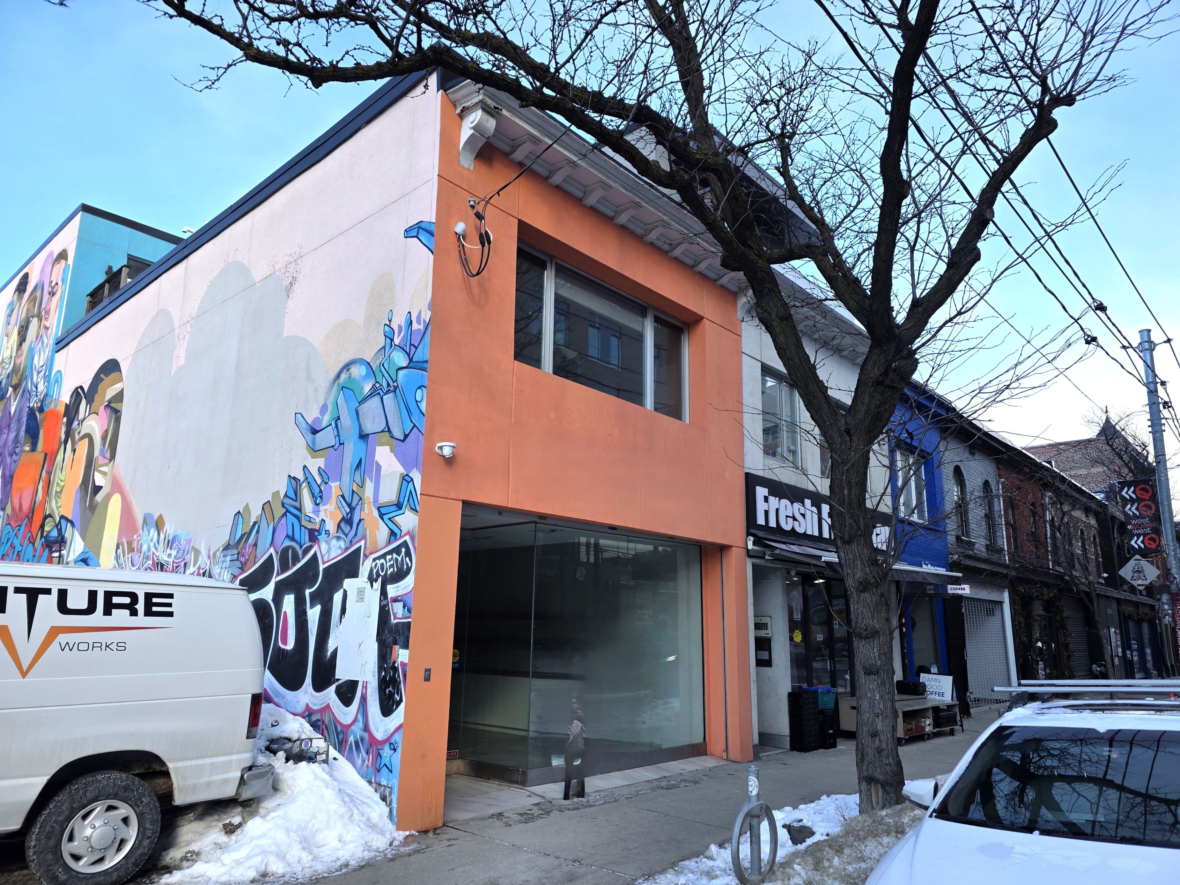 Prime queen w. Just west of ossington. Recently renovated main-floor retail space offering 1,245 sq ft with impressive 10' ceilings, complemented by a finished 1,170 sq ft basement with 9' ceilings, two washrooms and a built-in conveyor belt-ideal for storage, light processing or expanded back-of-house operations; one dedicated parking stall at the rear lane is available at an extra cost. The building underwent a complete renovation in 2013 and has seen recent high-quality upgrades such as a tempered glass storefront with remote drop-down security door, premium commercial flooring, an upgraded hvac system with hepa filtration for improved air quality, flexible pot and track lighting, existing built-in fixturing to reduce fit-out time, and a fully integrated fire and alarm system (monitoring available).