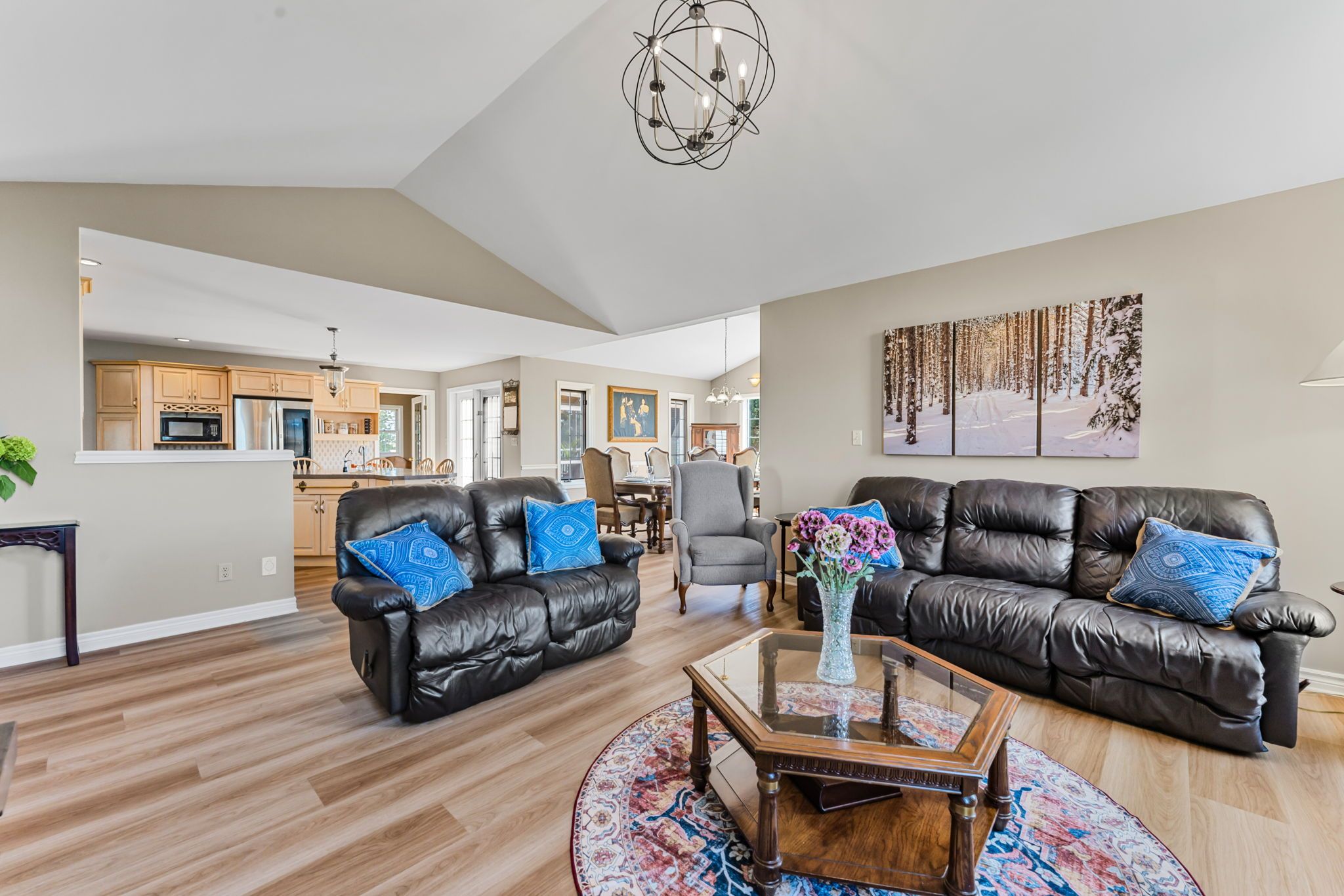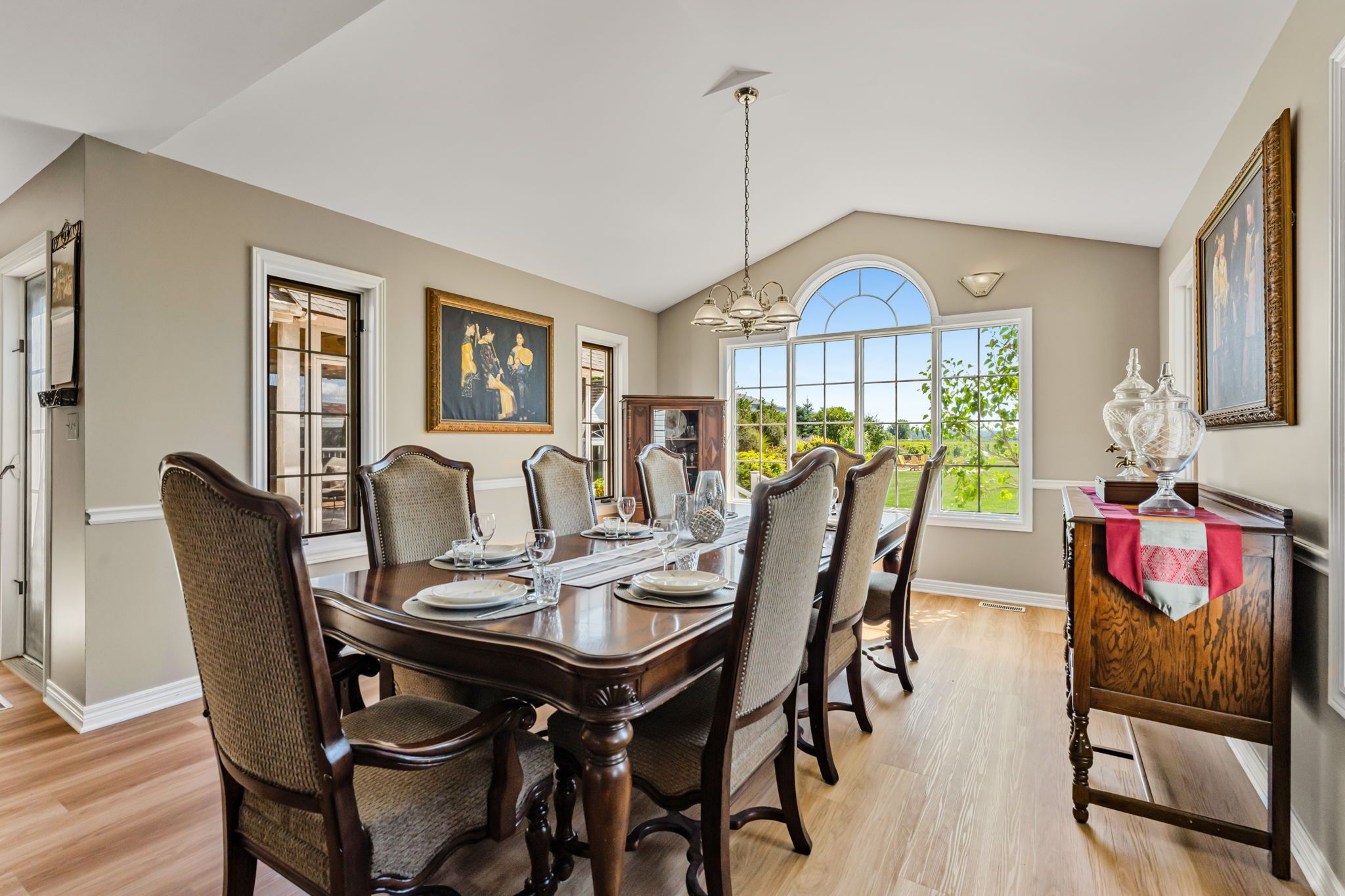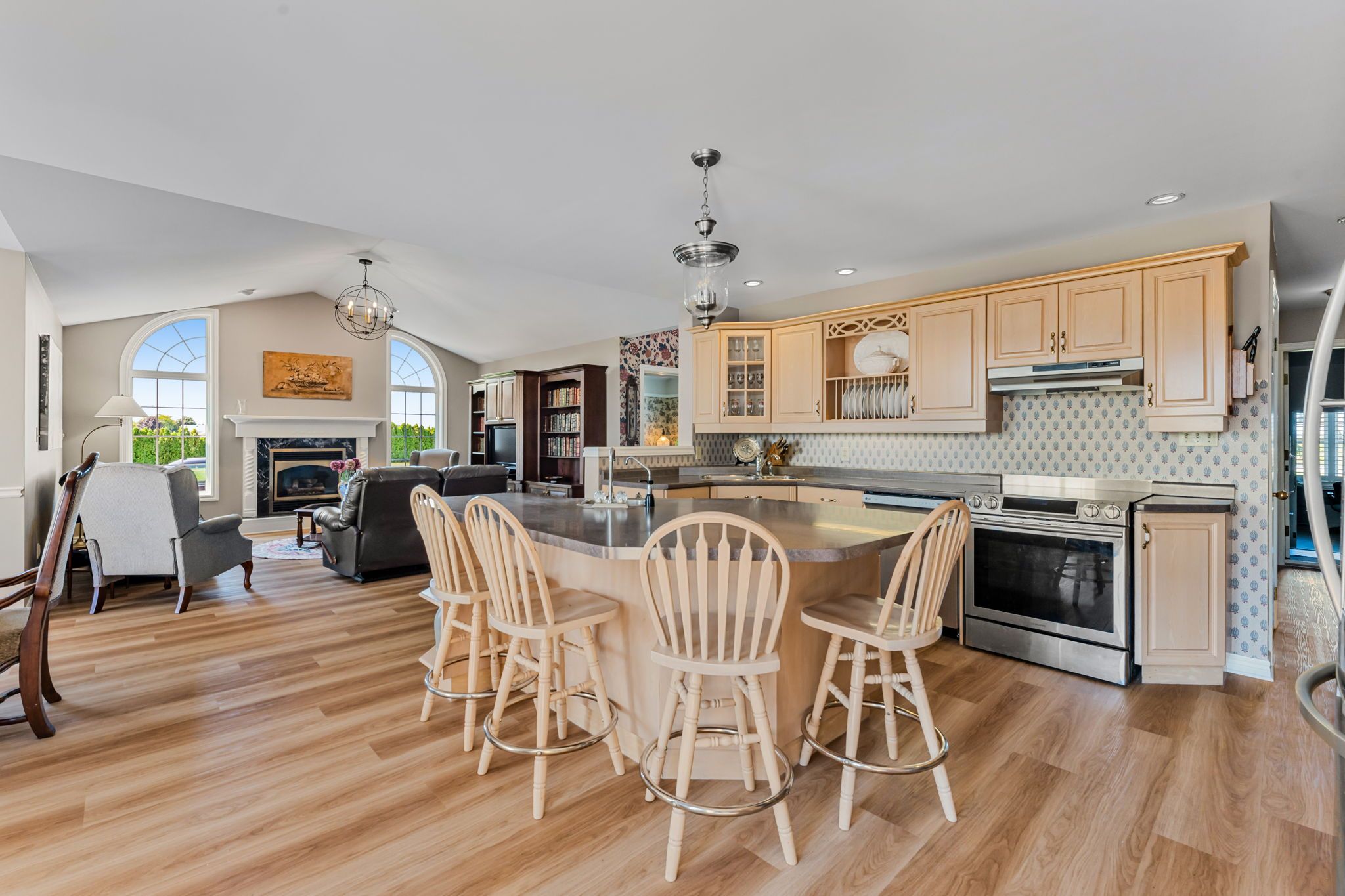 Beautifully maintained custom 2-storey home situated on 2 picturesque acres, surrounded by vineyards! This 3368sqft home showcases several living spaces, ideal for multi-generational & growing families. Welcoming front porch leads into a spacious foyer. French doors open into a lovely den/music room with a cathedral ceiling and a large window overlooking the landscaped front yard. The living room has a focal fireplace, flanked by beautiful windows. This house is designed for entertaining. The kitchen is the centre of the home. Sit down and sample a glass of local wine at the oversized centre island and enjoy an amazing meal with family and friends in the formal dining room. Generous main floor laundry room opens opens to screened-in15x14 porch and to a separate covered deck, ideal for barbecuing in any weather. The main floor also includes a two piece guest bathroom, and the primary bedroom suite with double entry doors, walk-in closet and updated 3-piece ensuite bath. Stand-alone glass shower with rain shower head for the perfect spa experience. Spacious mud room off of the 2 car garage has large double closets and leads into a very spacious office with separate entry. Primary bedroom/ensuite/office have california shutters. On the second floor, two bedrooms share a generous jack and jill bath, each with their own vanity. The second bedroom has a gorgeous window seat overlooking the backyard and the lush surrounding vineyards. The third bedroom, upper hall and stairs showcase brand new carpeting. The second floor also includes a huge bonus room, as well as a large dressing room custom furnished by closets by design. The basement is the perfect in-law suite with over 1300 sqft of living space, private entrance, and brand new flooring, gas fireplace and all new kitchen appliances! New furnace and hot water heater as well. 40x60 machine shed has 2 large bays perfect for large vehicles and equipment. One side also serves as a workshop with heated floors!