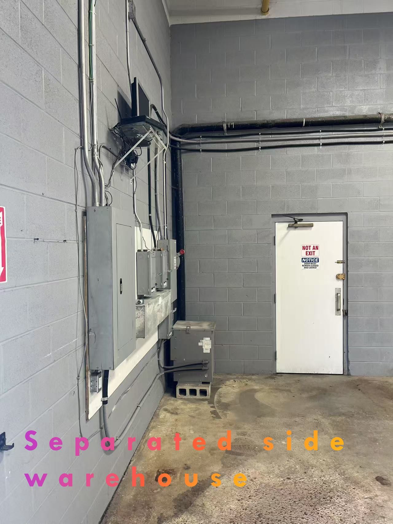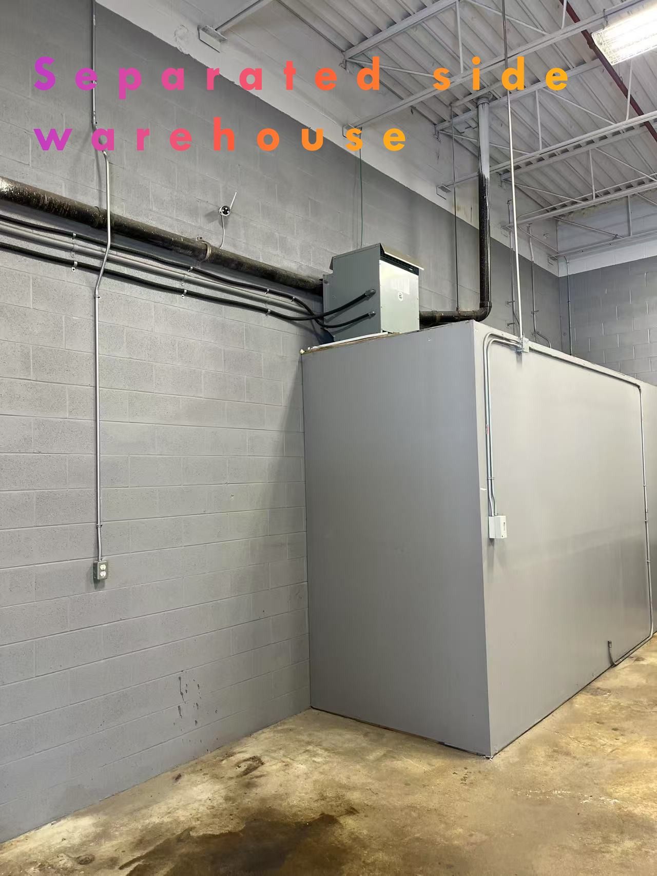 • Large industrial warehouse with significant space, only partially occupied.