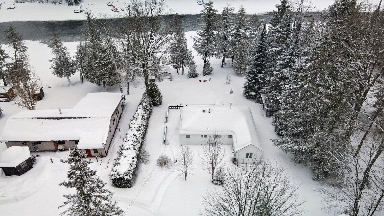 Waterfront on the grace river with access to grace & dark lake. Turnkey 3-bedroom retreat with boathouse, newer dock & proven income. Welcome to your private waterfront retreat on the sought-after grace river, offering access to both grace lake and dark lake-a desirable two-lake chain ideal for boating, swimming, and exploring. This beautifully updated, year-round 3-bedroom cottage or home features a bright open-concept layout with modern finishes and expansive windows capturing peaceful water views. Designed for both comfort and functionality, it's perfectly suited as a personal getaway or full-time residence. Enjoy an expansive wrap around waterfront deck overlooking the shore complemented by a newer dock and a spectacular boathouse at the water's edge-ideal for maximizing your waterfront lifestyle. The property also includes a detached garage, providing excellent storage for vehicles and recreational equipment. Move-in ready and being offered with most furnishings included (some exclusions apply), this turnkey property also boasts a strong, established rental income history-making it an exceptional investment opportunity. A rare offering combining updated living, sandy waterfront, and access to a two-lake chain in a highly desirable location.
