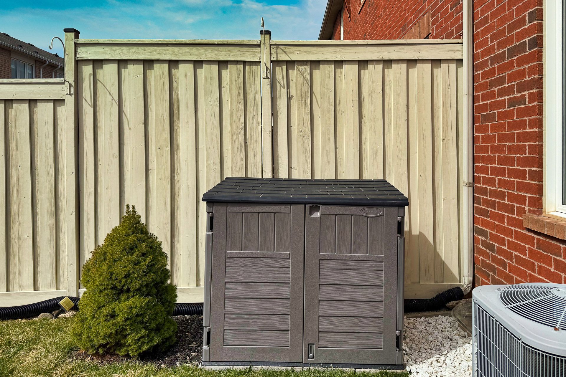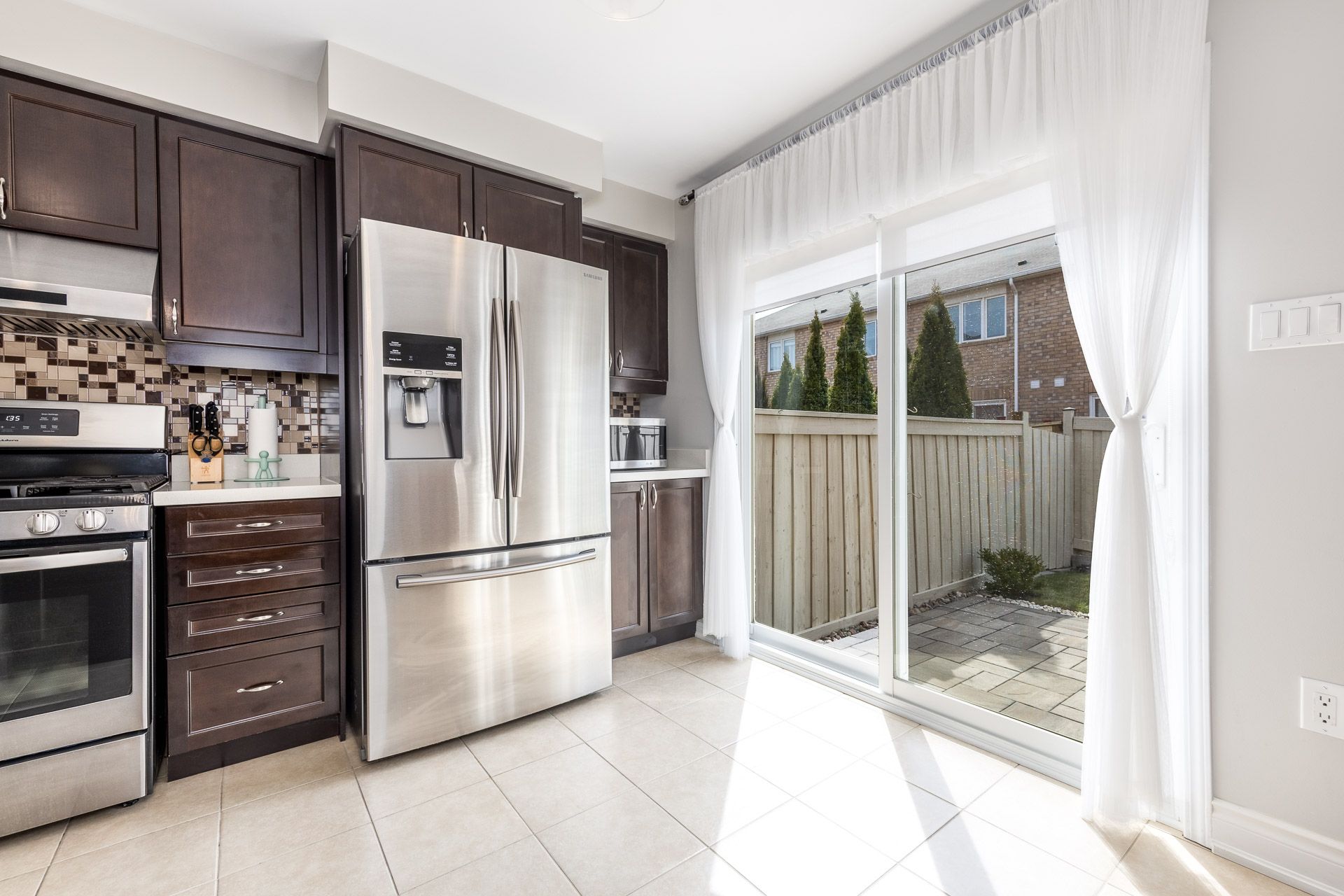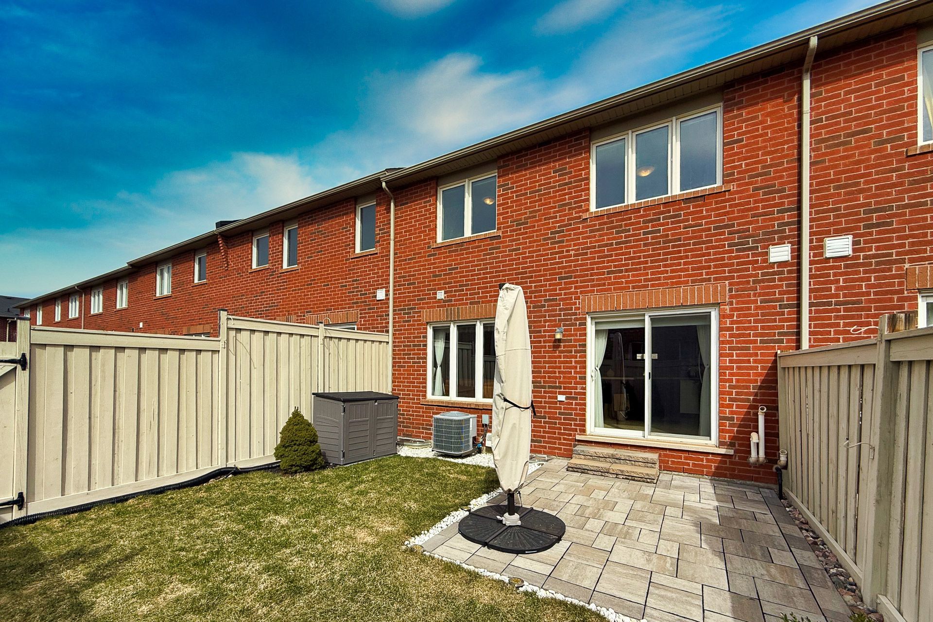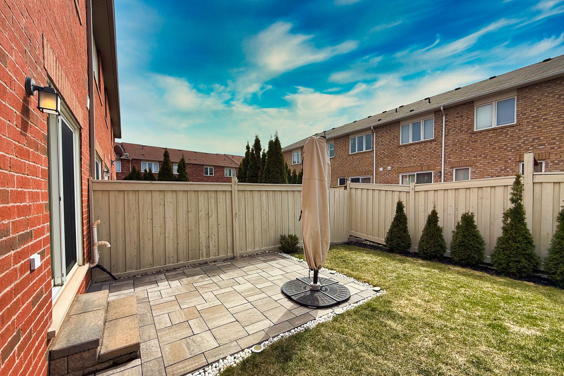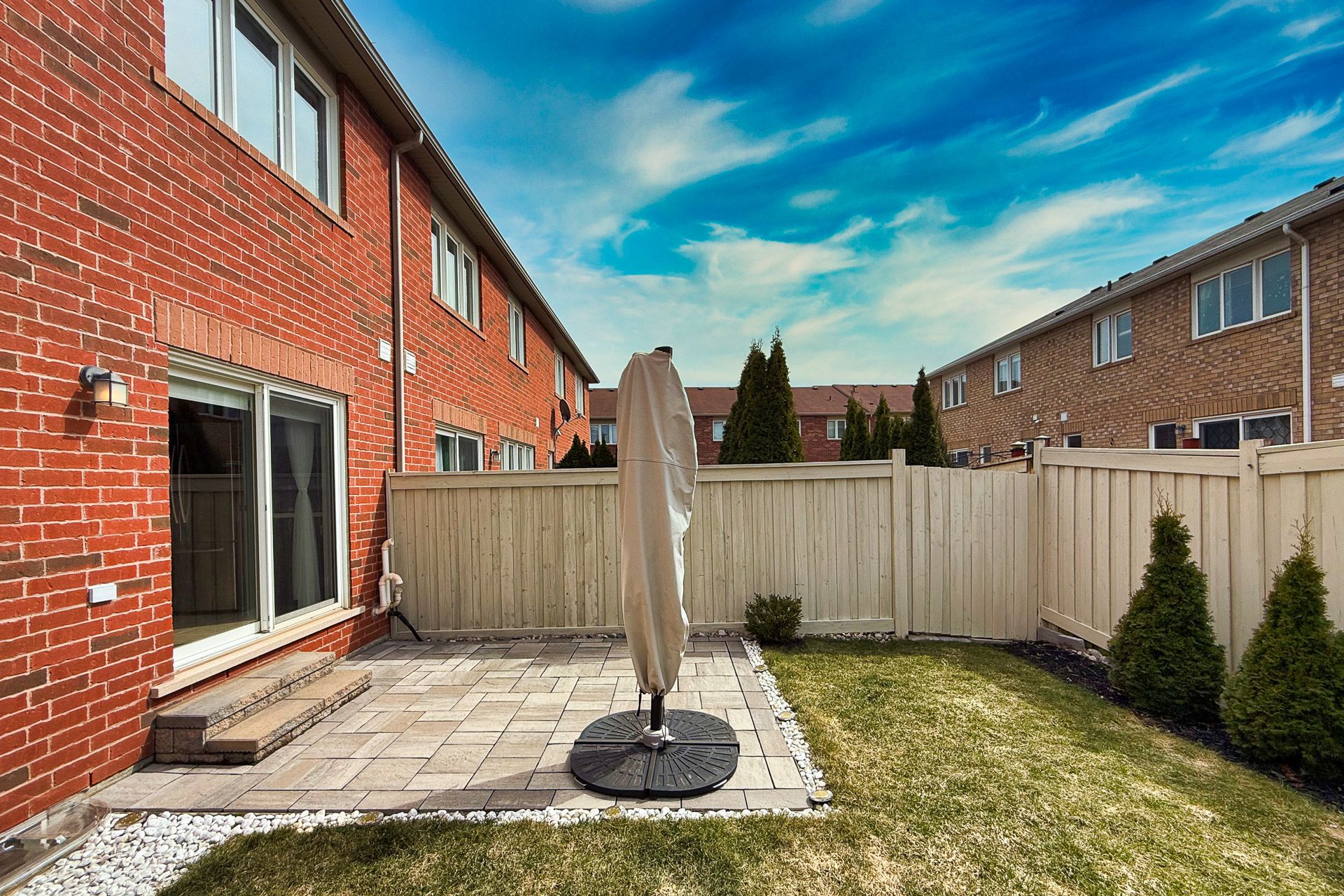• Private fenced backyard with a stone patio for relaxation.