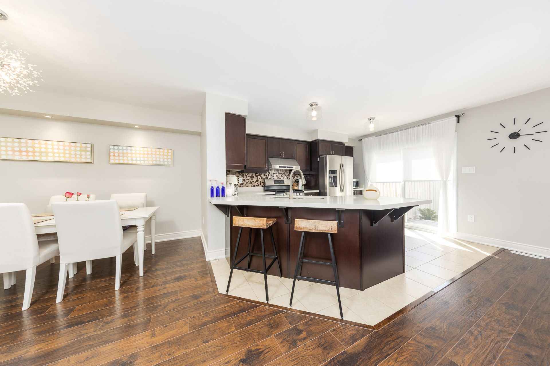 Stunning freehold, no potl fee, family style very well kept home perfect for any families located in a sought-after milton neighborhood. High quality laminate floors throughout and laundry room in second floor. Open concept kitchen with stainless steel appliances, stone countertop, beautiful backsplash and lots of cupboards. Walk-out from breakfast area to a private fenced backyard with stone patio. Bright and spacious living and bedrooms. Master bedroom with walk-in closet and 4 pc ensuite. Parking for 3 cars. Walk to st. Francis xavier catholic secondary school, boyne public school and anne j. Macarthur public school. Excellent location; walk to sobeys plaza, banks, medical clinics, parks, hospital, schools and other amenities.