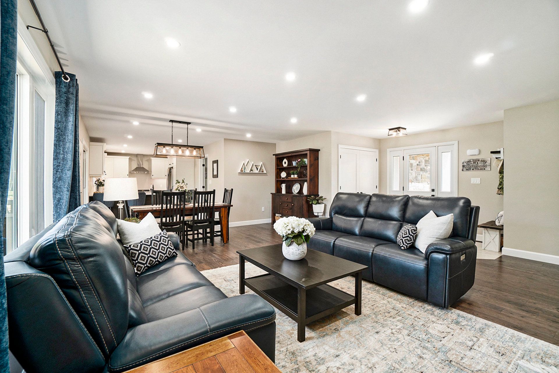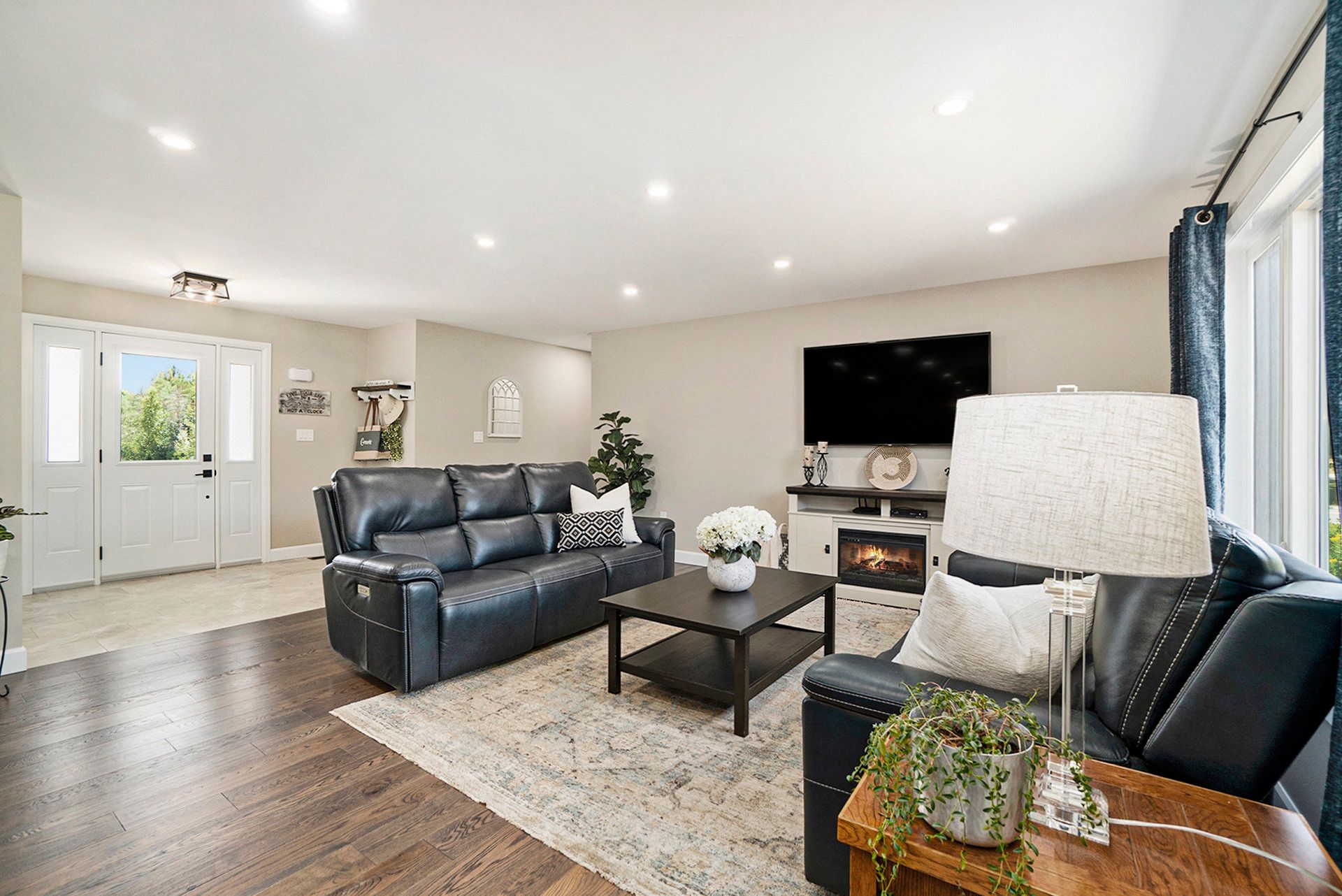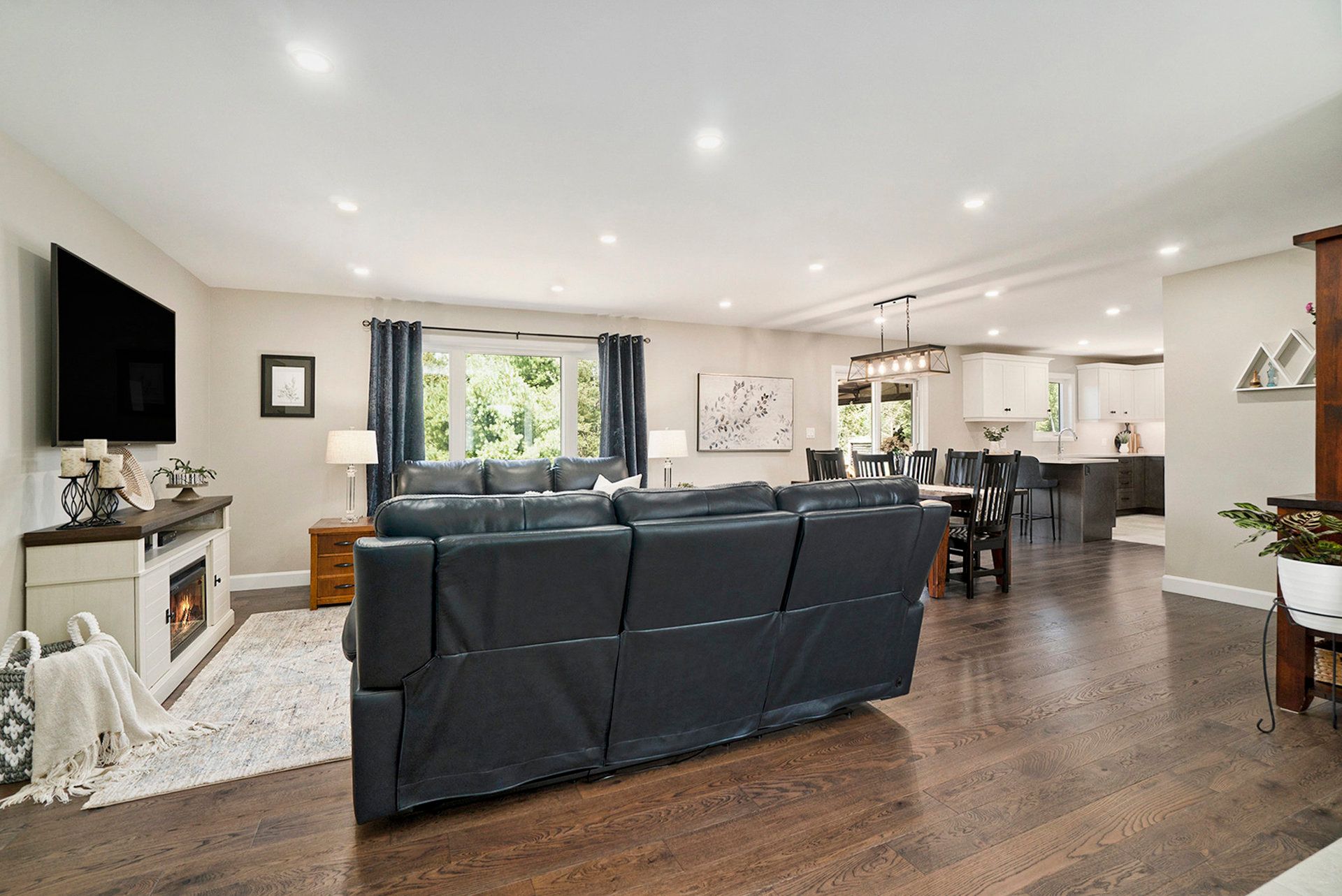 • Open concept living areas with hardwood flooring and bright windows.