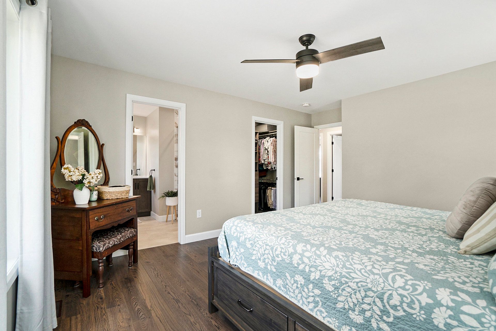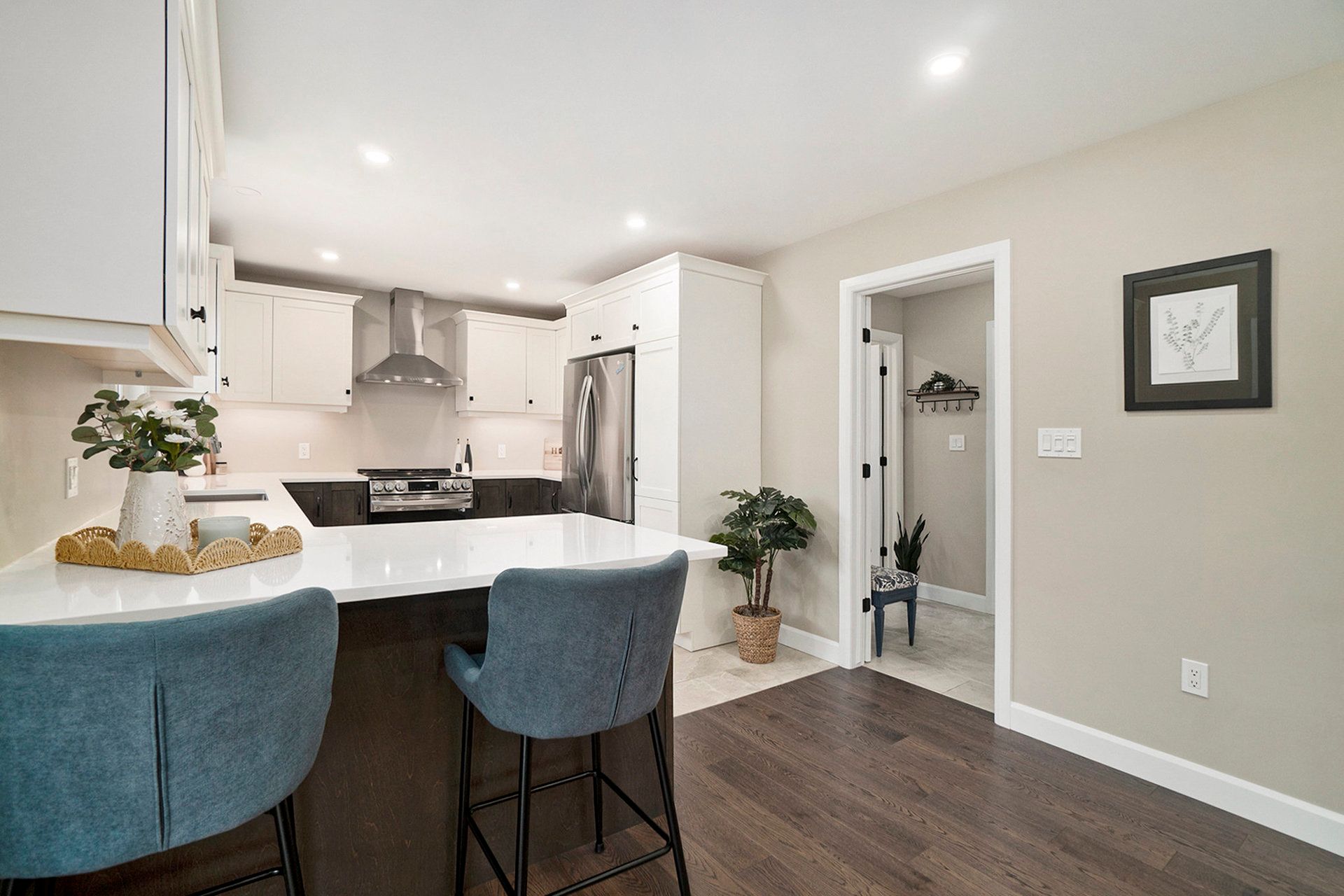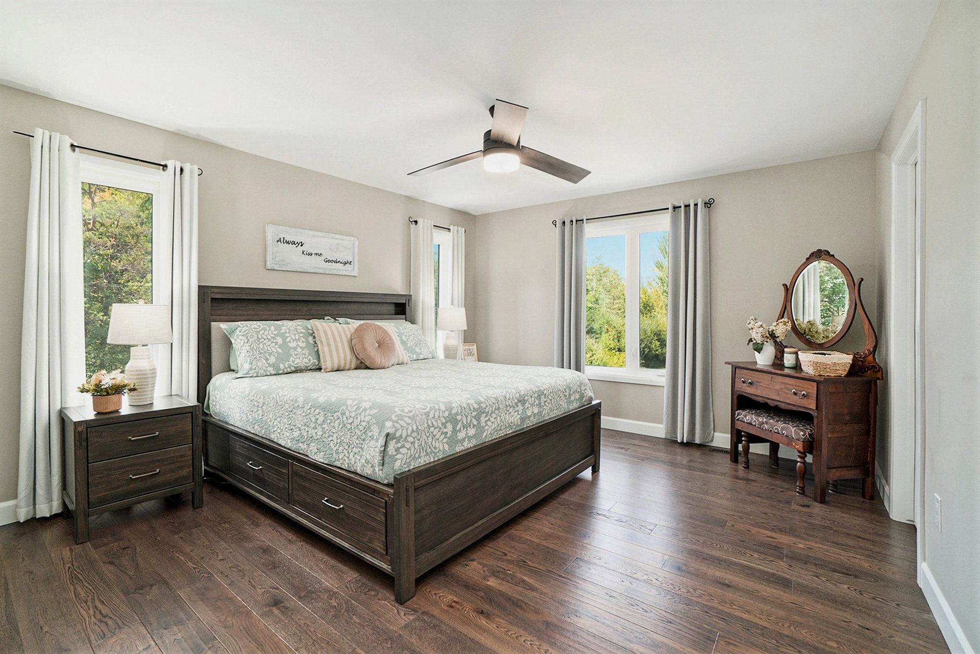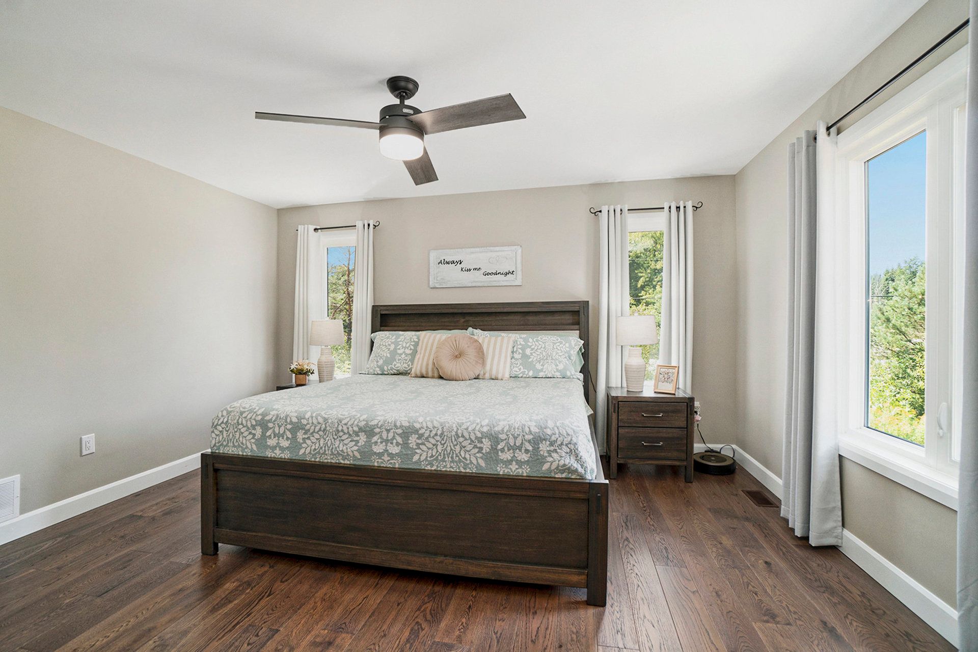 • Open concept living areas with hardwood flooring and bright windows.